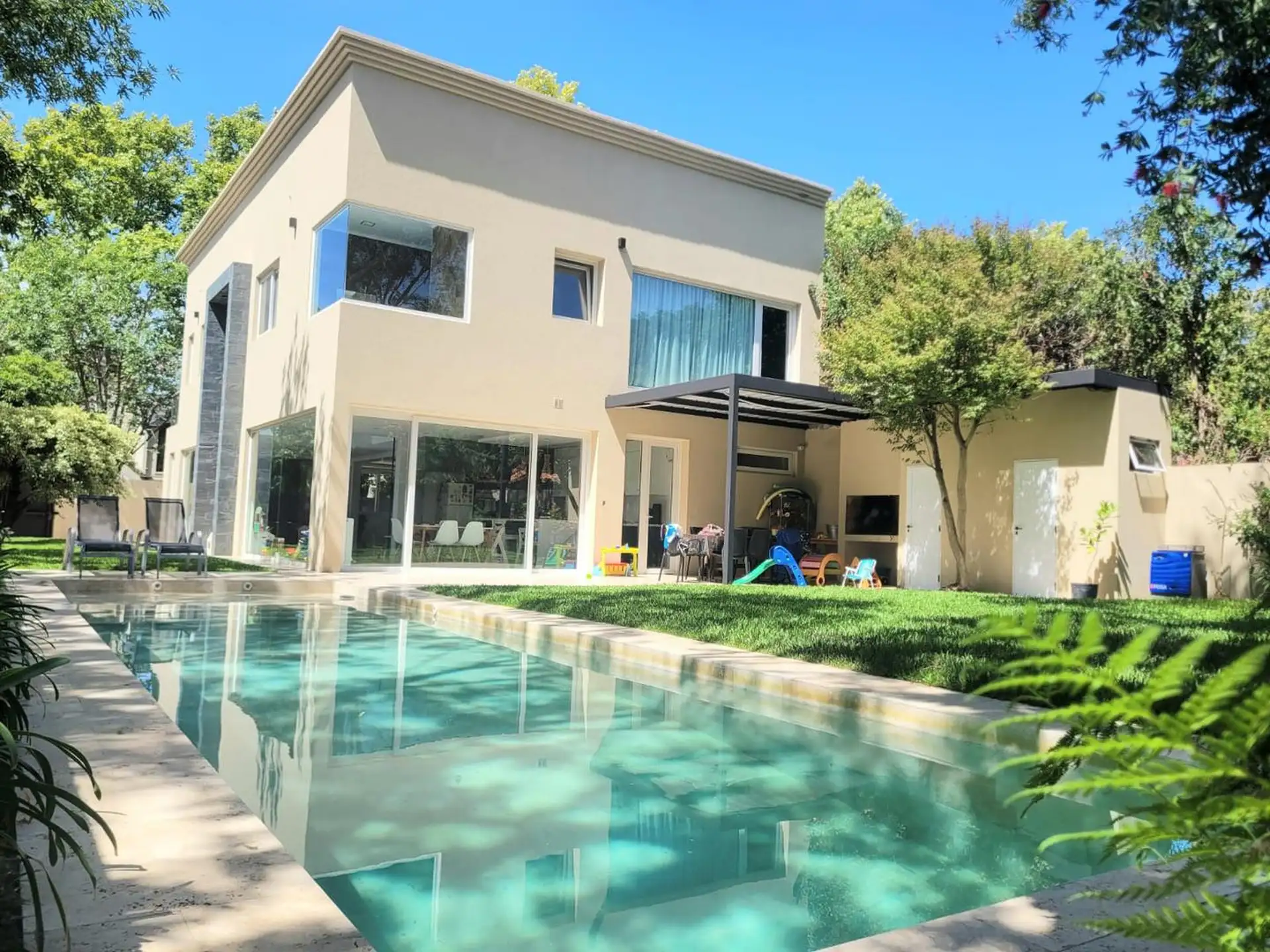 Дом на 2 этажах в Acassuso, вблизи реки и станции. Планировка включает просторную гостиную-столовую с камином на дровах, гостевой туалет и кладовую для визитов. Кухня-столовая с встраиваемой духовкой, варочной поверхностью и центральным островом; предусмотрено подключение для посудомоечной машины. На верхнем уровне 2 спальни в suite с гардеробными, одна из них имеет выход на частный балкон; также есть третья master suite с двойной раковиной, гидромассажем и видом на сад. Меблировка или отсутстви