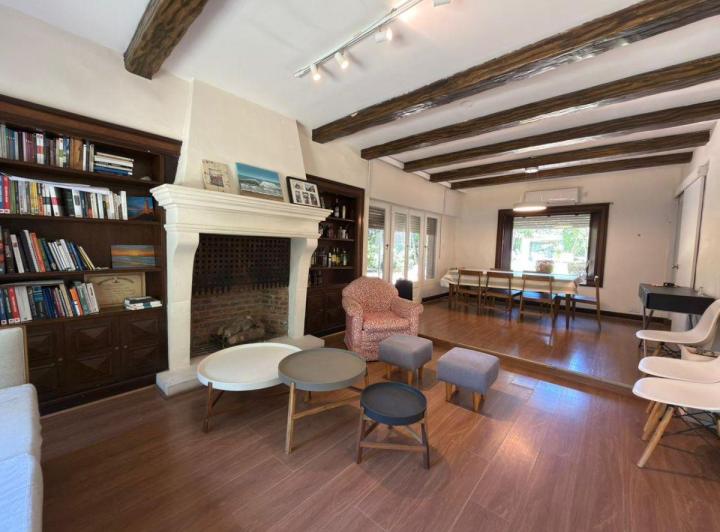 Дом в Acassuso с 3 спальнями на участке с внутренним двором квартала. На первом этаже: приёмный холл, гостиная-столовая с газовым камином, окна на переднюю и тыльную стороны, гостевой туалет, кухня с обеденной зоной, душевой санузел, предусмотрены два пути сообщения. На втором этаже: холл, 3 спальни с встроенными шкафами, кабинет/рабочая зона, полный санузел, выход с доступом из сада. На территории: терраса, сад с системой дождевания, бассейн и солярий, гардеробная, отдельная прачечная, кладовая