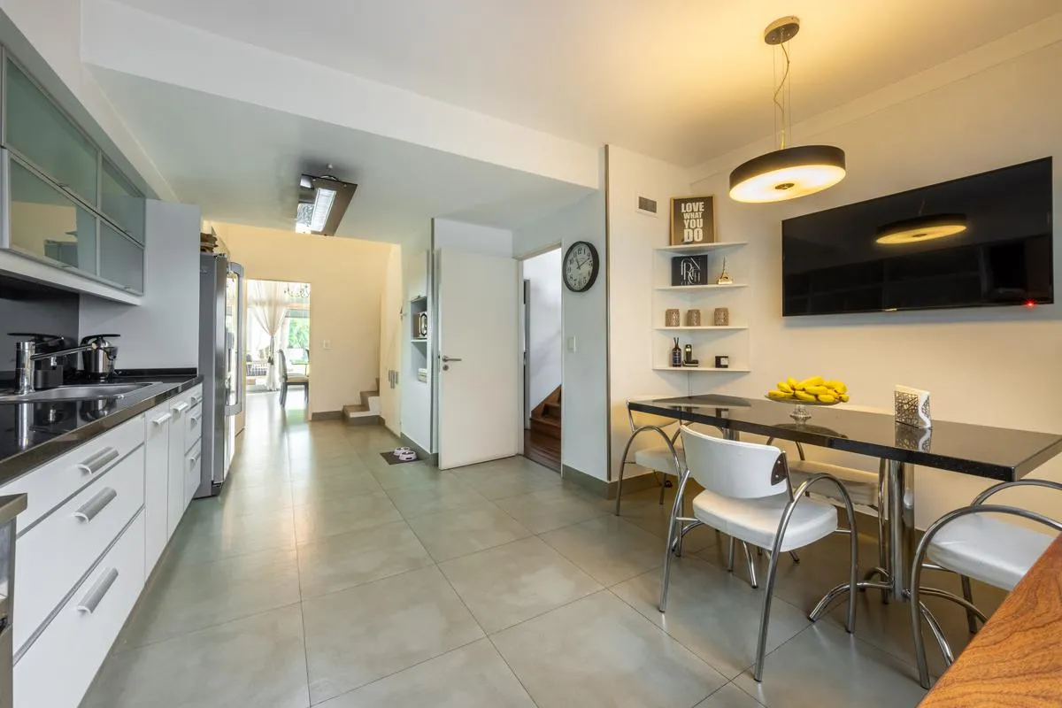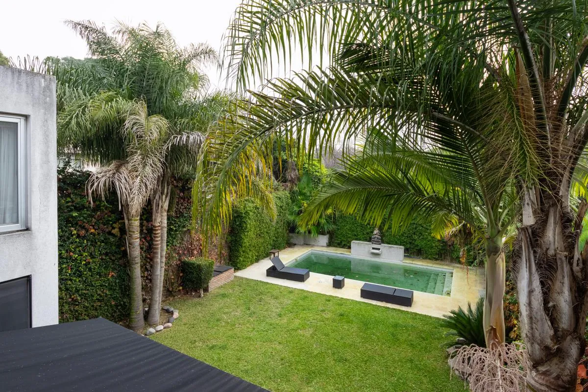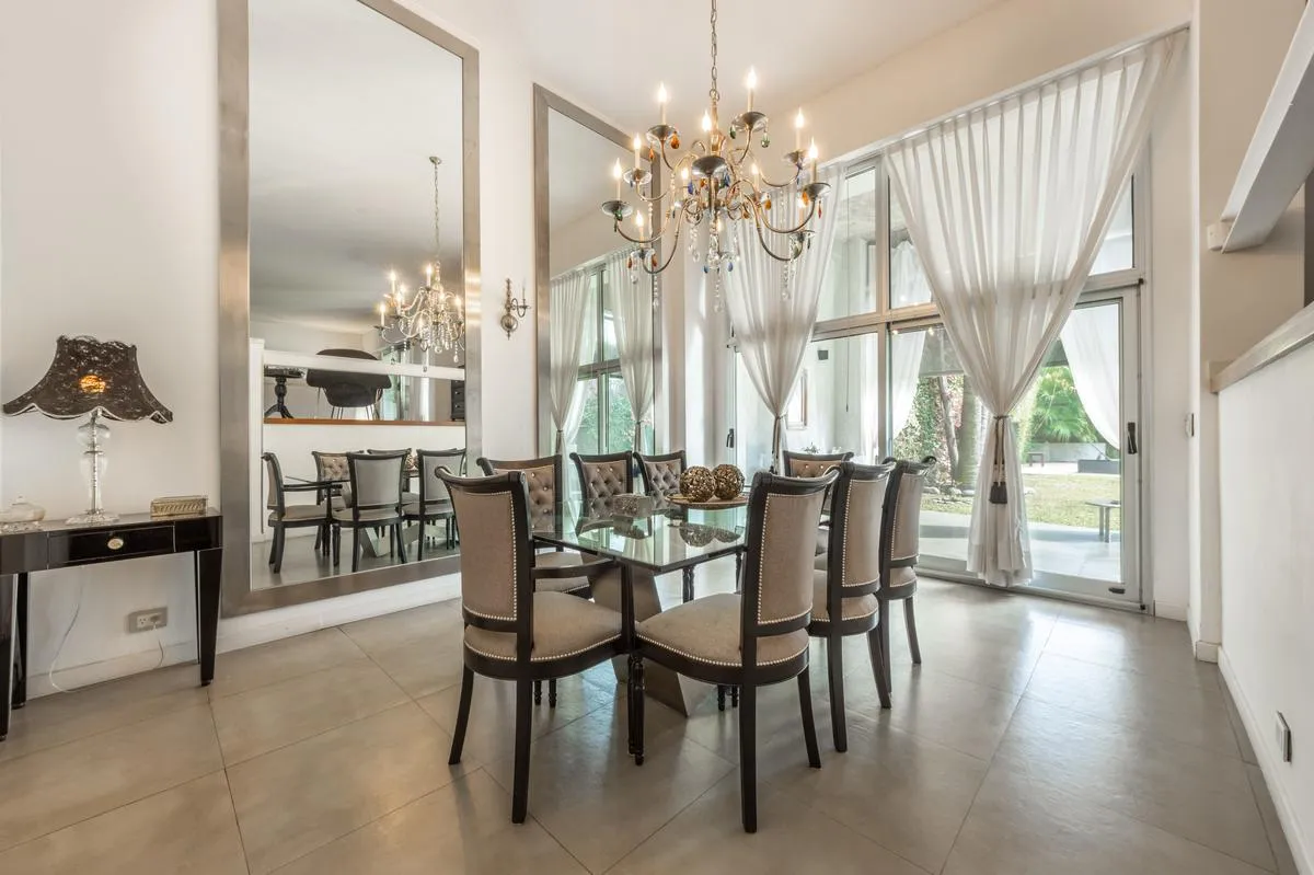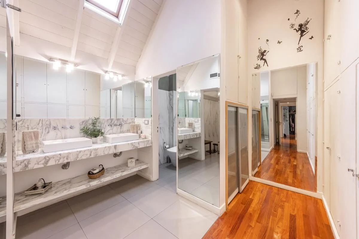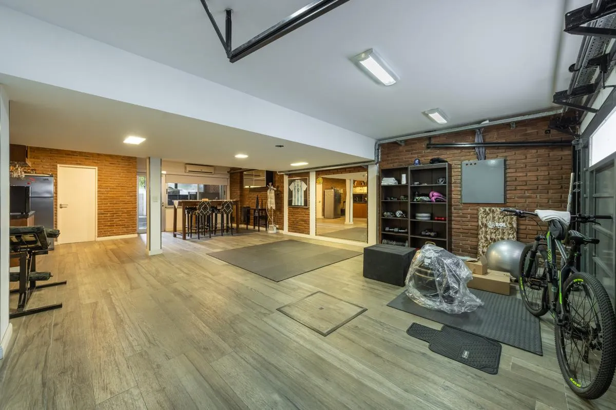 Дом в Acassuso, размещён на нескольких уровнях. На первом этаже: кухня-столовая, обеденная зона, зона для обслуживающего персонала, гостиная, кабинет с камином, гостевой туалет, кладовая с отдельной комнатой и ванной для службы. Также есть крытый гараж на 3 автомобиля, который переоборудован в зону гриля с кухней, ванной и гимнастическим залом, а также отдельный въезд для 2 автомобилей с крытой парковкой. На втором этаже: распределительный холл, 3 спальни (одна выходит на улицу, одна — с собстве
