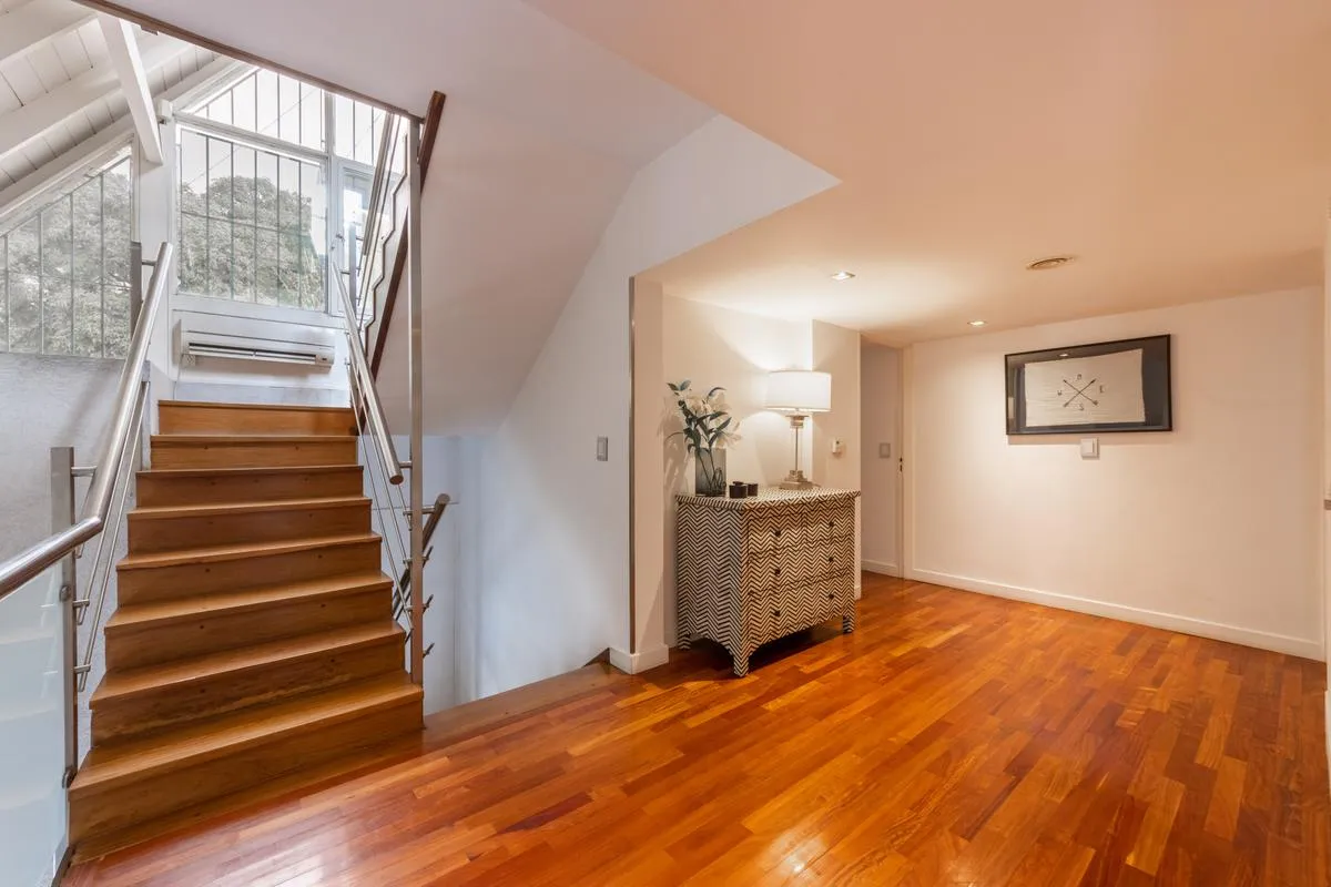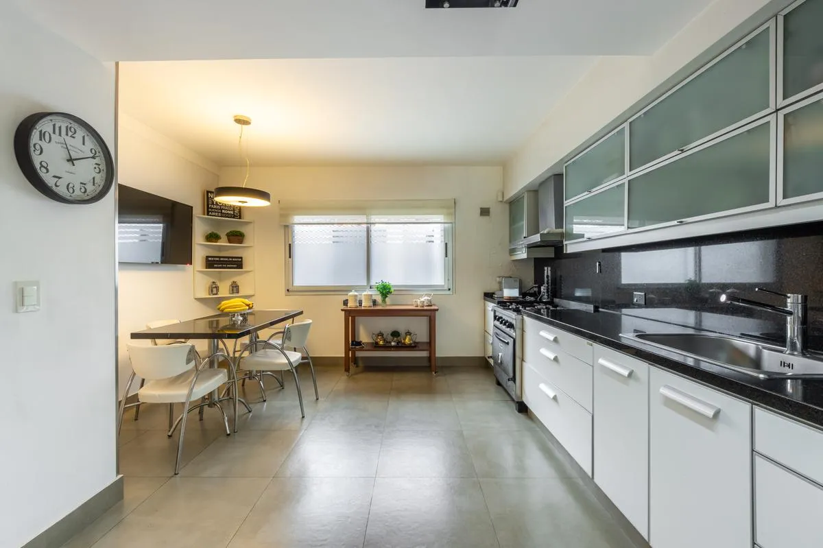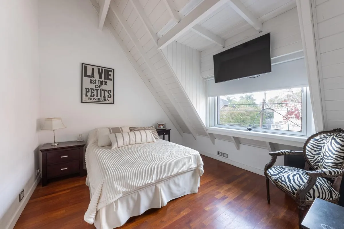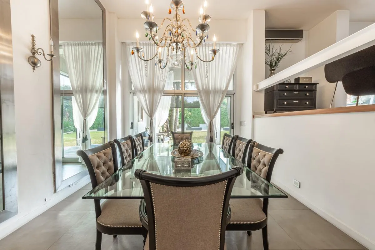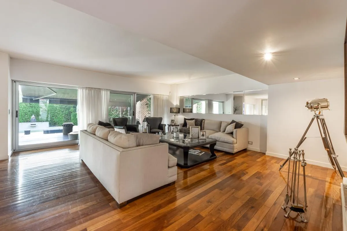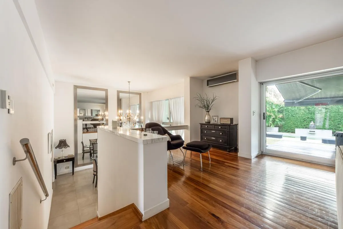 Дом в Acassuso, размещён на нескольких уровнях. На первом этаже: кухня-столовая, обеденная зона, зона для обслуживающего персонала, гостиная, кабинет с камином, гостевой туалет, кладовая с отдельной комнатой и ванной для службы. Также есть крытый гараж на 3 автомобиля, который переоборудован в зону гриля с кухней, ванной и гимнастическим залом, а также отдельный въезд для 2 автомобилей с крытой парковкой. На втором этаже: распределительный холл, 3 спальни (одна выходит на улицу, одна — с собстве