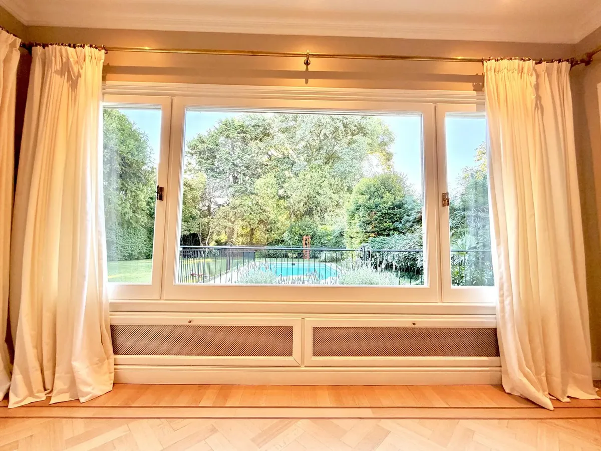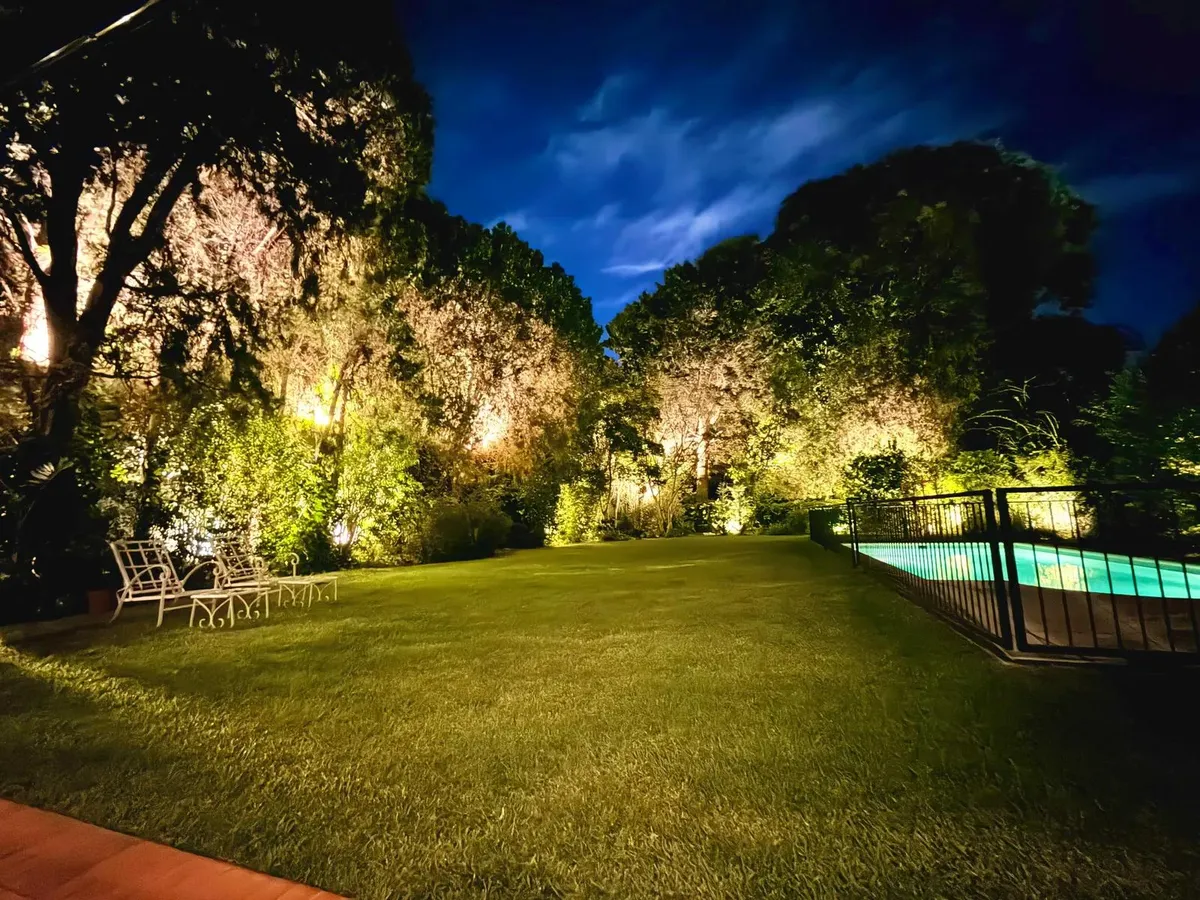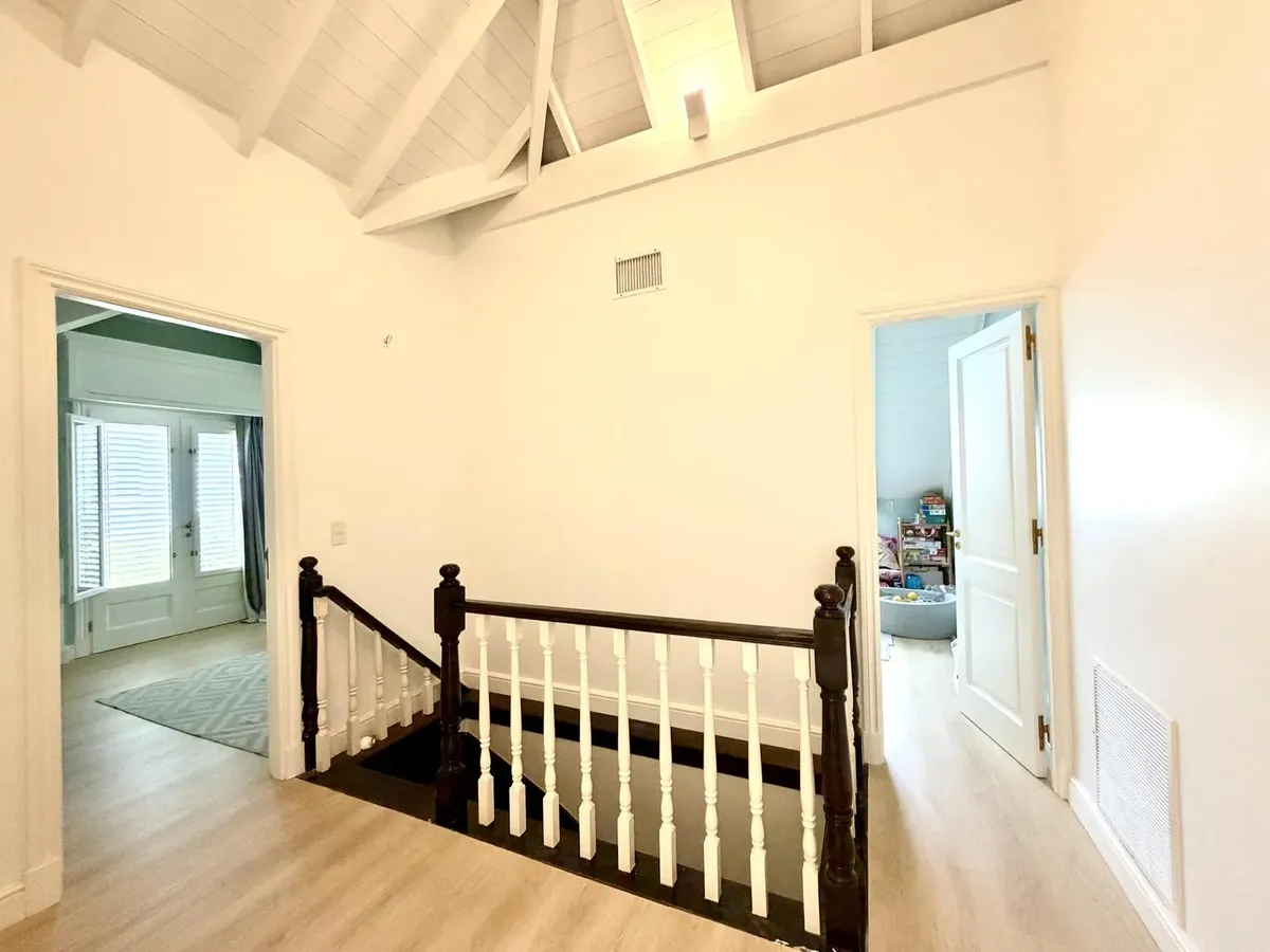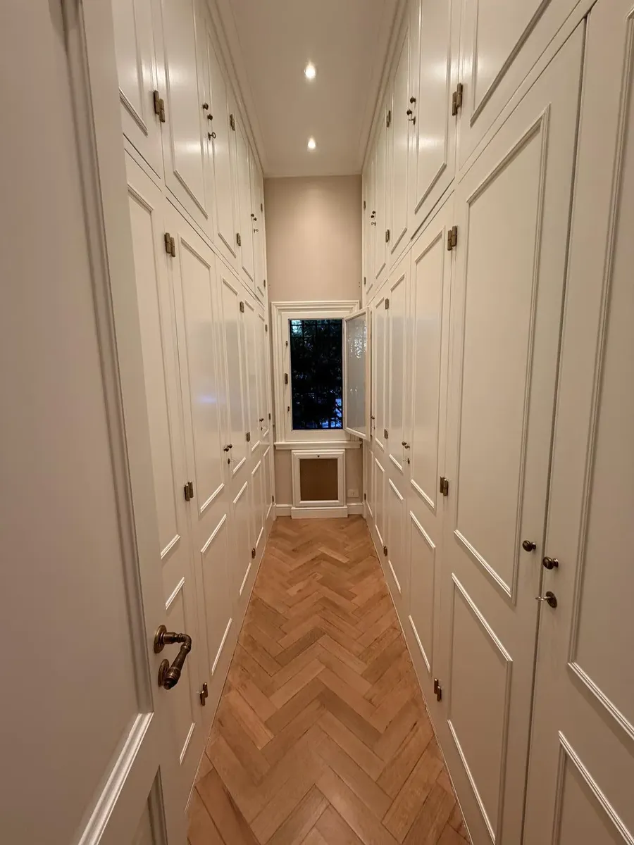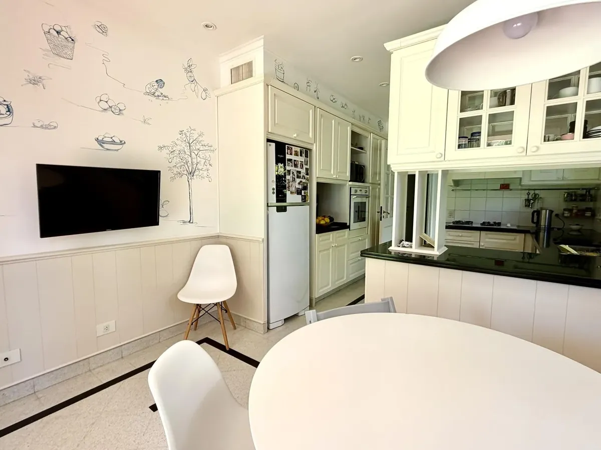 Квартира в Acassuso в Barrio Parque Aguirre в английском стиле, проект архитектора Donaldson. 3 спальни: master suite на первом этаже и 2 спальни наверху, одна примерно 6 x 3,5 m, вторая 3 x 3 m, с общей ванной комнатой с джакузи. Центральное кондиционирование Carrier и отопление радиаторами с котлом Peisa; в ванных — мрамор, деревянные оконные блоки, электрические жалюзи. На первом этаже: просторная приёмная с туалетом, большая гостиная-столовая с выходом в сад, отдельная мастер-спальня с гарде
