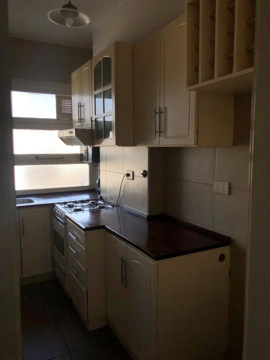 Квартира в Avellaneda, окна на улицу, рядом с Av. Mitre. 4 комнаты: большая гостиная-столовая с деревянным паркетом и обогревателем с дымоходом (estufa de tiro balanceado). Кухня с нижними шкафами и навесной секцией, плита на 4 конфорки и природный газовый водонагреватель (calefón). Два санузла: один с тумбой (vanitory), унитазом, биде и ванной, второй с умывальником, унитазом и подключением для стиральной машины. Три спальни: две выходят на улицу, одна во двор (contrafrente), во всех есть встро