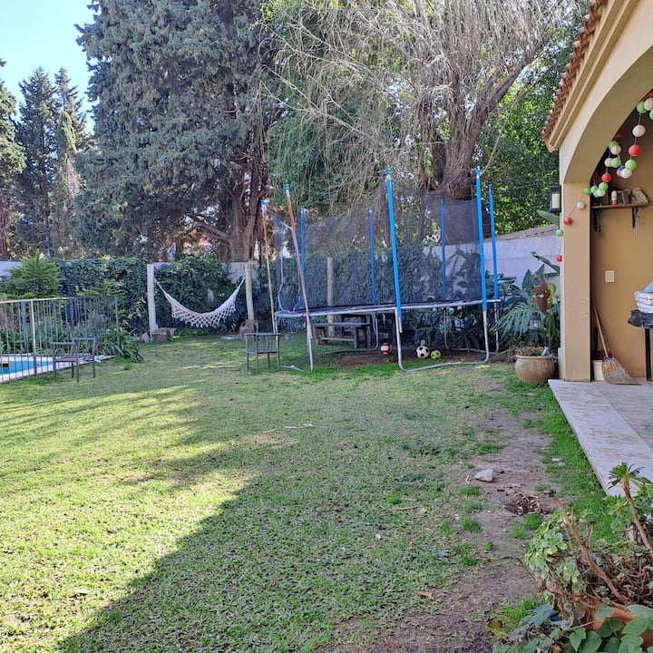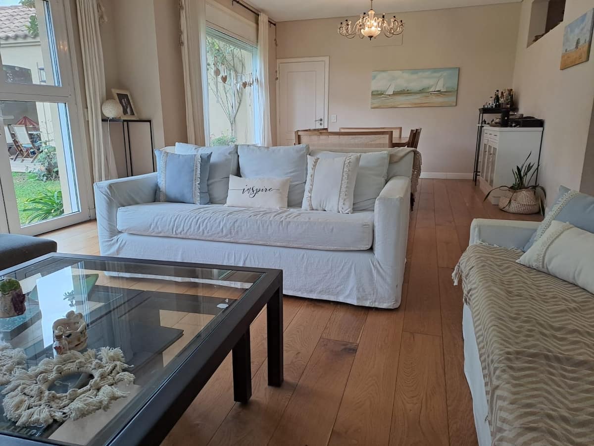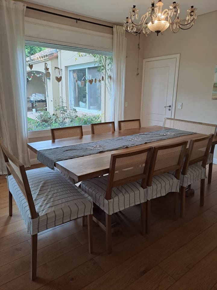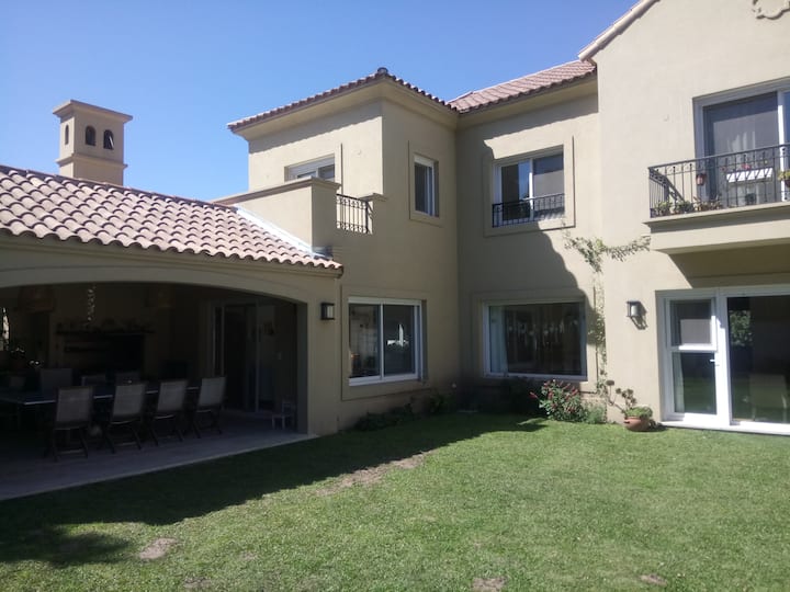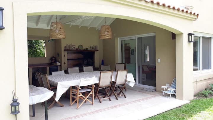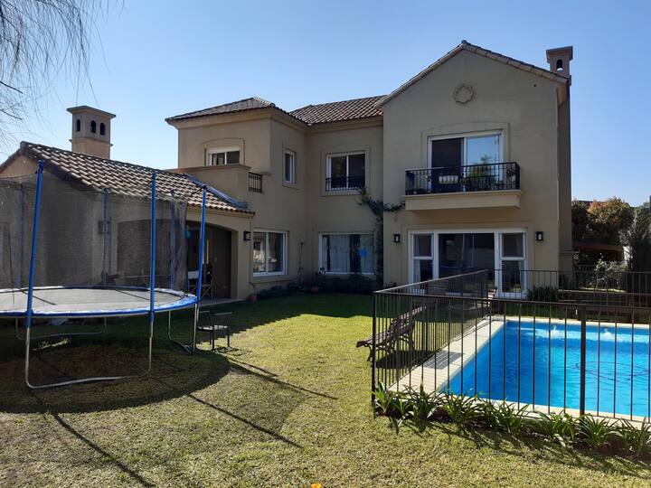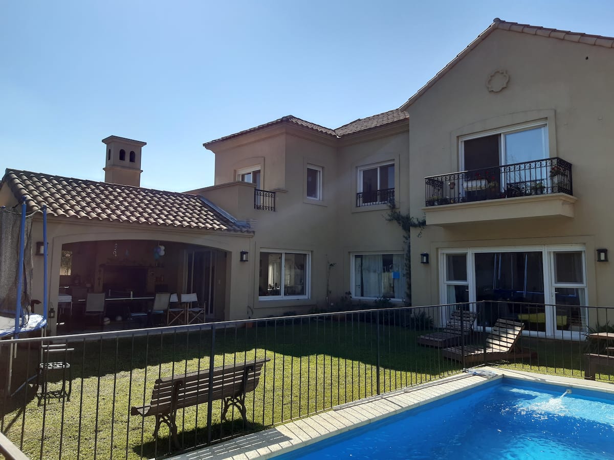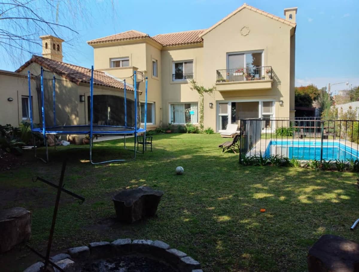Дом в закрытом районе La Horqueta в Beccar с бассейном и зоной для гриля (Quincho/Gallery). Указаны 3 спальни. Территория включает большой бассейн и сад. Есть оборудование и предусмотрена охрана 24 часа в сутки; сообщается о трансфере до центра из торгового центра в 3 кварталах от района.