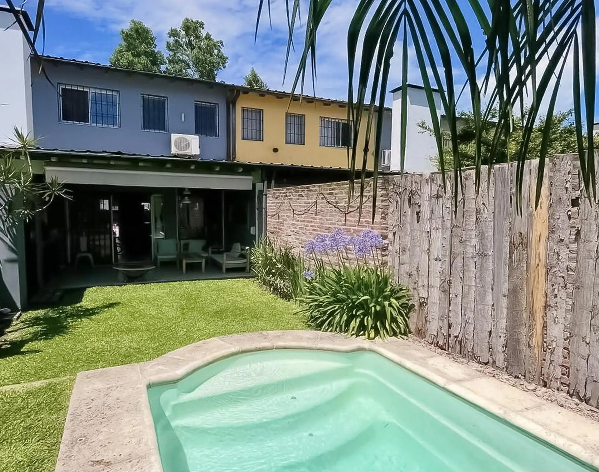 PH на участке в Beccar, 3 спальни. Обновлён в 2020 году и расположен на первом уровне с окнами на улицу. Внизу: передний сад, место для автомобиля, входное фойе, гостевой туалет, кухня с барной стойкой и подключением под стиральную машину, гостиная-столовая с выходом в основной сад на запад, галереей, зоной гриля и бассейном, а также внешним шкафом для хранения. На втором уровне: спальня на улицу с гардеробной и две спальни во двор с шкафами, кладовая (baulera) и общий санузел (не обновлялся); п