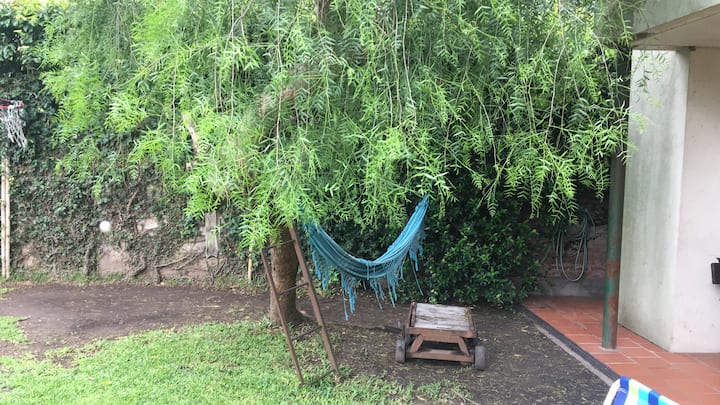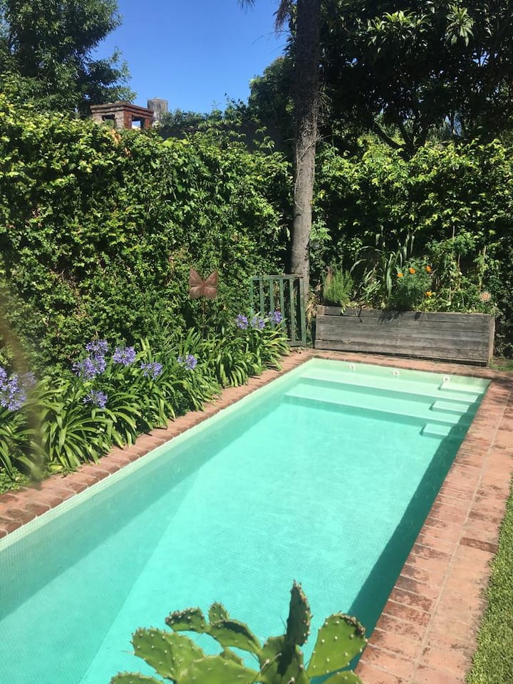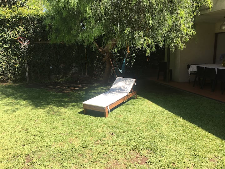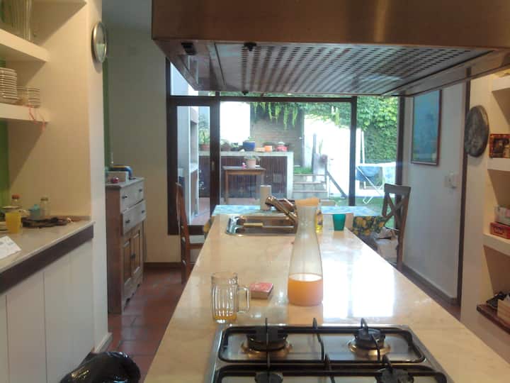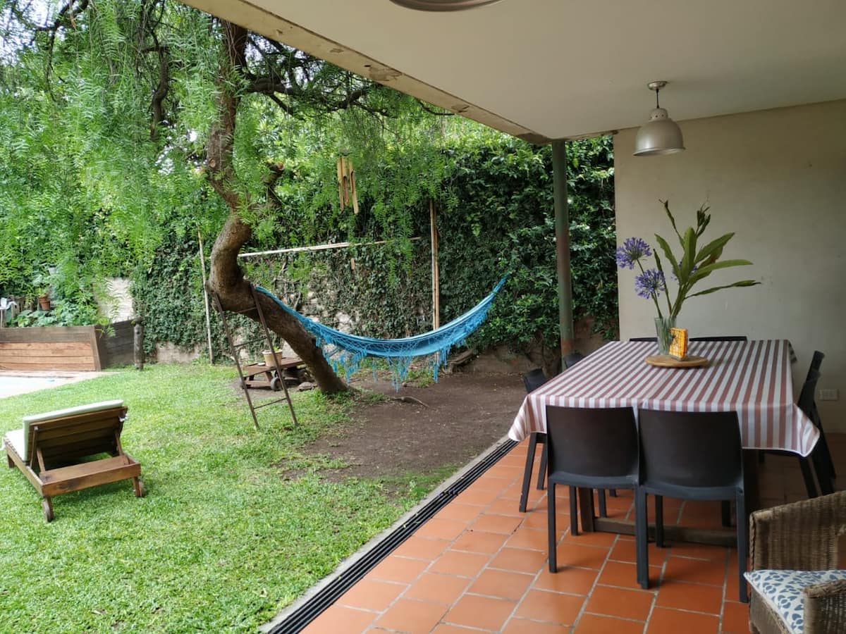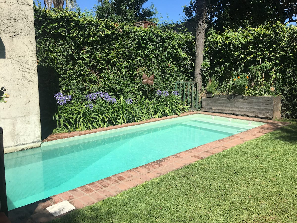 Двухэтажный дом в Beccar, San Isidro, с садом, зоной гриля, галереей и бассейном. Рассчитан на 6 человек, включает 3 спальни и 4 ванные комнаты, одна из них находится снаружи у бассейна. Есть кондиционер в каждой комнате, а также на кухне и в гостиной. На территории предусмотрена парковка и система безопасности.