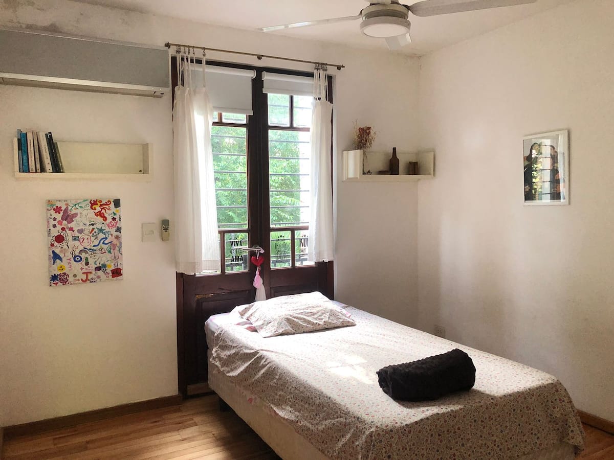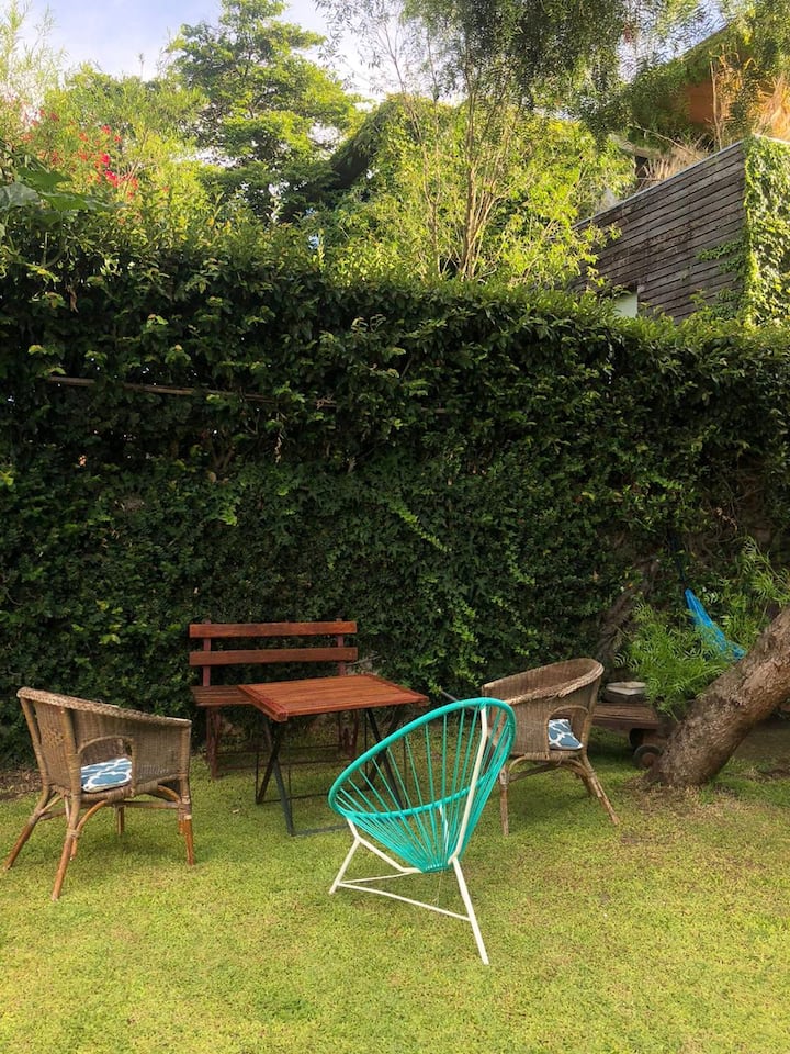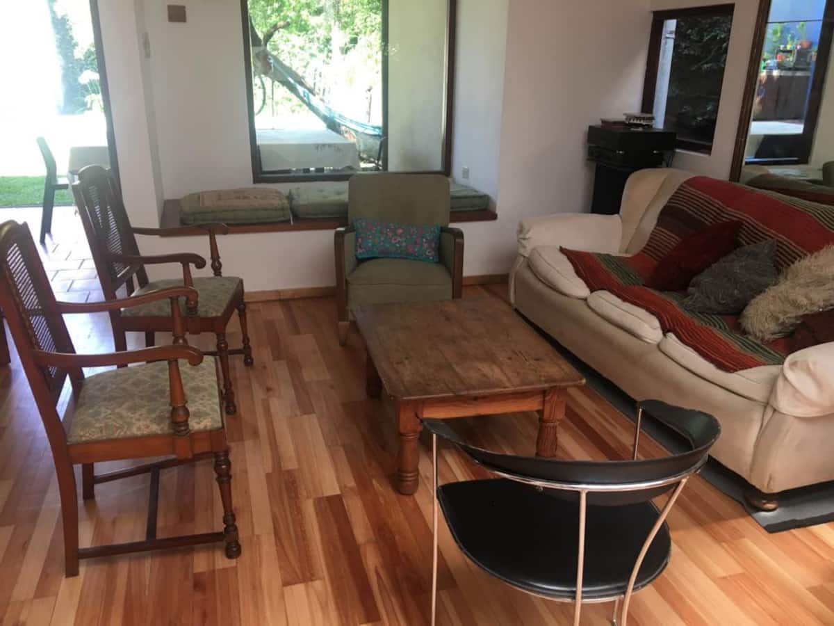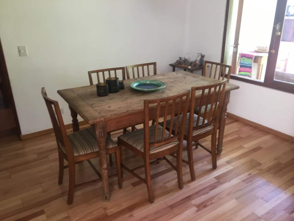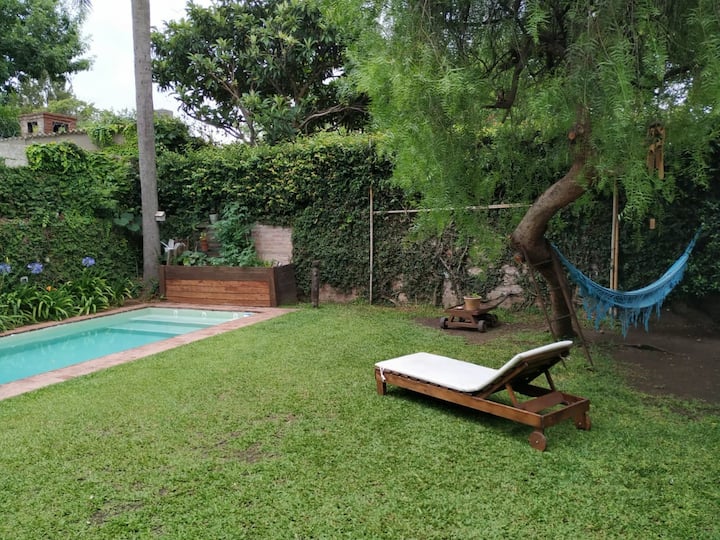 Двухэтажный дом в Beccar, San Isidro, с садом, зоной гриля, галереей и бассейном. Рассчитан на 6 человек, включает 3 спальни и 4 ванные комнаты, одна из них находится снаружи у бассейна. Есть кондиционер в каждой комнате, а также на кухне и в гостиной. На территории предусмотрена парковка и система безопасности.