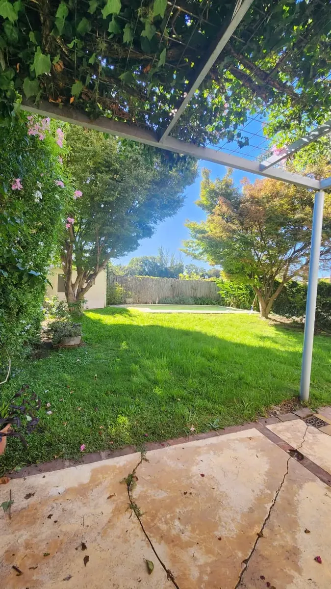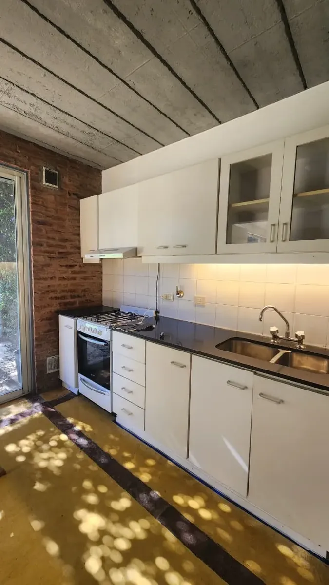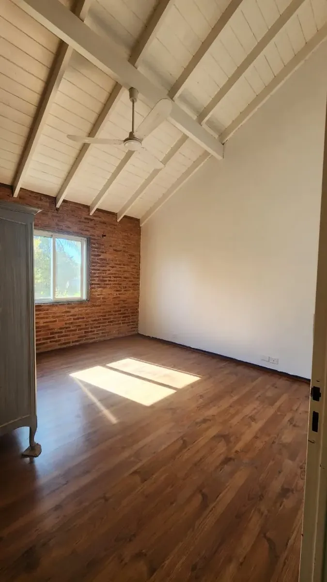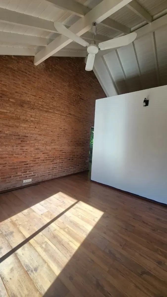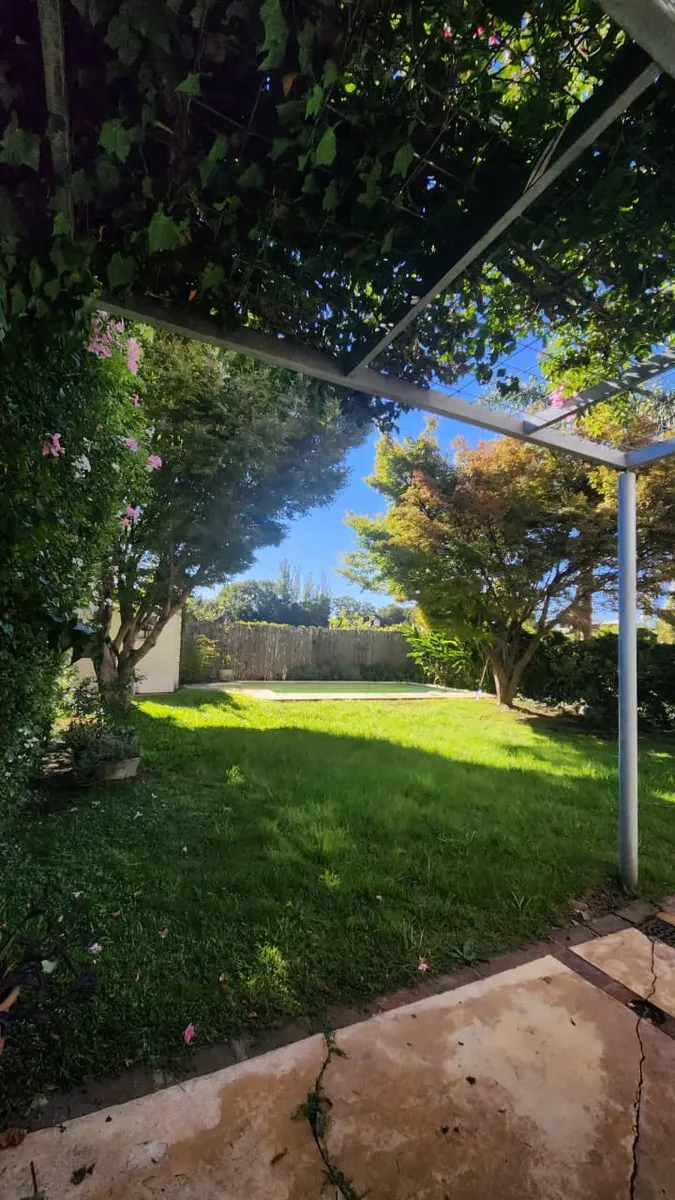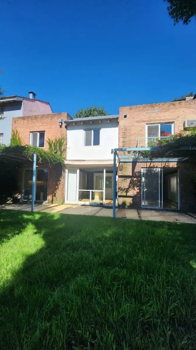 Дом в аренду в закрытом комплексе Los Faroles в Beccar. На первом этаже кухня, столовая, гостевой туалет и большая гостиная с зоной под ТВ. На втором этаже 3 спальни, главная с ванной комнатой и гардеробной, также ещё одна ванная, распределительный холл с местом под ТВ или рабочий стол. В доме есть сад с большой галереей под перголой, бассейн и зона гриля. Указано, что расположение обеспечивает удобный доступ к Panamericana.