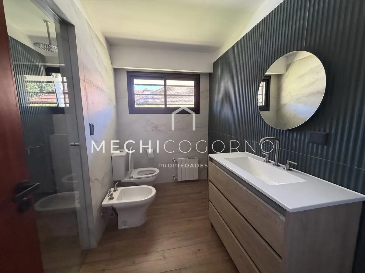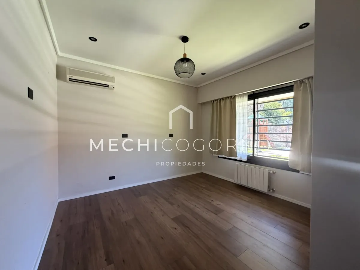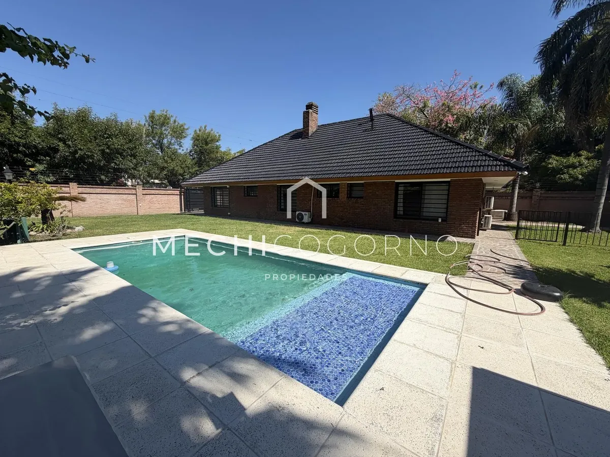 Дом в Beccar на одном уровне с 3 спальнями, кухней с островом, большой гостиной-столовой и туалетом. В спальнях: главная со встроенной ванной/гардеробной, две другие имеют общий полностью оборудованный санузел. Есть подвал, большая крытая зона для гриля с установленной parrilla, а также отдельная хозяйственная часть с ванной и кухней. На участке — большой сад и бассейн. Отопление и кондиционирование.