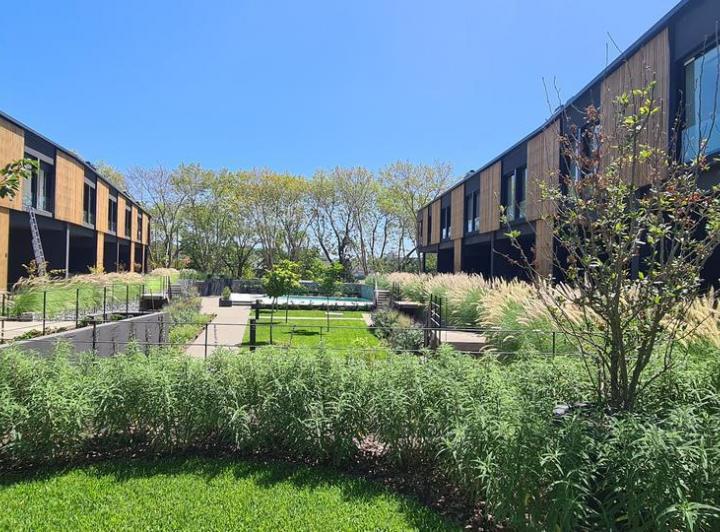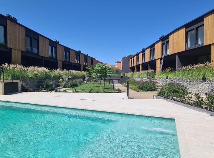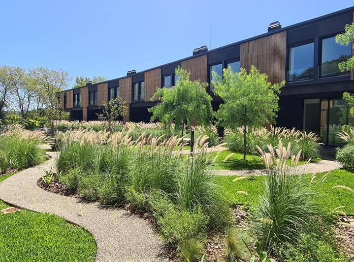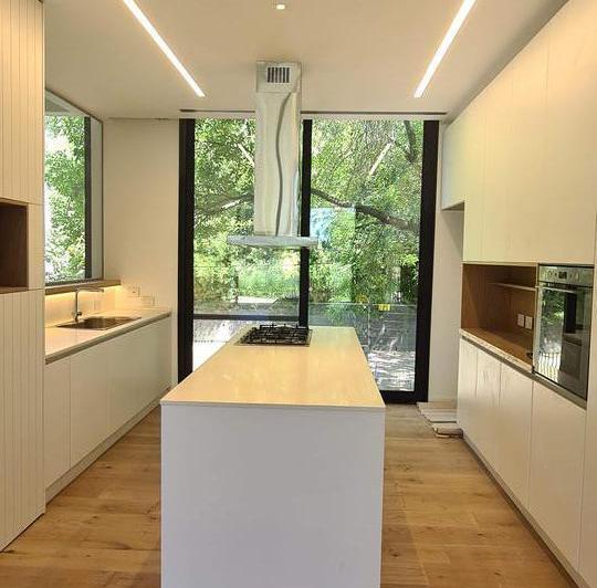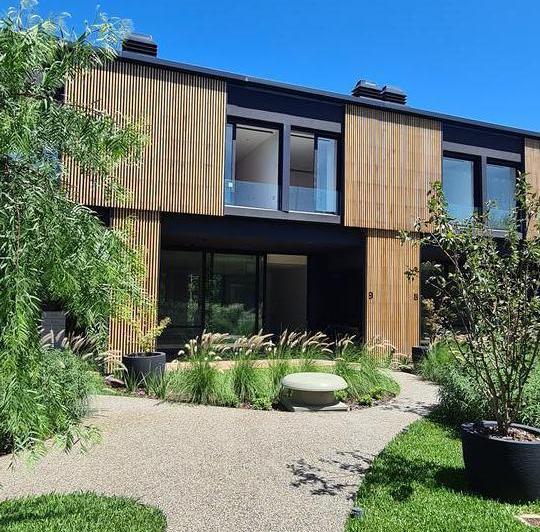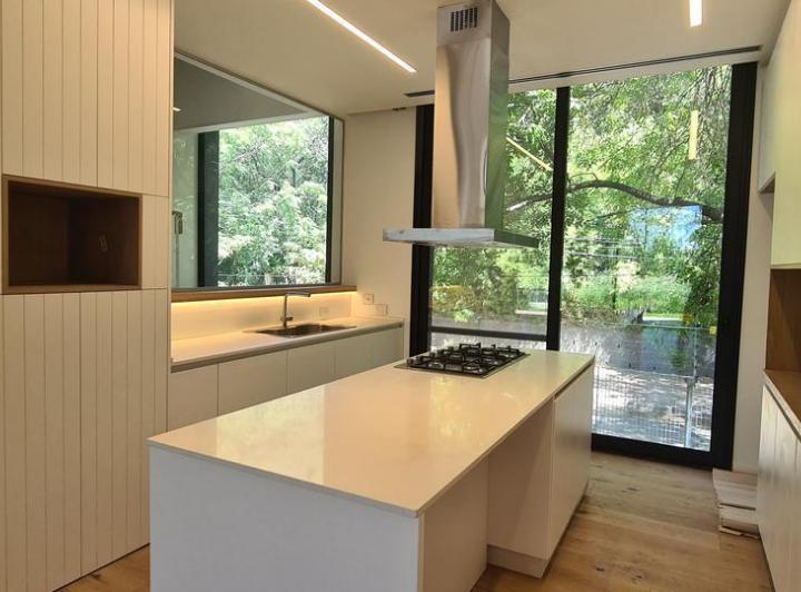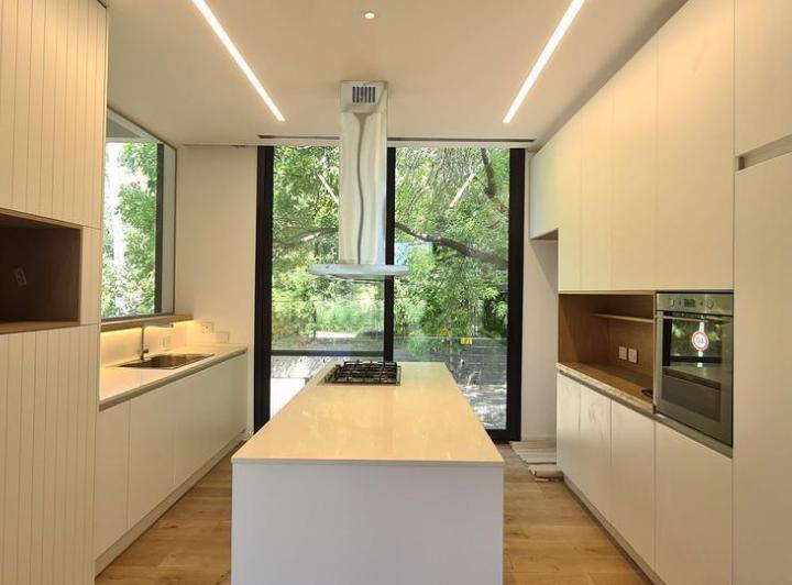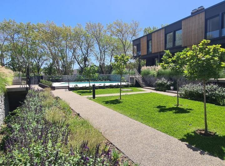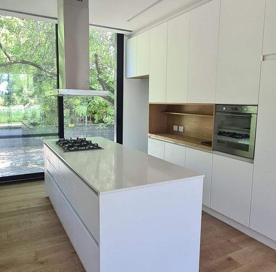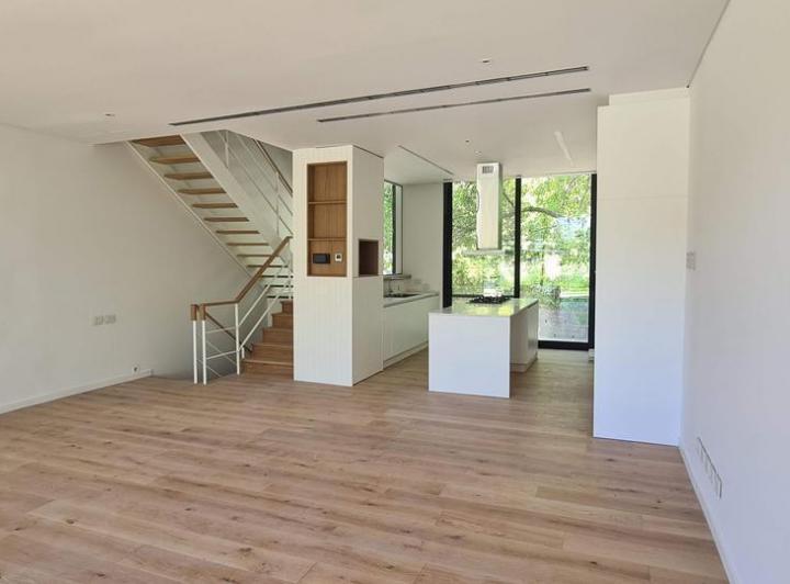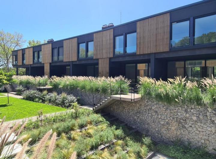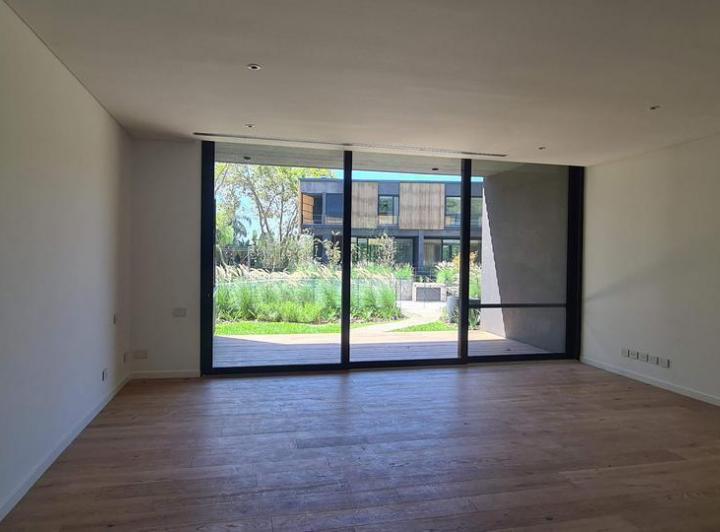 Квартира в формате дома в Beccar, 182 крытых m², 21 полукрытых m² и (без собственного сада) 38 m² гаража. Здание состоит из 3 уровней. На уровне 0 предусмотрен гараж на 2 автомобиля с автоматическими рольставнями, есть служебная дверь в зону прачечной, машинное отделение и спальня для прислуги с ванной, а также доступ к PA через лестницу. На уровне 1: туалет с естественной вентиляцией и светом, гостиная-столовая с выходом на собственную галерею с зоной гриля и трёхсекционным раздвижным остеклени
