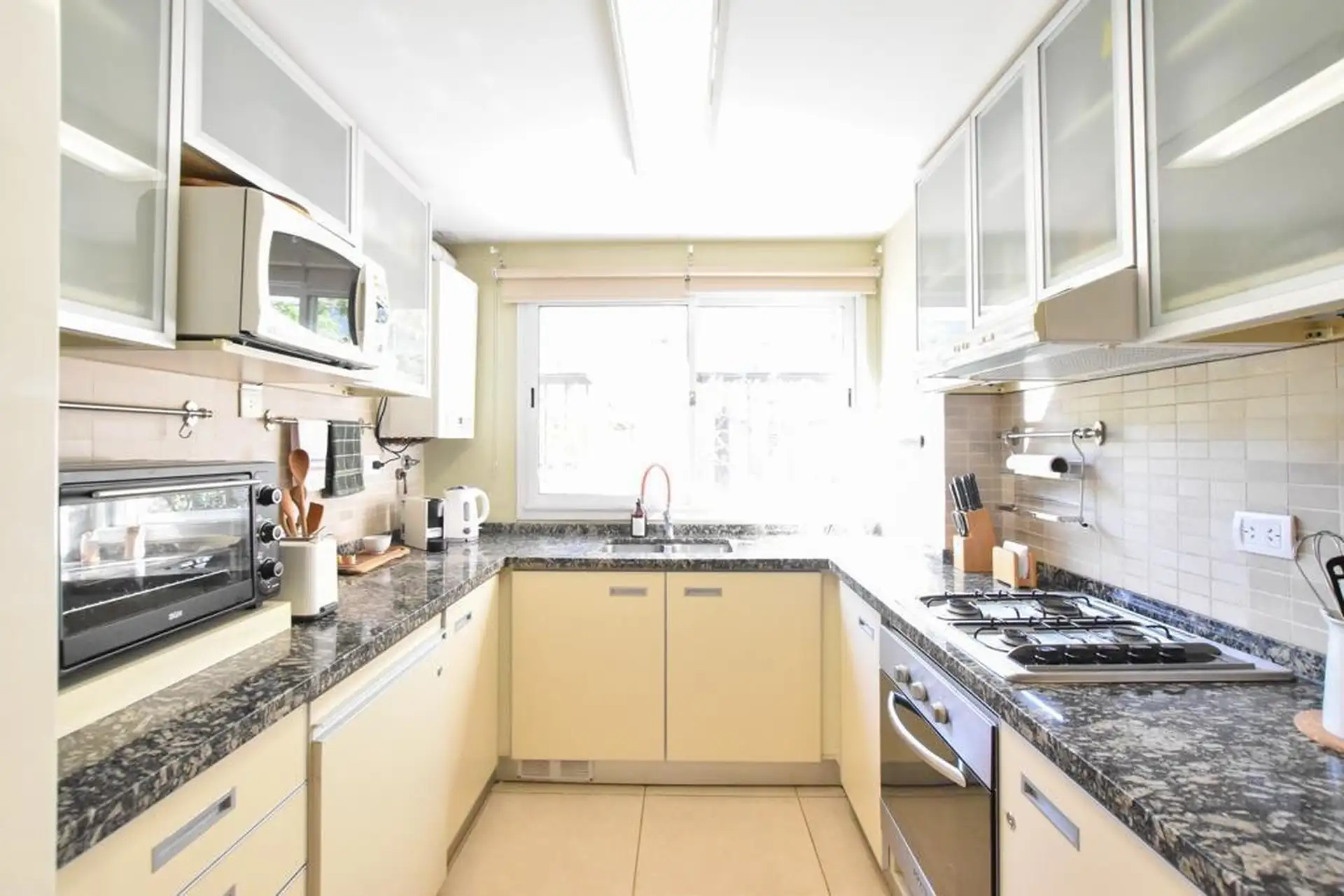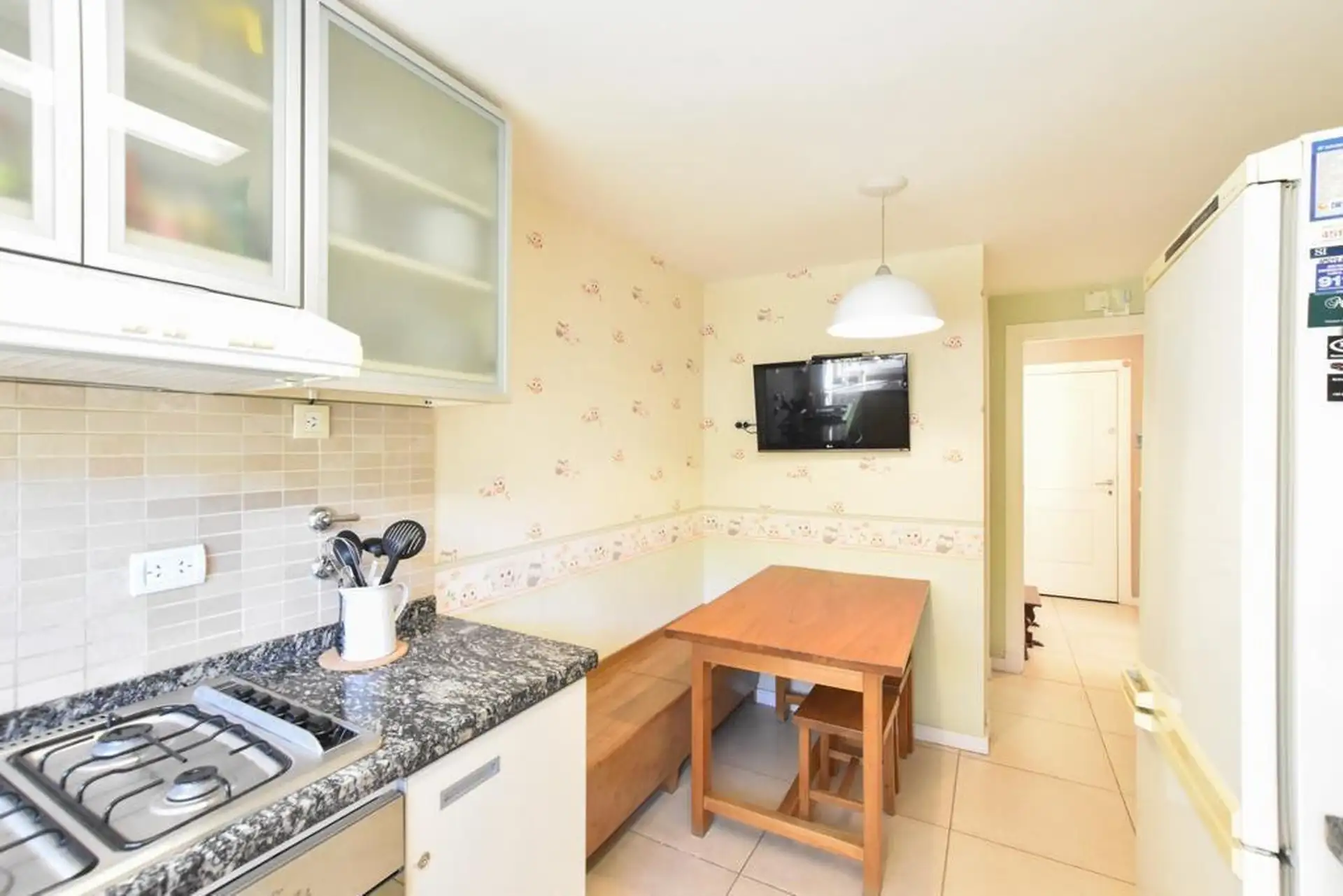 Квартира в формате дуплекс в комплексе Beccar Plaza 2 в Beccar. На первом уровне: гостиная-столовая с выходом на патио на крыше, кухня с обеденной зоной, застеклённая прачечная и гостевой туалет. На втором уровне расположены 3 спальни с встроенными шкафами; главная спальня с ванной комнатой и гардеробной, две остальные делят отдельную полноценную ванную. В распоряжении 2 (закреплённых) парковочных места. В комплексе: охрана 24 часа, бассейн, тренажёрный зал, общая гостиная для жильцов (SUM), дет