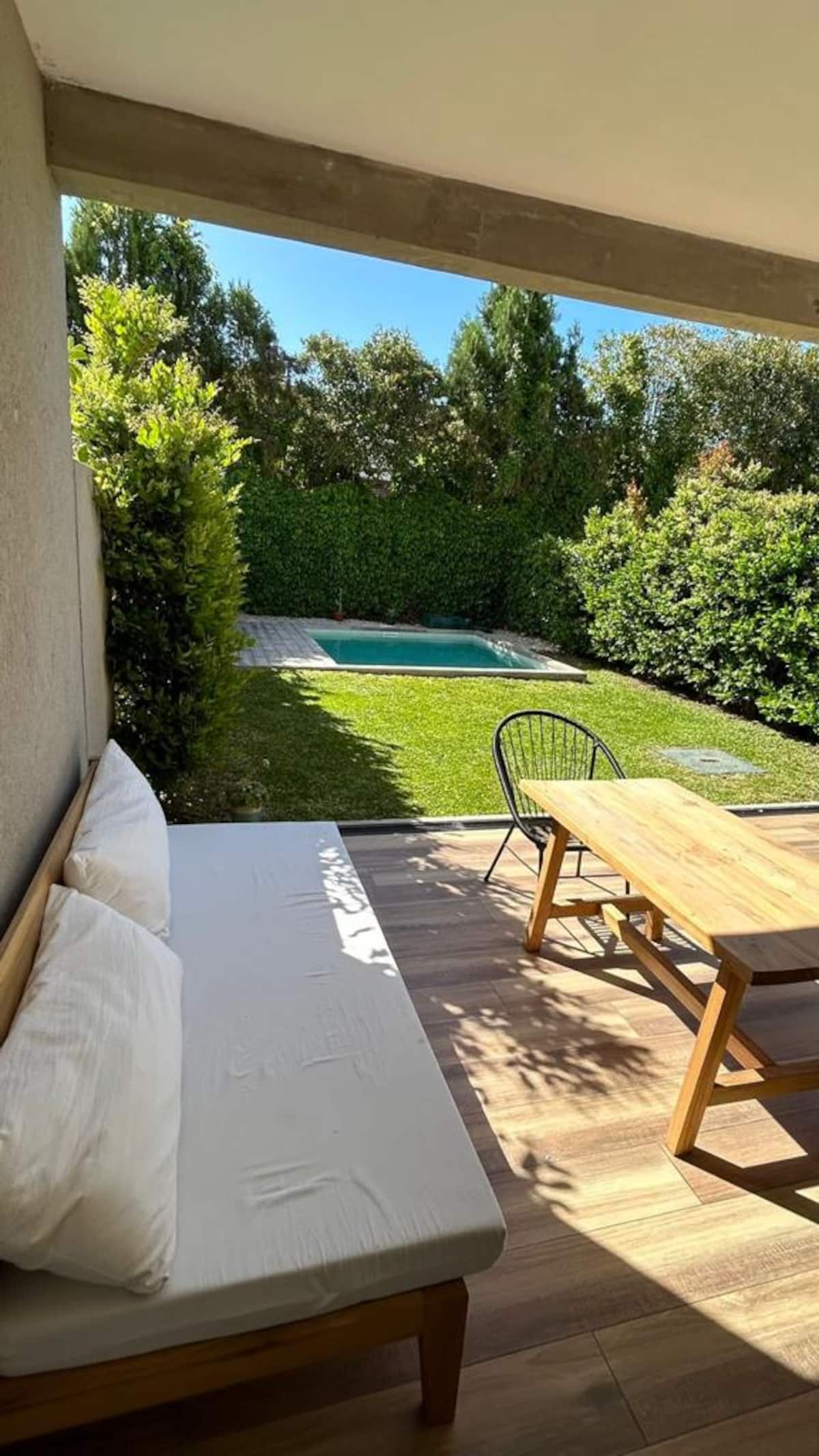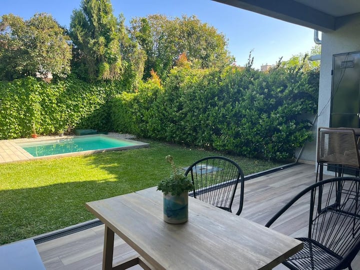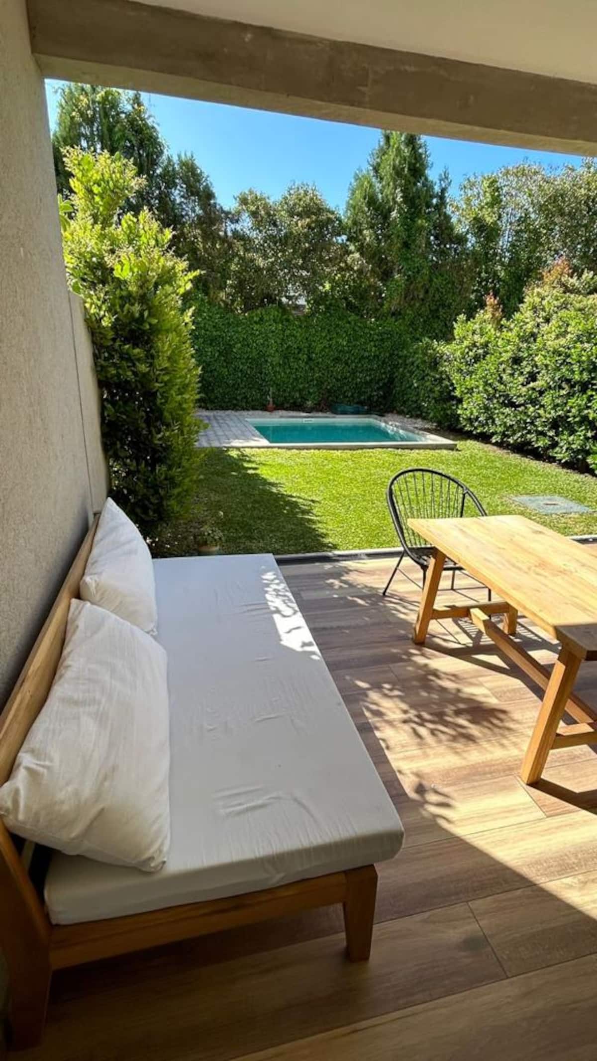 Дом-дуплекс в закрытом посёлке в Horqueta / Merced. Собственный бассейн. На территории предусмотрены зона для барбекю и сад.