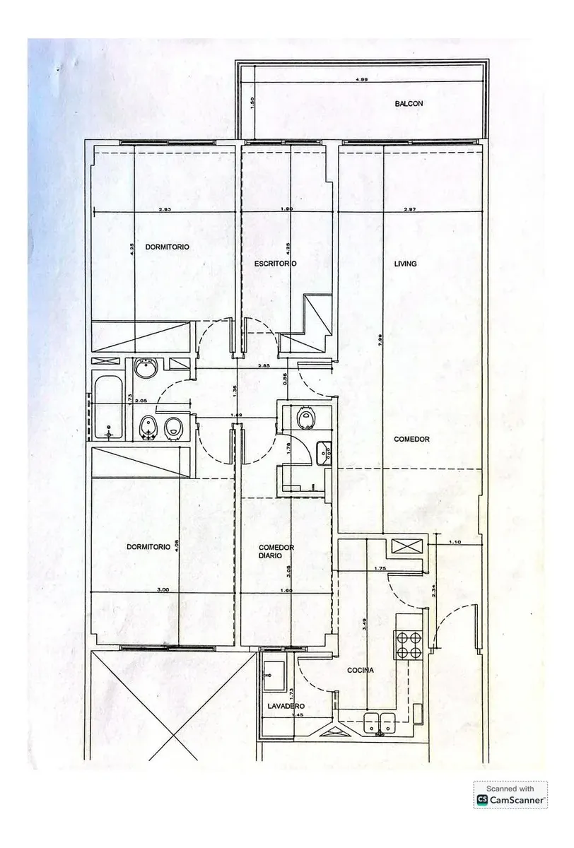 Квартира в Belgrano, 4 комнаты, на 2 этаже с окнами на улицу. Жилая-столовая с выходом на балкон. 3 спальни со встроенными шкафами, отдельный санузел и гостевой туалет. Отдельная кухня с обеденной зоной, отдельная прачечная, кондиционеры в гостиной-столовой и в главной спальне. Горячая вода от бойлера (calefón), отопление центральное тёплые плиты (losa radiante). Полуприватный холл (palier semiprivado), помещение для хранения и (закреплённое) место для парковки, без других заявленных amenities.