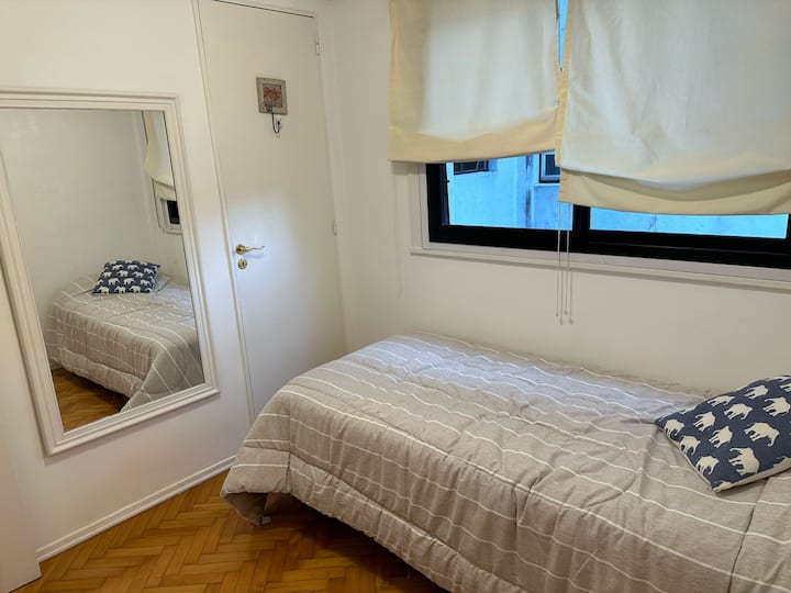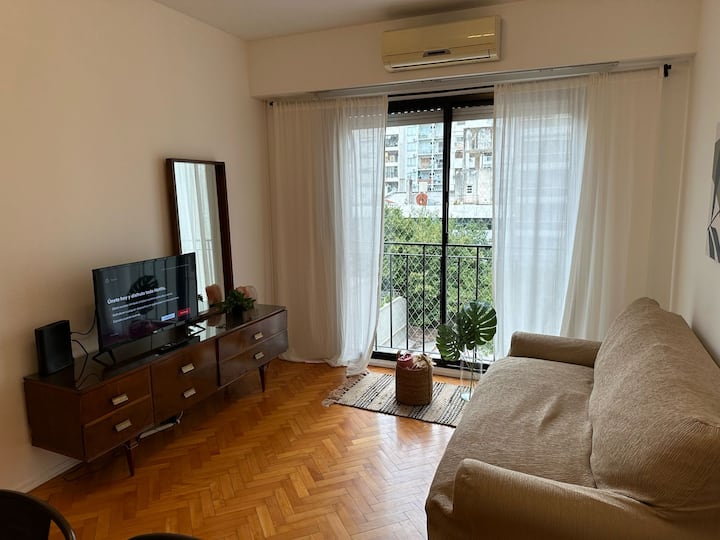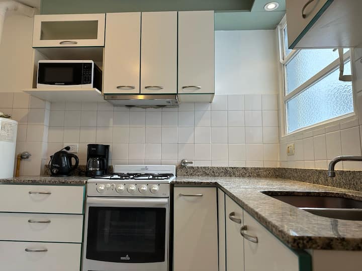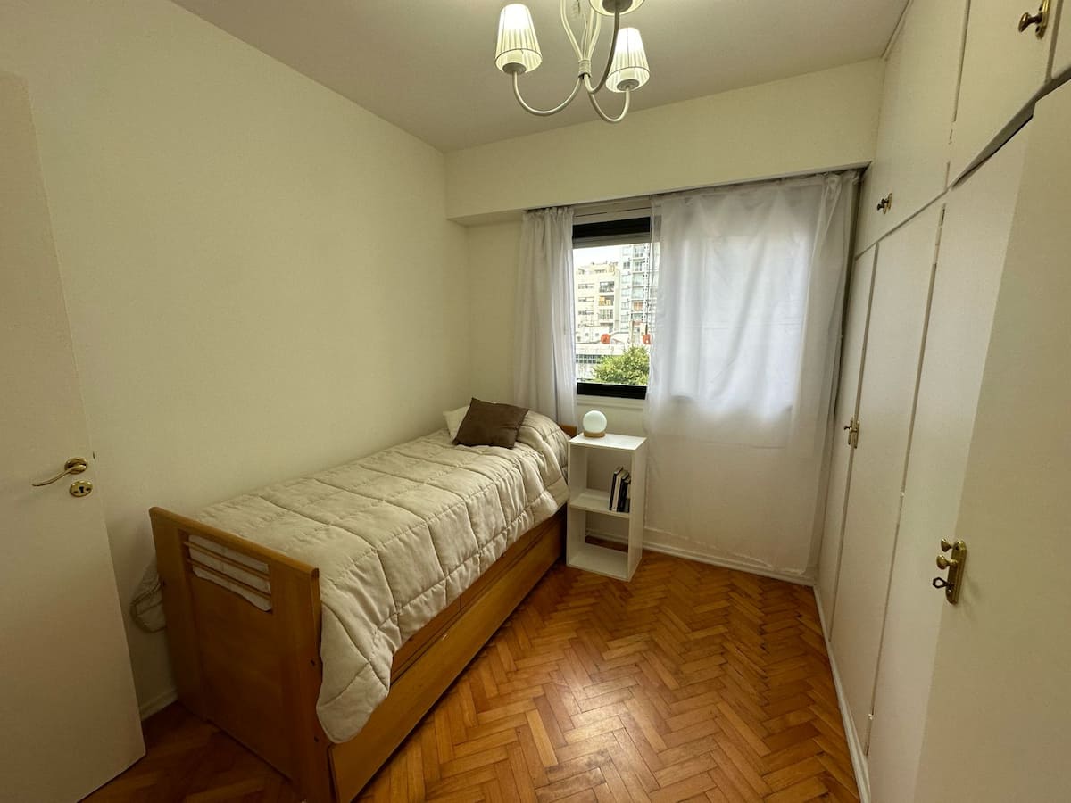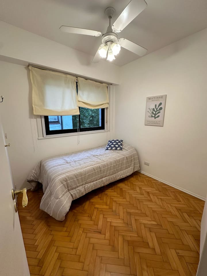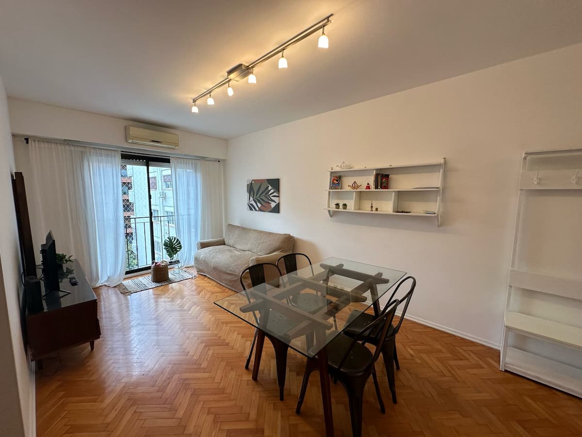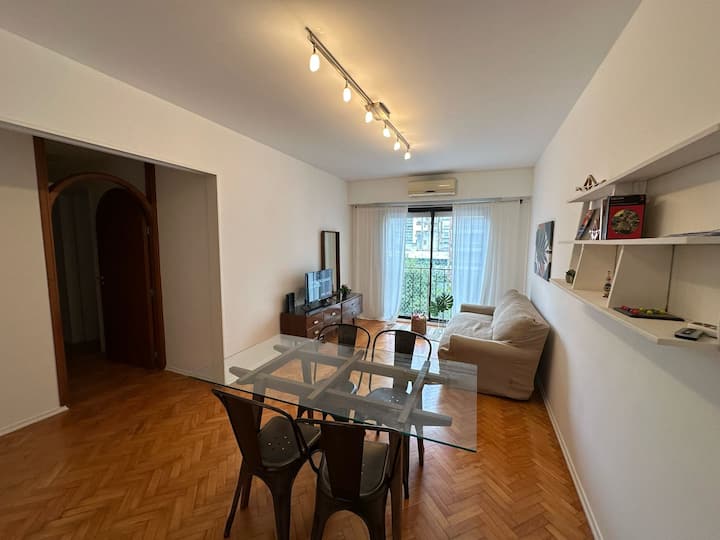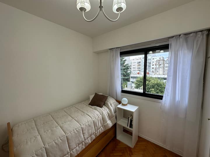 Квартира с 3 спальнями в Colegiales, с окнами во внутренний двор квартала, подходит для краткосрочной, среднесрочной и долгосрочной аренды в течение всего года. В квартире 1 полный санузел и 1 туалет, кухня полностью оборудована и имеет обеденный стол. Предусмотрены Wi-Fi, стиральная машина, кондиционер в гостиной и вентиляторы в каждой комнате; в ванной есть ванна и душ.