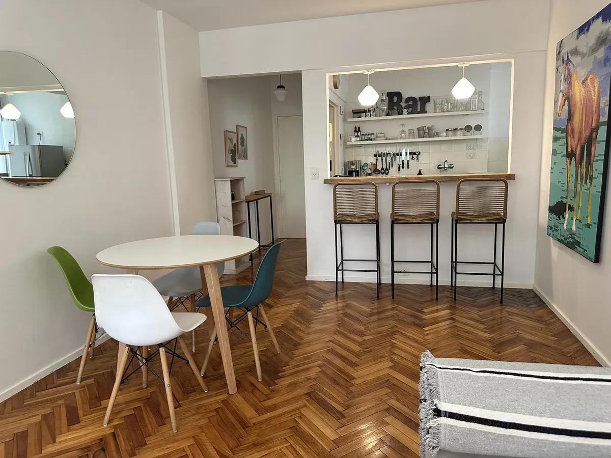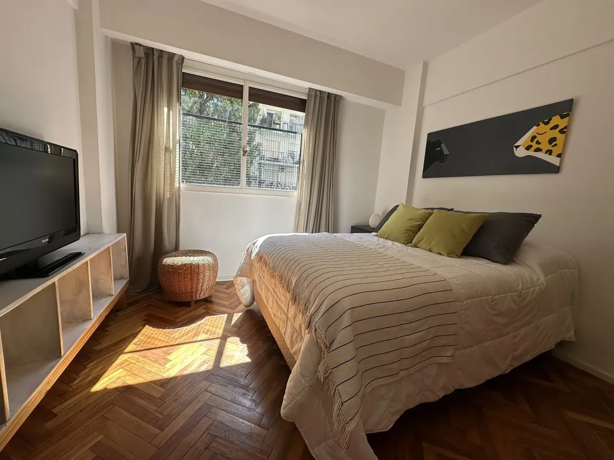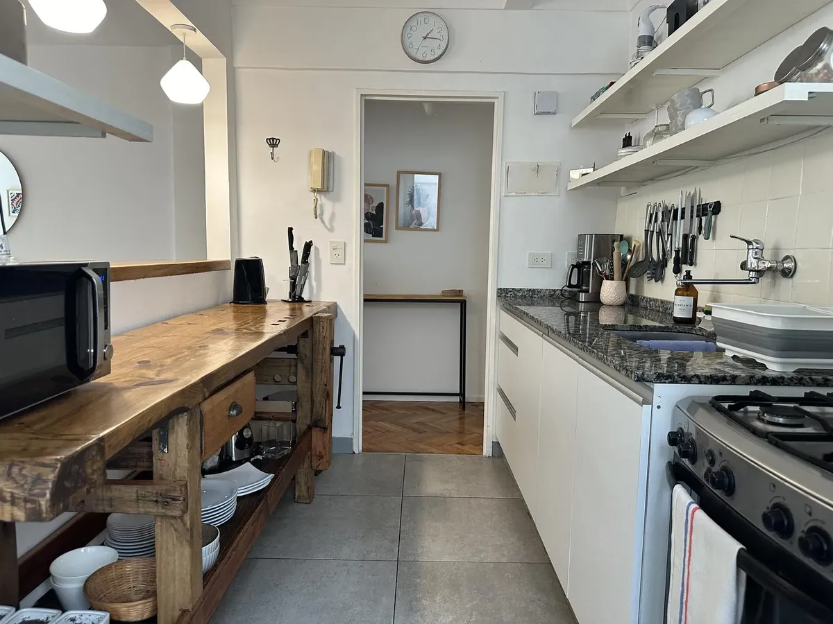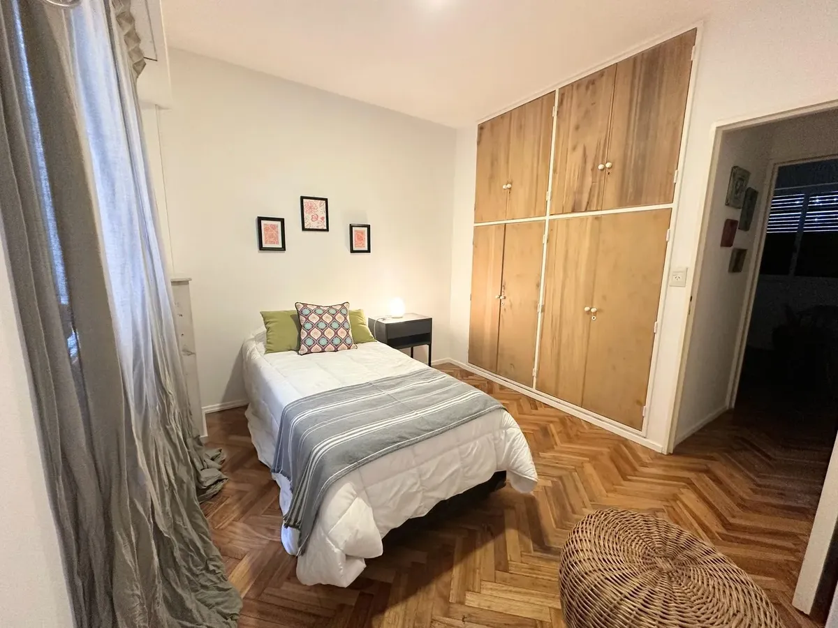 Квартира в Colegiales, временная аренда на 1 месяц. 4 комнаты после ремонта, с мебелью, окна во двор. Кухня с полупроходом и барной стойкой выходит в гостиную-столовую с выходом на балкон во внутренний двор квартала. В прихожей есть коридор с гостевым туалетом, 3 спальни и полноценная ванная с ванной. В квартире установлены 2 кондиционера, паркетные и керамические полы, в здании есть портье на первом этаже. В числе оборудования холодильник, стиральная машина, микроволновая печь, кофеварка, тосте