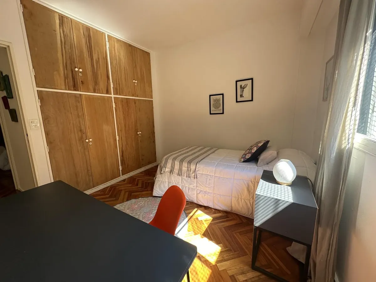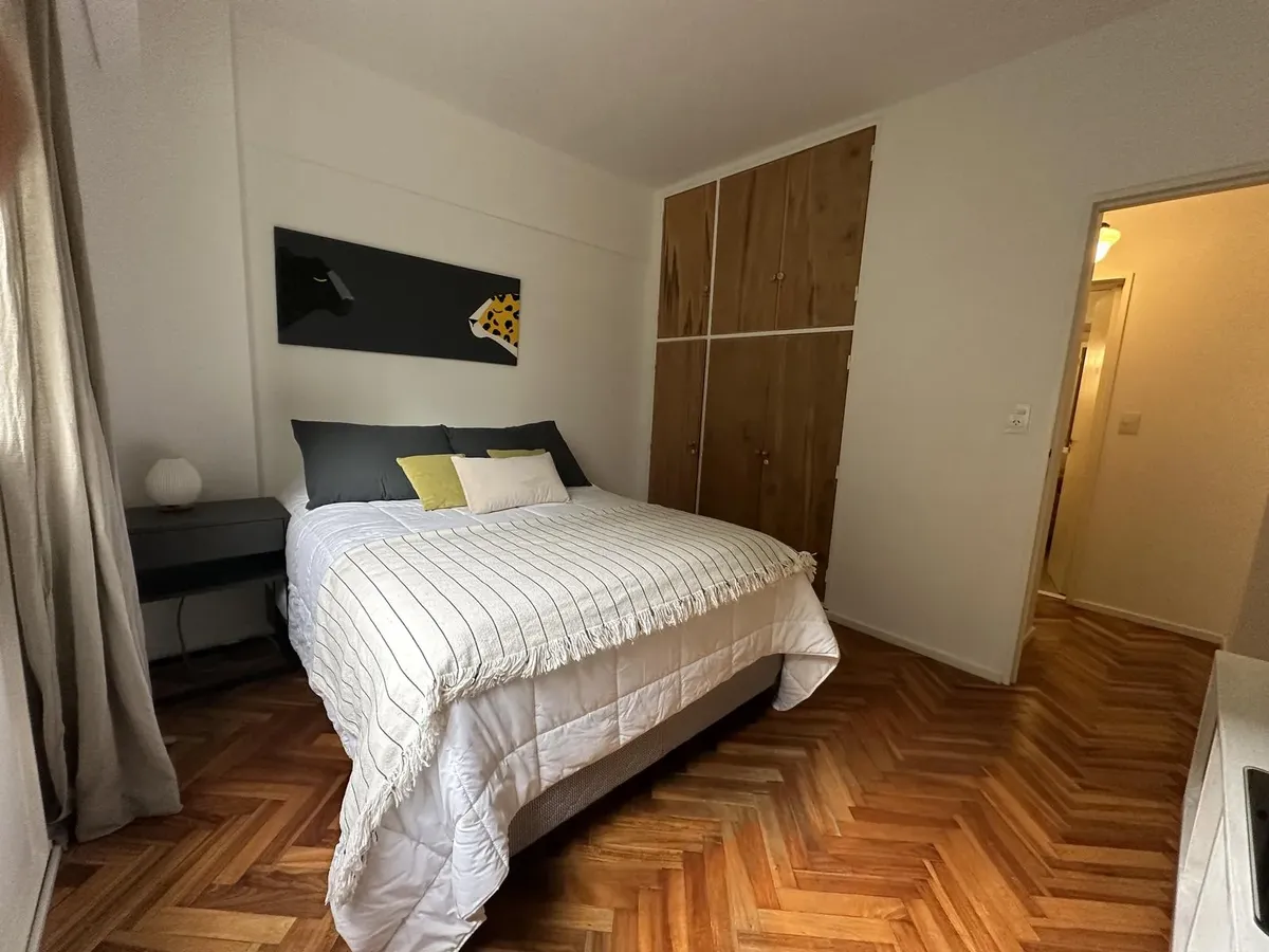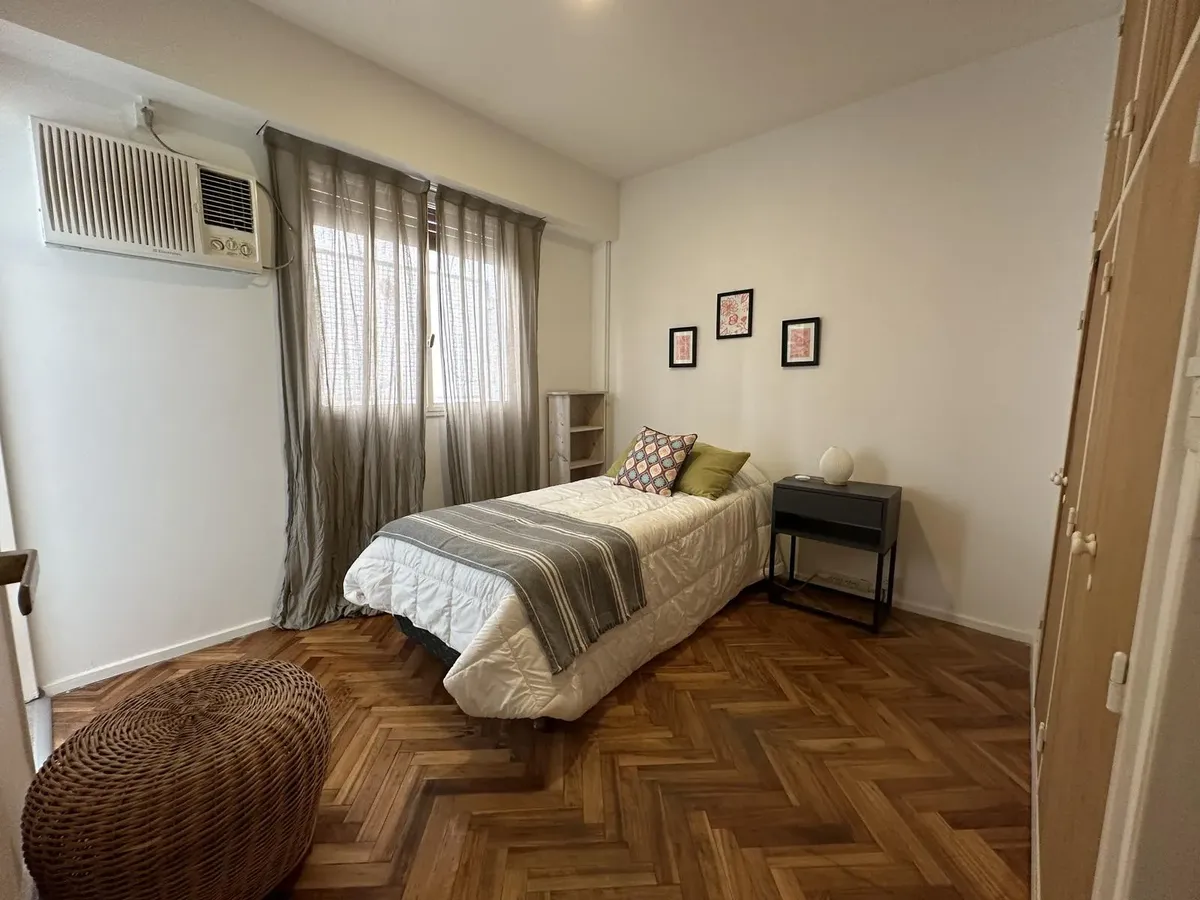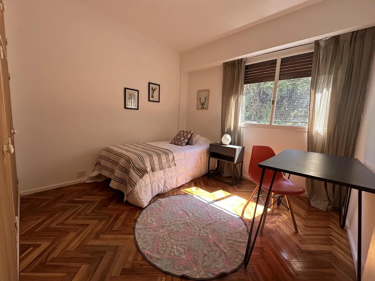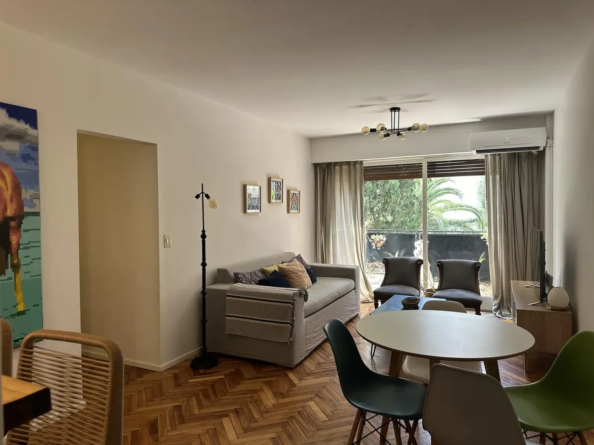 Квартира в Colegiales, временная аренда на 1 месяц. 4 комнаты после ремонта, с мебелью, окна во двор. Кухня с полупроходом и барной стойкой выходит в гостиную-столовую с выходом на балкон во внутренний двор квартала. В прихожей есть коридор с гостевым туалетом, 3 спальни и полноценная ванная с ванной. В квартире установлены 2 кондиционера, паркетные и керамические полы, в здании есть портье на первом этаже. В числе оборудования холодильник, стиральная машина, микроволновая печь, кофеварка, тосте