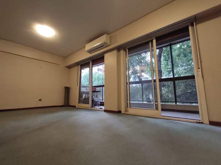 Квартира в полуэтажной планировке (semipiso) в Colegiales, окна на улицу, 1A. 110 m² крытых, 10 m² балкон (corridor) на фасаде, 120 m² общих. Есть 2 спальни, 2 полностью оборудованные ванные комнаты, а также служебная комната с ванной. Предусмотрены carport для хранения автомобиля и место для хранения велосипедов. В здании работает администратор и есть небольшой SUM на верхнем этаже.
