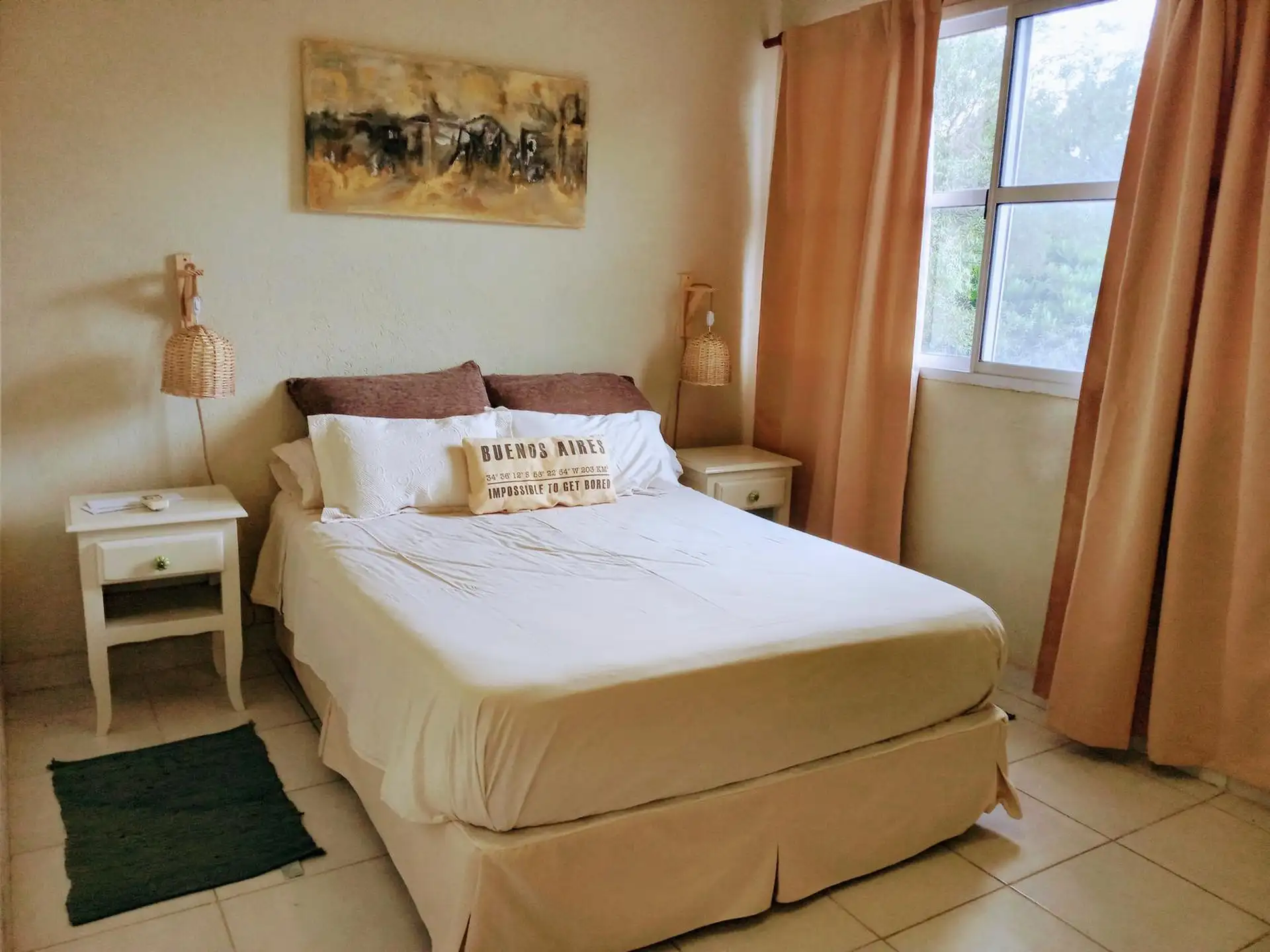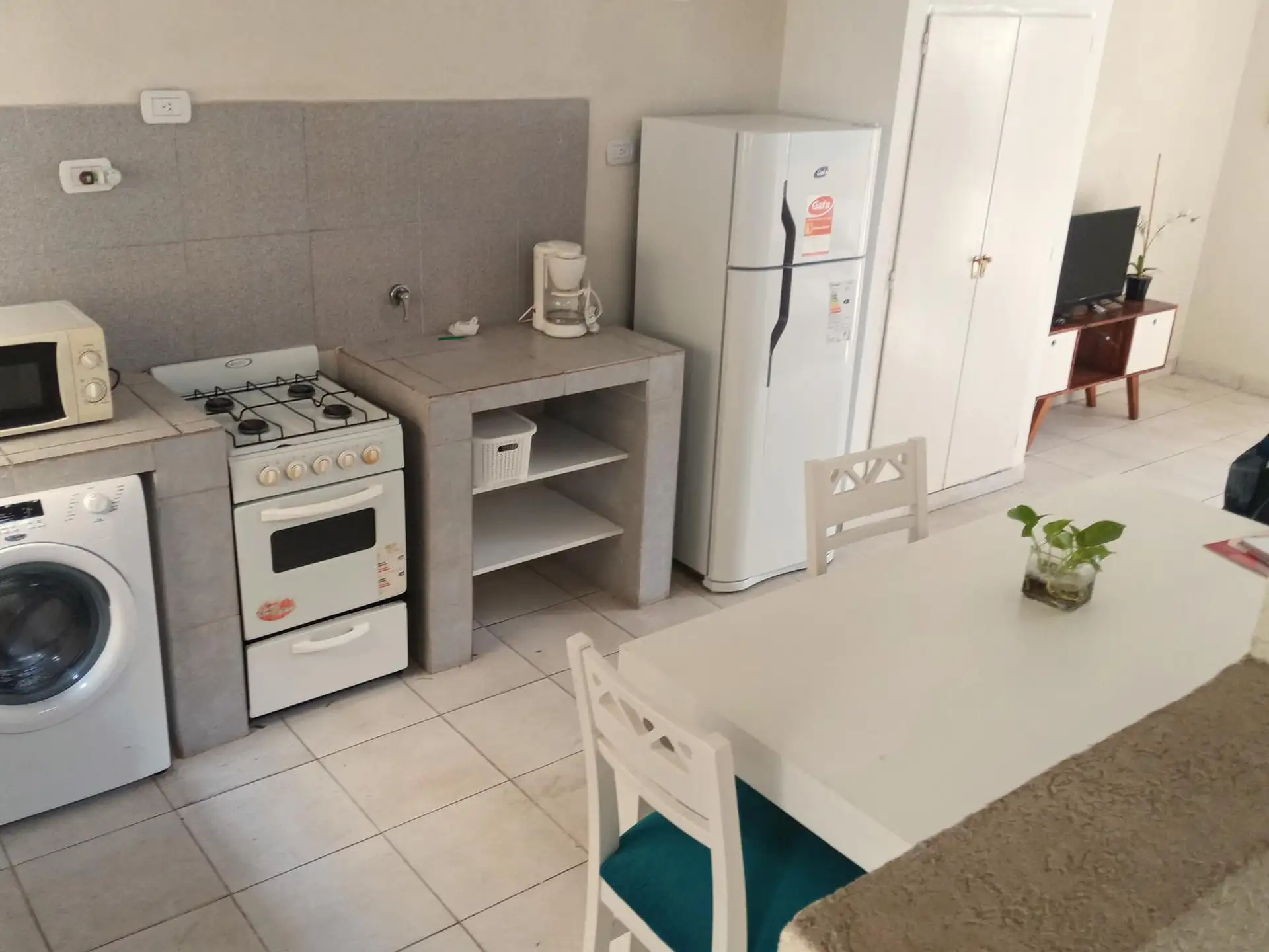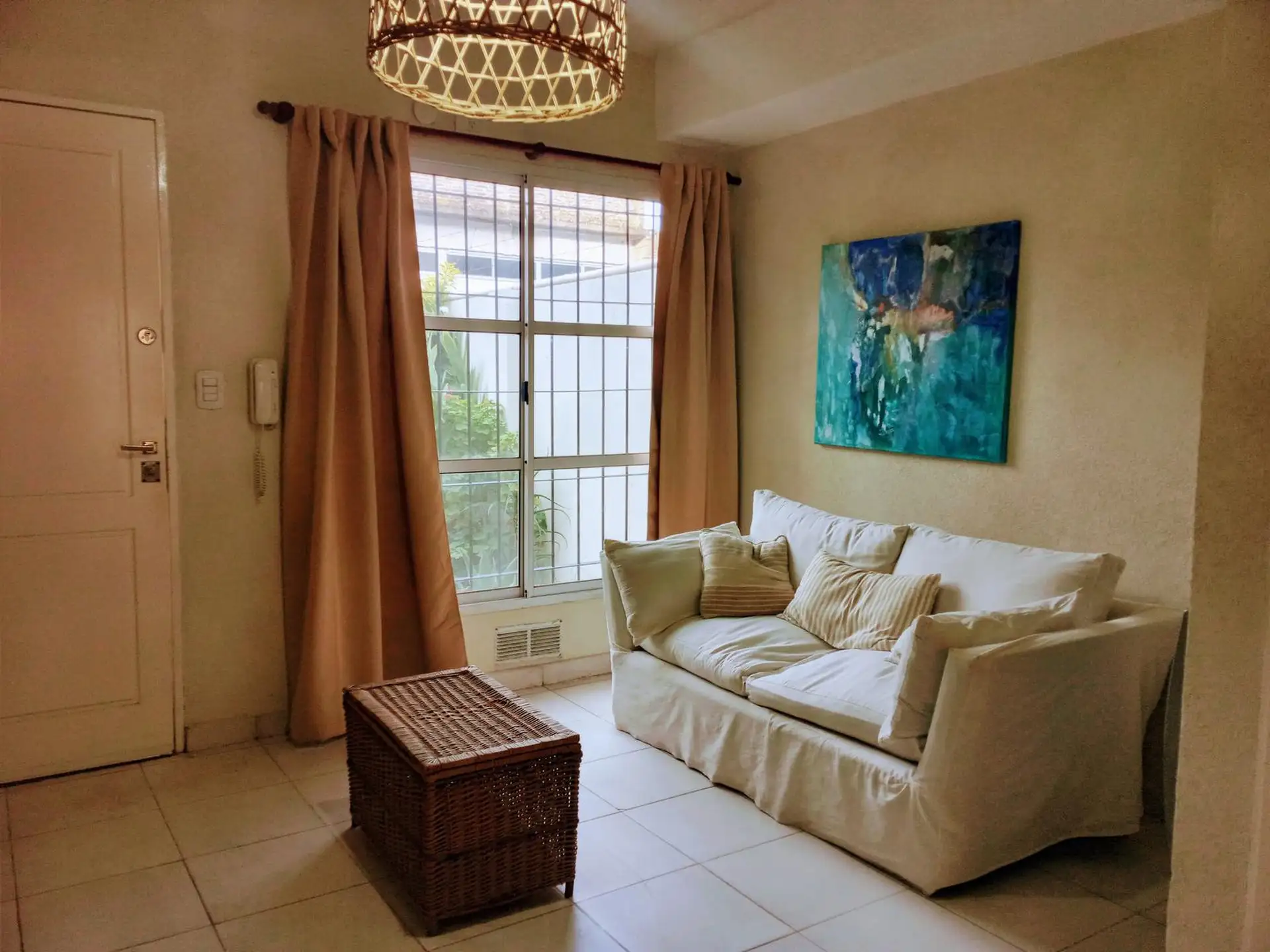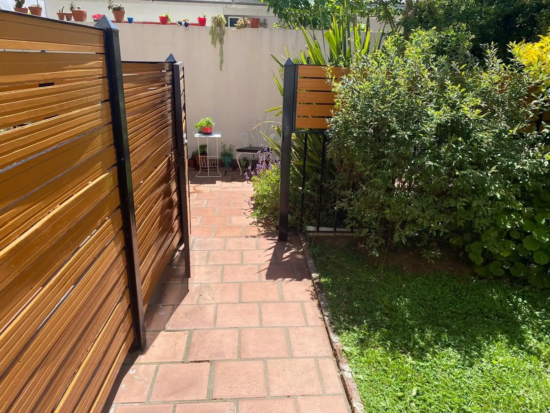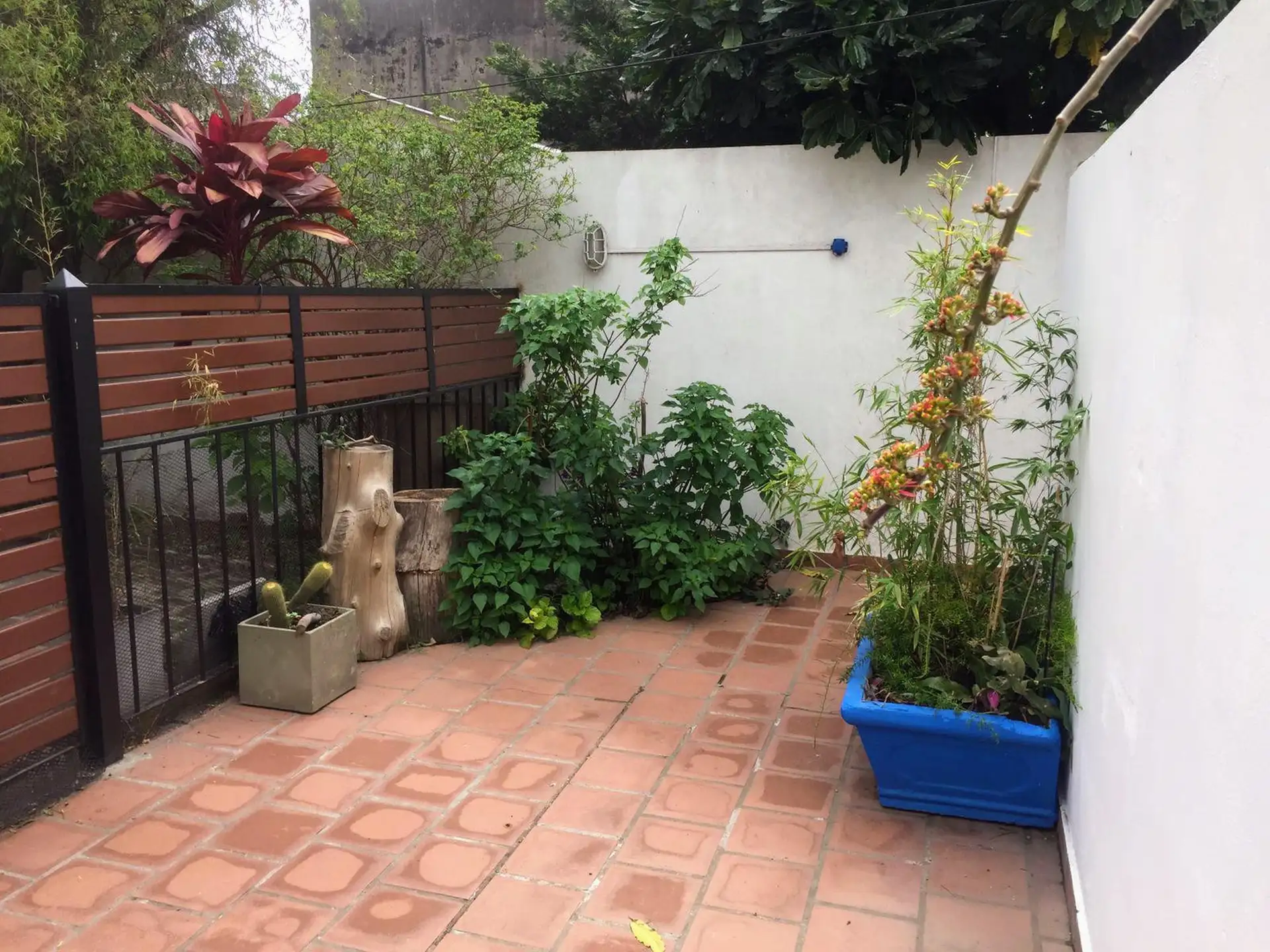 PH на временную аренду в General San Martín, 3 комнаты, площадь 80 m², два уровня. Квартира с отдельным входом, с садом спереди и внутренним двориком во дворе. Две спальни расположены на верхнем этаже; на первом — туалет, на верхнем — полностью оборудованная ванная комната с биде и душем. Кухня-гостиная объединена, с холодильником, плитой с духовкой, микроволновой печью и набором посуды на 4 человека; в наличии Wi‑Fi, полностью с мебелью. Кондиционер не указан. Коммунальные платежи здания (expen