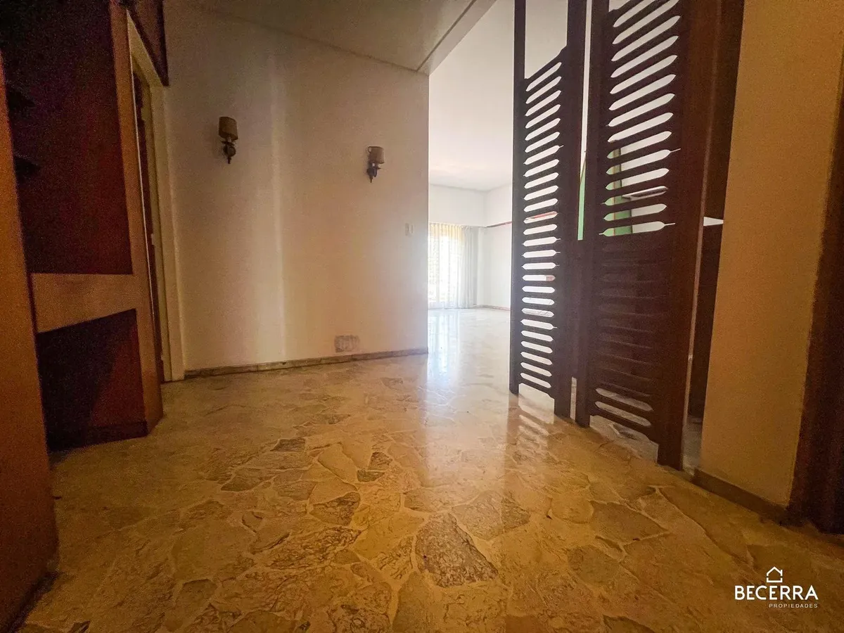 Квартира в Hurlingham Centro, 1-й этаж, с садом на первом уровне. В ней 3 комнаты: 2 спальни со встроенными шкафами, а также офис или третья спальня. Есть гостиная с камином, столовая, кухня с дневной столовой, 2 ванные комнаты и туалет. Окна выходят на улицу; предусмотрены балкон и терраса с зоной гриля, а также сад с quincho и прачечной. Двухлетний договор с ежеквартальным повышением. Для въезда требуются первый месяц авансом, депозит, оплата комиссии агентству и гарантия (имущественная или ст