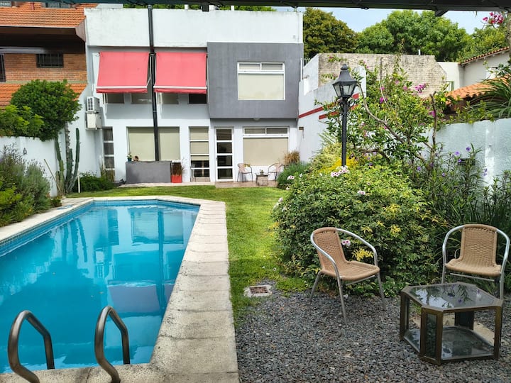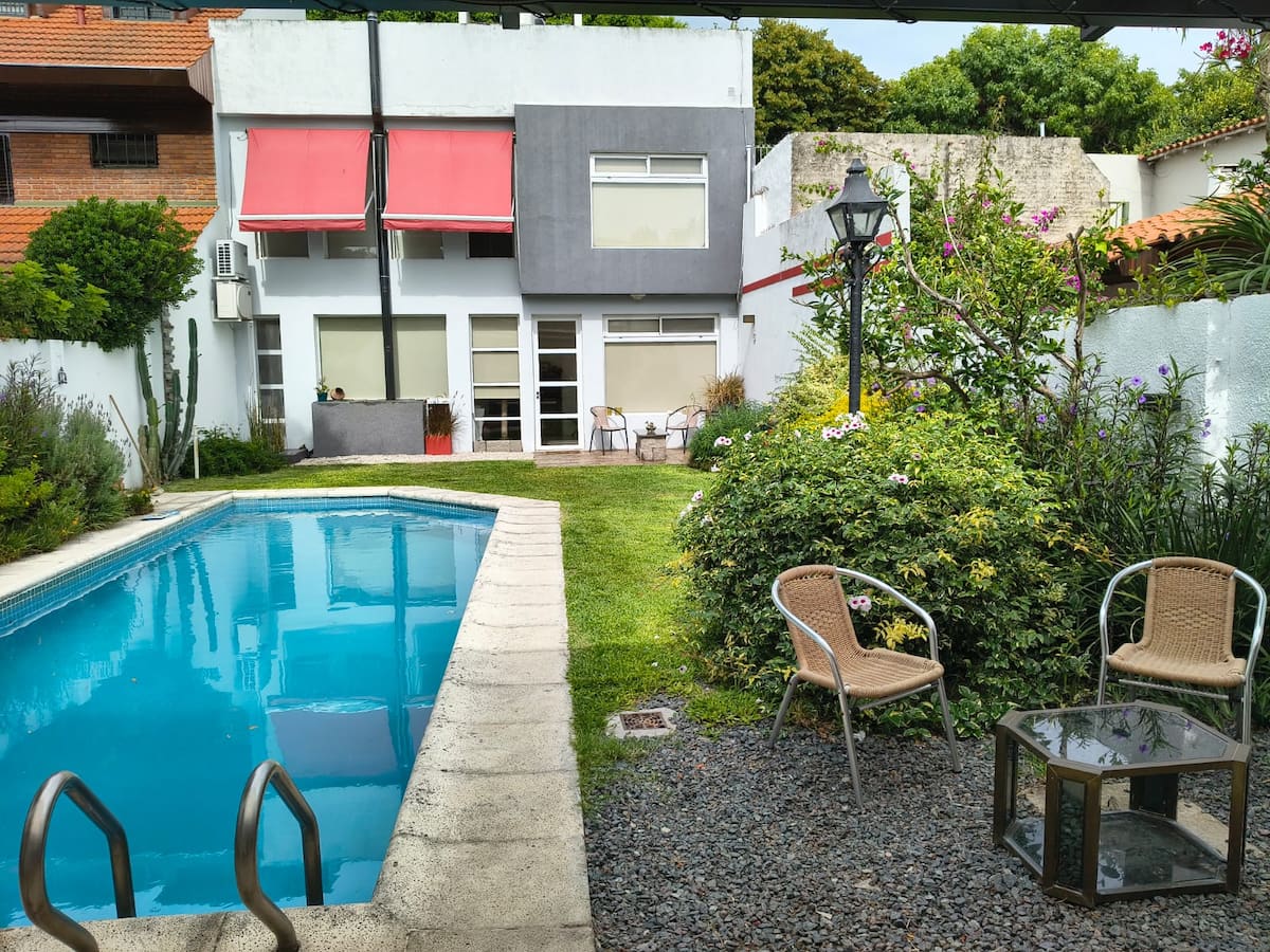 Квартира в La Lucila, в тихом районе Buenos Aires. В доме 3 спальни и просторные комнаты с дневным светом. Есть большой сад с бассейном и зоной гриля. Проживание полностью в распоряжении без общего использования с хозяином или другими гостями.