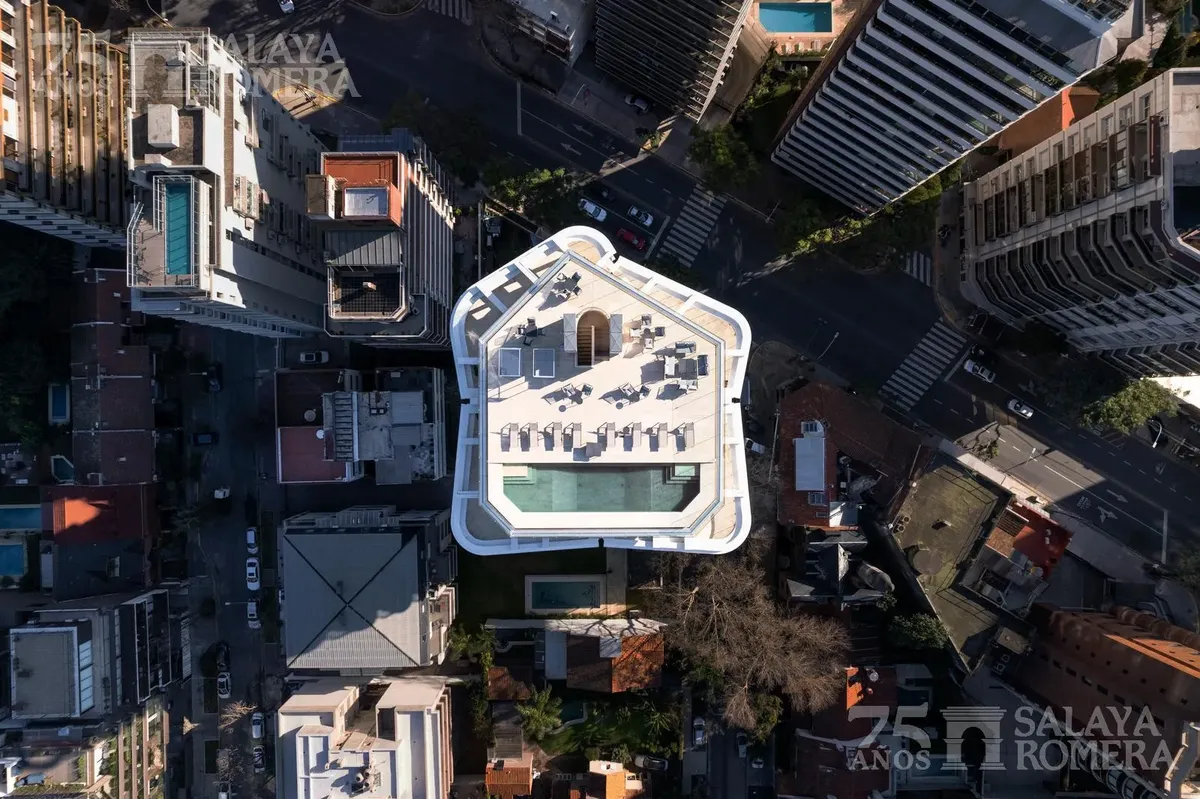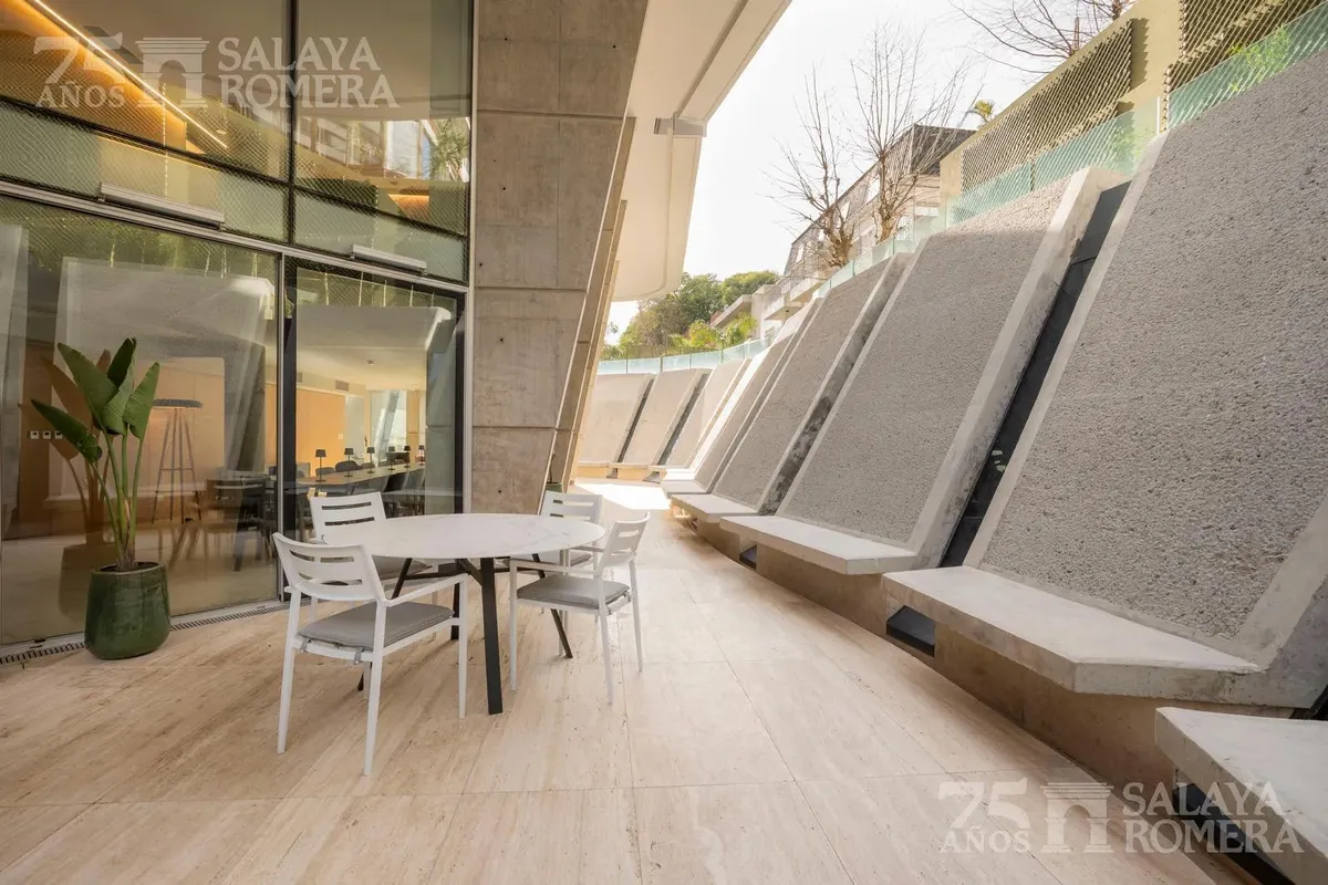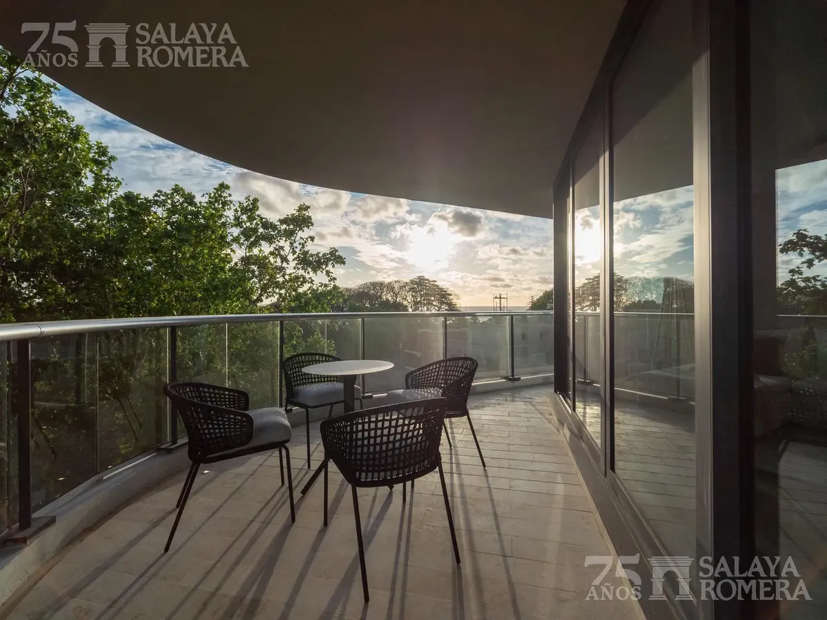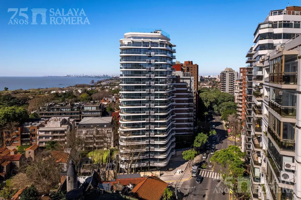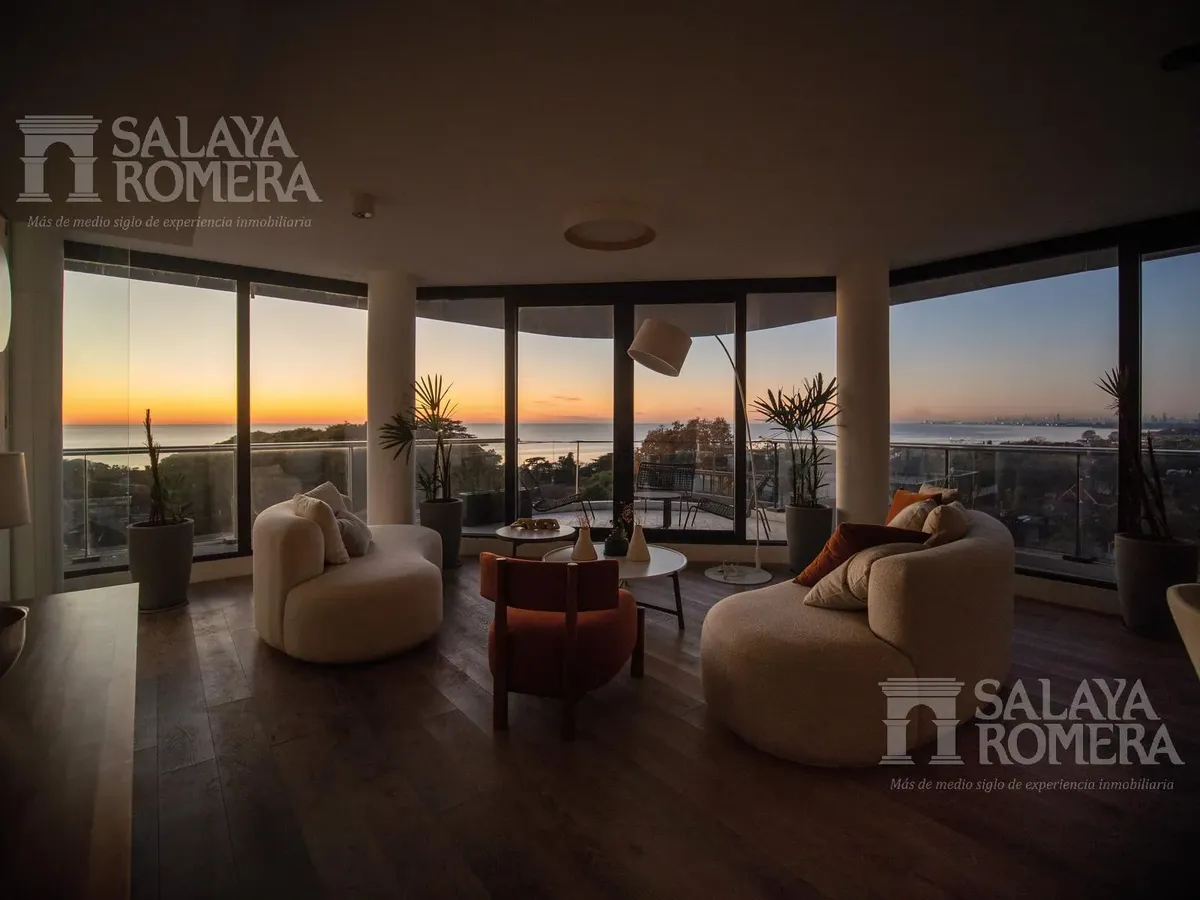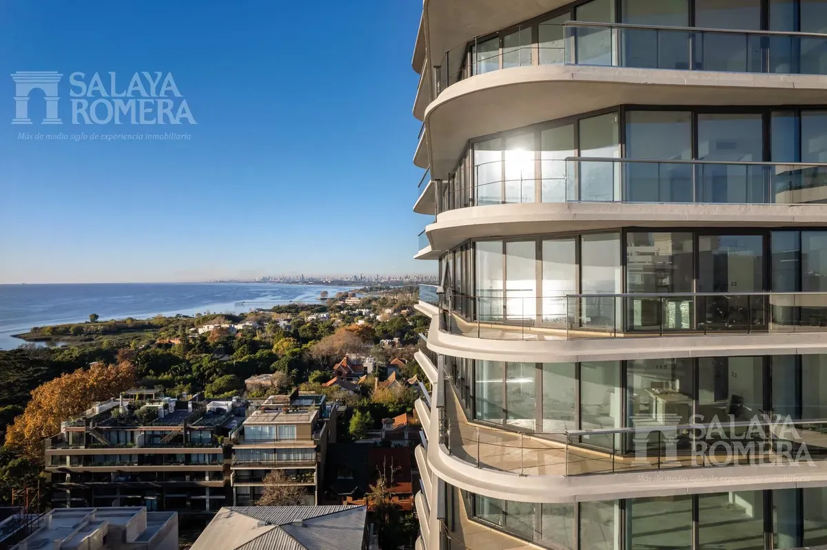 Полуэтажная квартира 5 комнат в La Lucila на высоком этаже, с отдельным лифтовым холлом (palier privado). Окна выходят на Río de la Plata и город. Квартира сдаётся новой (a estrenar), с мебелью для въезда: установлены светильники и шторы. В планировке есть master suite, 2 спальни с собственными ванными комнатами и встроенными шкафами, а также отдельная зависимость с собственным санузлом. Есть две зоны отдельного входа в кухню: отдельная кухня с обеденной зоной, кладовая/прачечная (lavadero) и за
