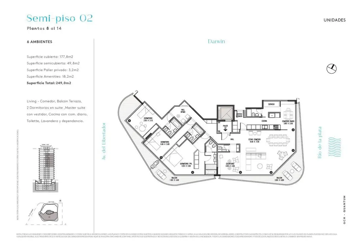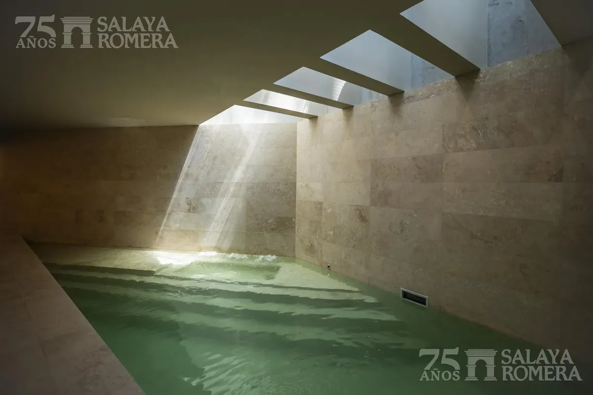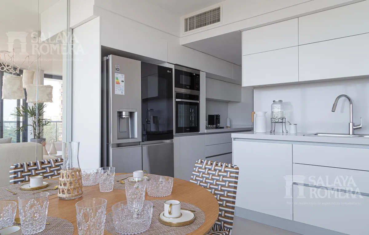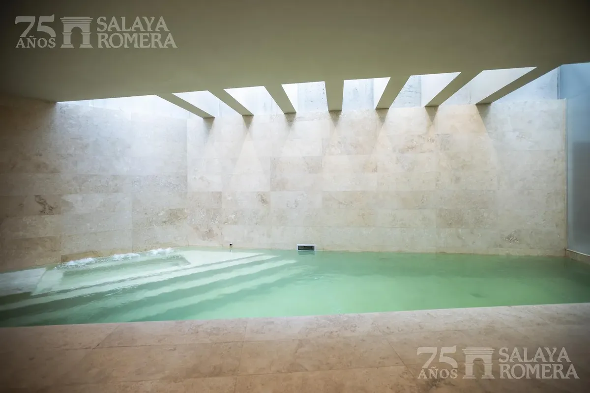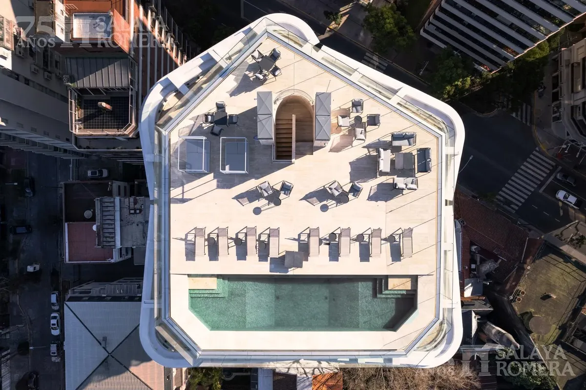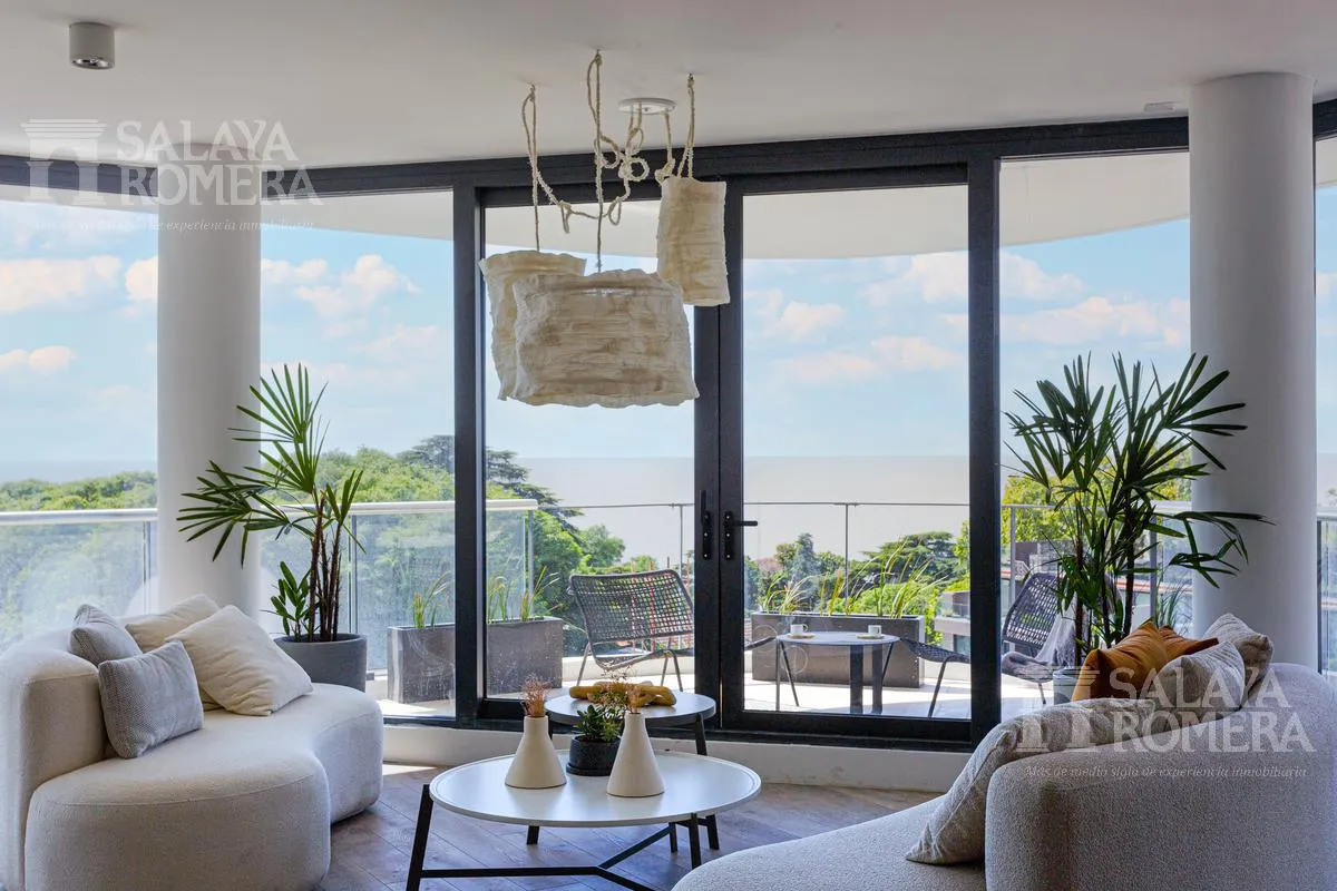 Полуэтажная квартира 5 комнат в La Lucila на высоком этаже, с отдельным лифтовым холлом (palier privado). Окна выходят на Río de la Plata и город. Квартира сдаётся новой (a estrenar), с мебелью для въезда: установлены светильники и шторы. В планировке есть master suite, 2 спальни с собственными ванными комнатами и встроенными шкафами, а также отдельная зависимость с собственным санузлом. Есть две зоны отдельного входа в кухню: отдельная кухня с обеденной зоной, кладовая/прачечная (lavadero) и за
