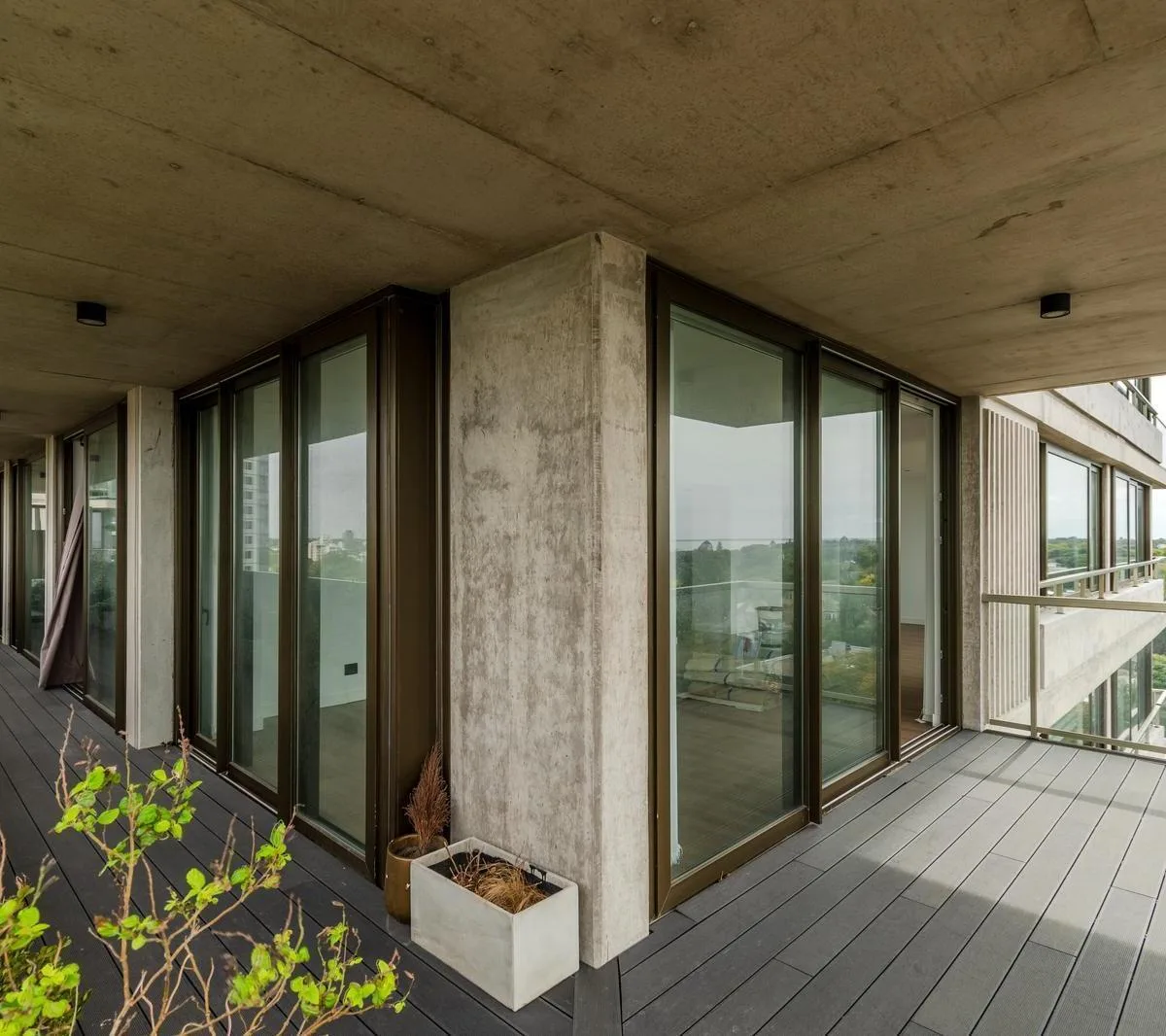 Квартира в La Lucila в здании Barlovento Towers, 3 спальни. Новая (никто не жил), окна на реку: расположение в Восточной башне. Две закреплённые парковки (57 и 58). В квартире гостиная-столовая, гостевой туалет и гардероб для визиторов, кухня с островом и местами для хранения, главная спальня с ванной комнатой и предванной. Ещё две спальни с гардеробами используют общую полную ванную; все помещения выходят на периметральный балкон. Есть зона обслуживания с помещением с отдельной ванной комнатой