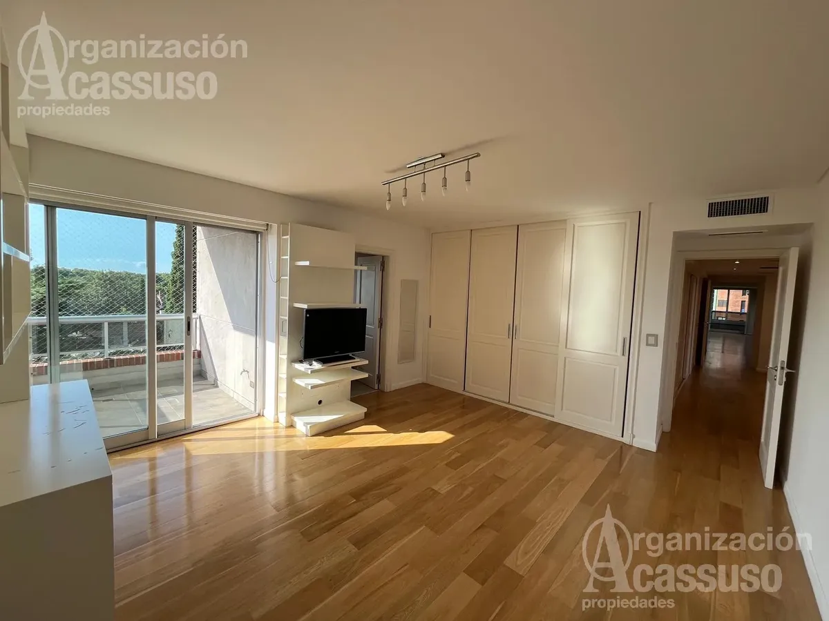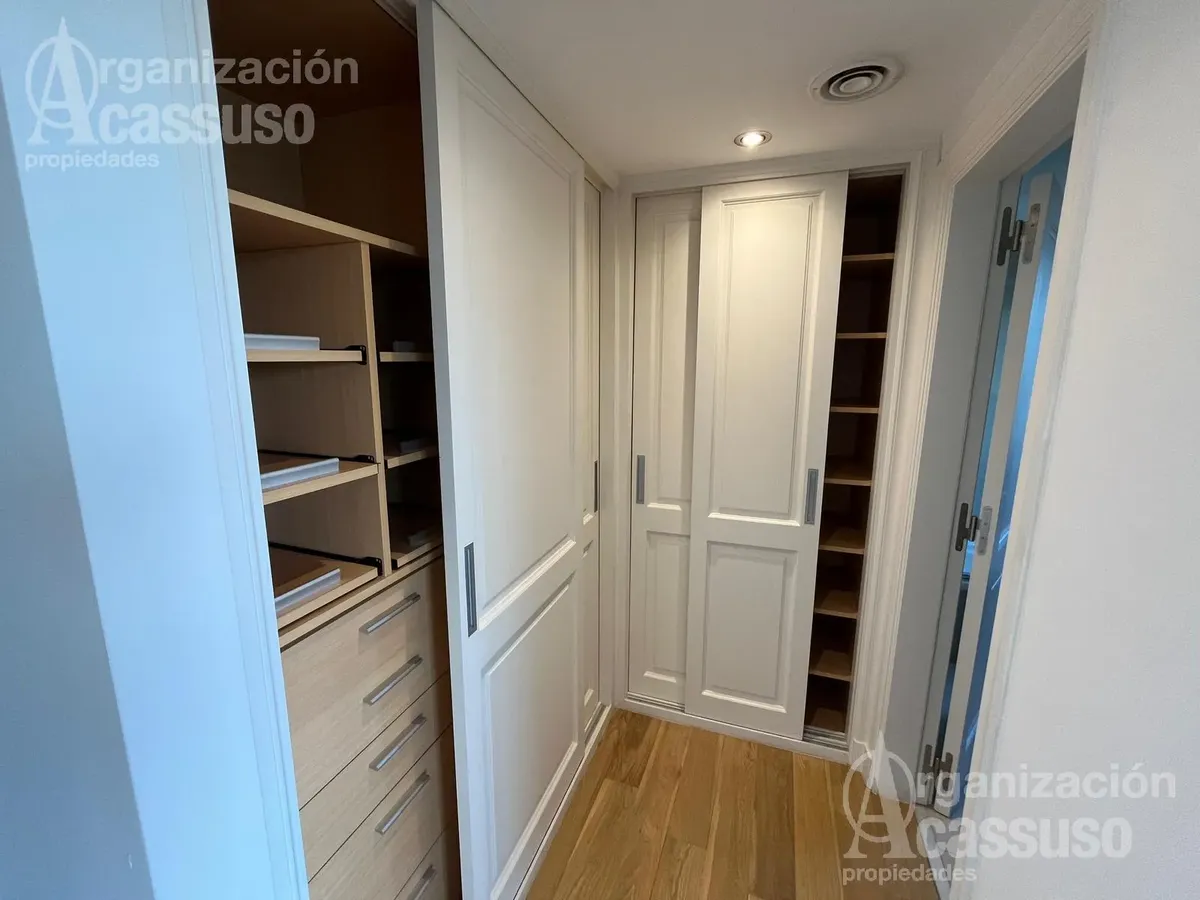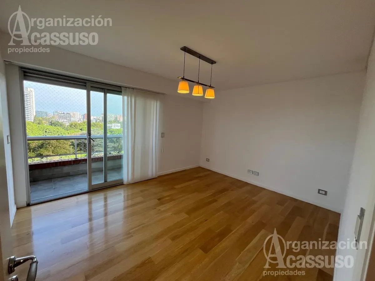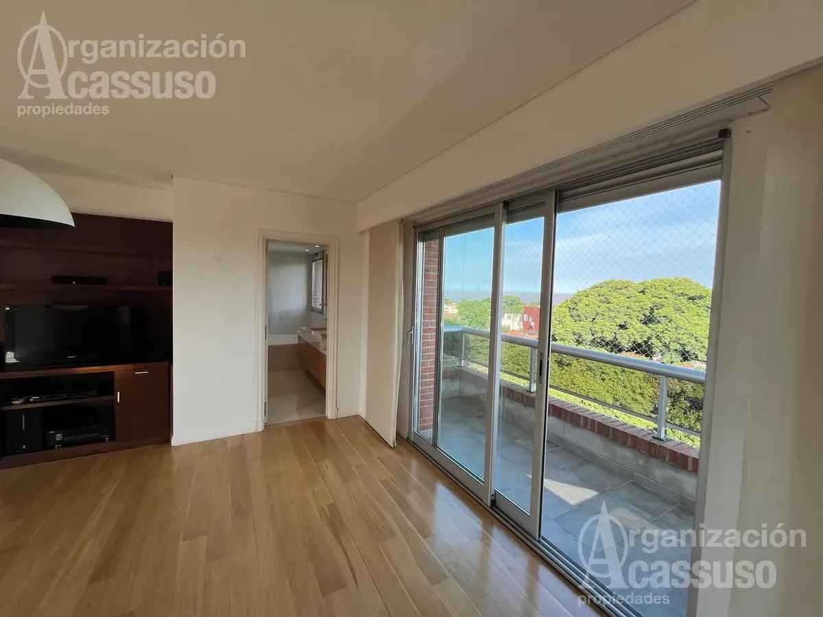 Квартира-студия в Torre Amalfi в Buenos Aires с видом на реку и город. В здании центральное холодоснабжение и отопление, установлены электрические жалюзи и стеклопакеты с двойным герметичным контуром. Есть отдельная прачечная с стиральной машиной, кухня с холодильником и посудомоечной машиной, а также зона для прислуги. Предусмотрены 2 закреплённых крытых парковочных места и 2 кладовые, деревянные полы. В интерьере: туалет, гардероб при входе, гостиная-столовая с зонированием, а также мастер-сью
