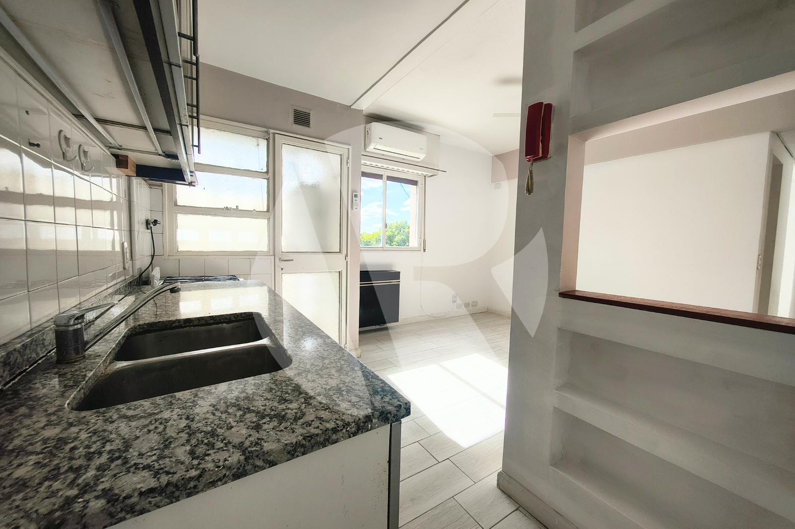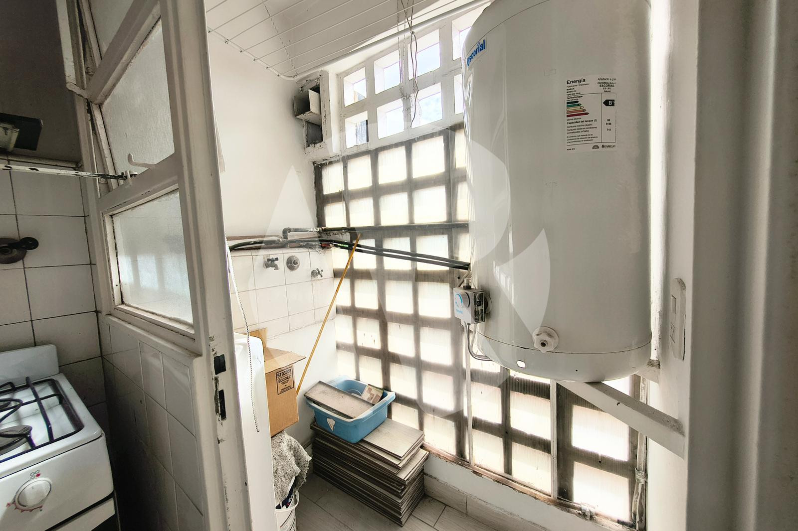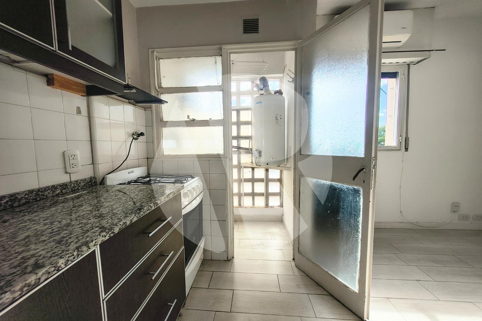 Квартира в Temperley, Lomas de Zamora, из 3 комнат, с парковочным местом на территории. Общая планировка включает гостиную-столовую, кухню с газовой плитой и духовкой, санузел и два спальных/гибких помещения. В кухне установлены верхние и нижние шкафы (alacenas), предусмотрено место под холодильник; из кухни есть выход в отдельную прачечную с естественной вентиляцией, бойлером (termotanque), сушкой сверху (tender) и подключением под стиральную машину. Гостиная оснащена кондиционером и отоплением