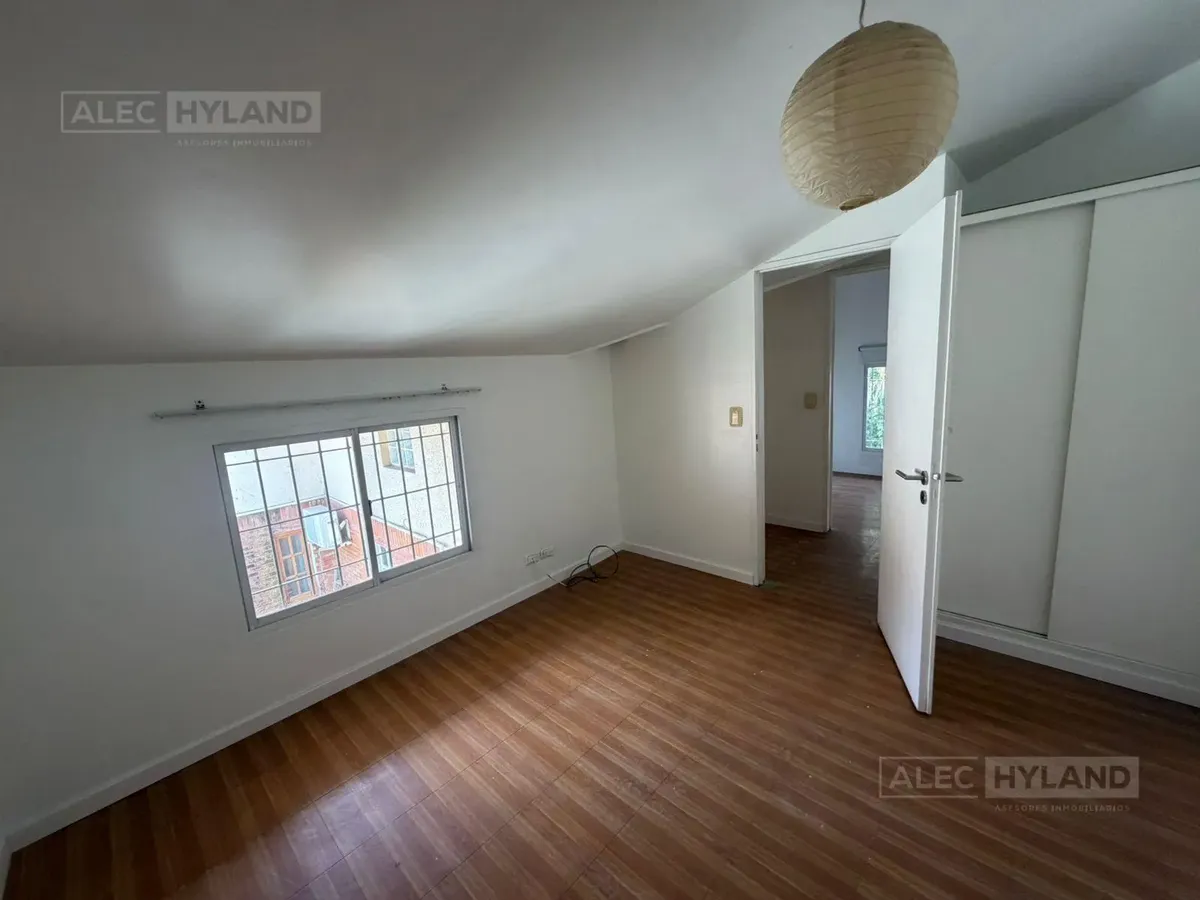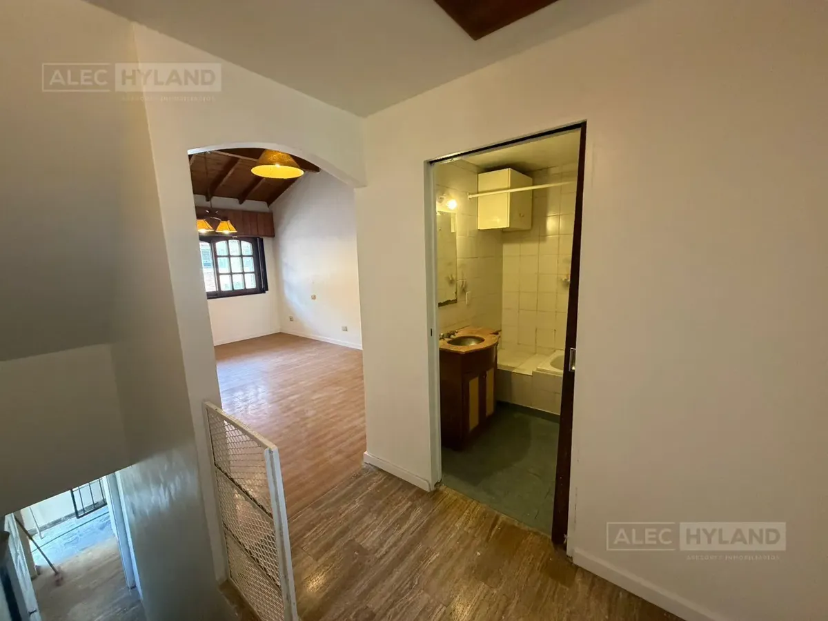 PH в Martínez, в районе San Isidro, на верхнем этаже. Вход общий; квартира расположена в глубине участка и на верхнем уровне, 1-й этаж по лестнице. Планировка включает гостиную-столовую, 3 спальни или 2 спальни и кабинет. Кухня с местом для дневных приёмов пищи. Коммунальный налог ABL указан как $65.000 (март 2026).