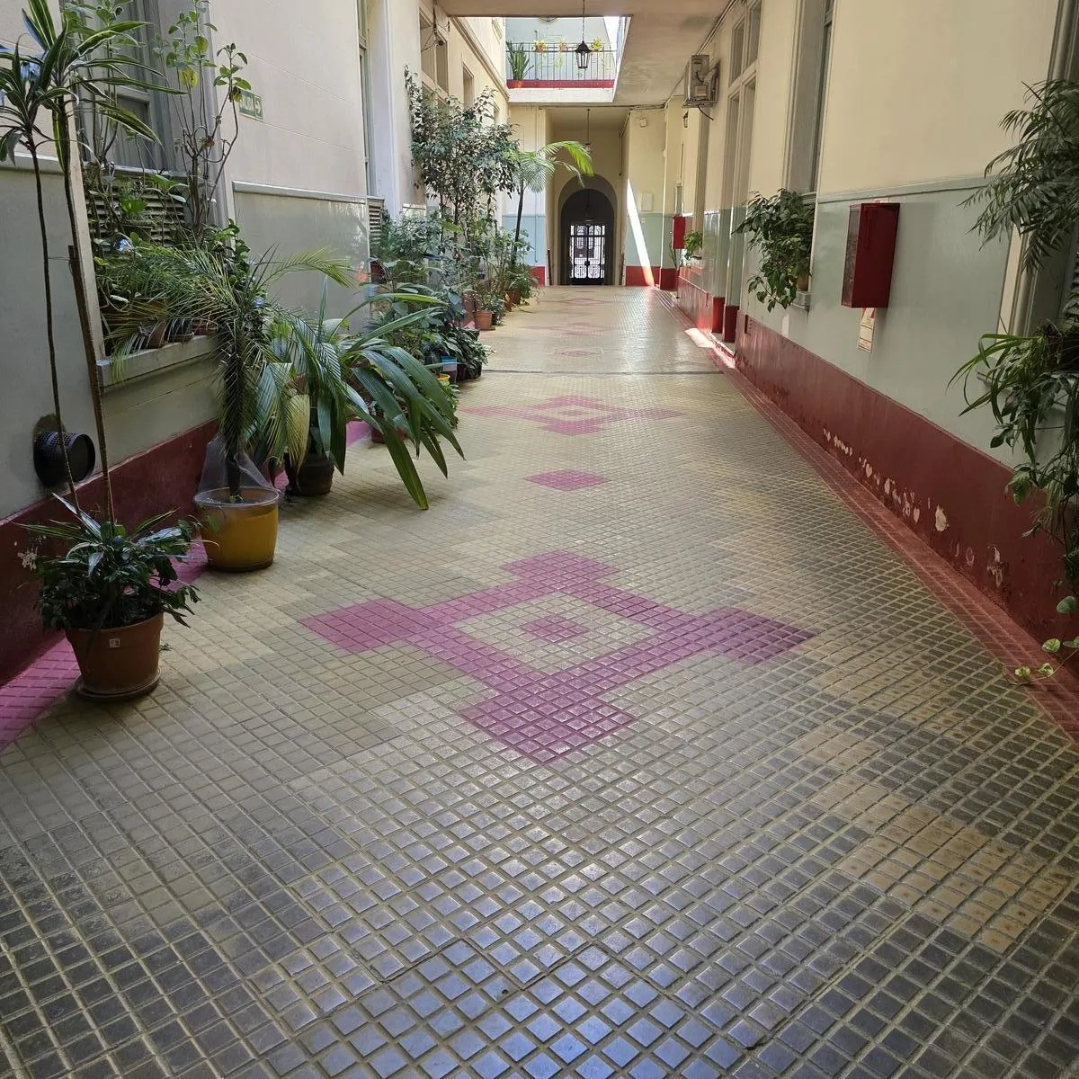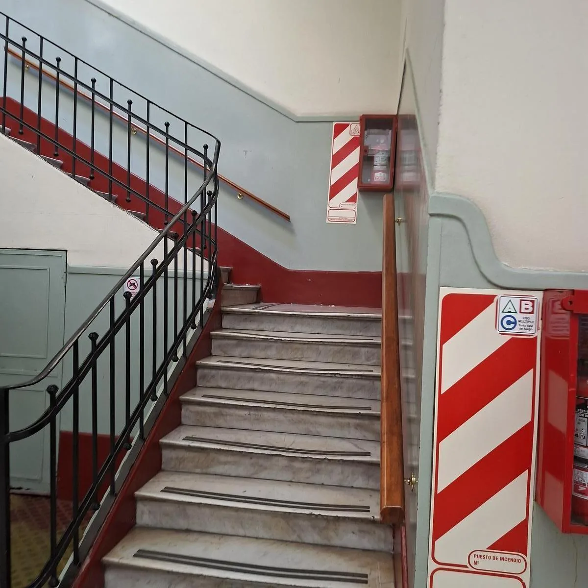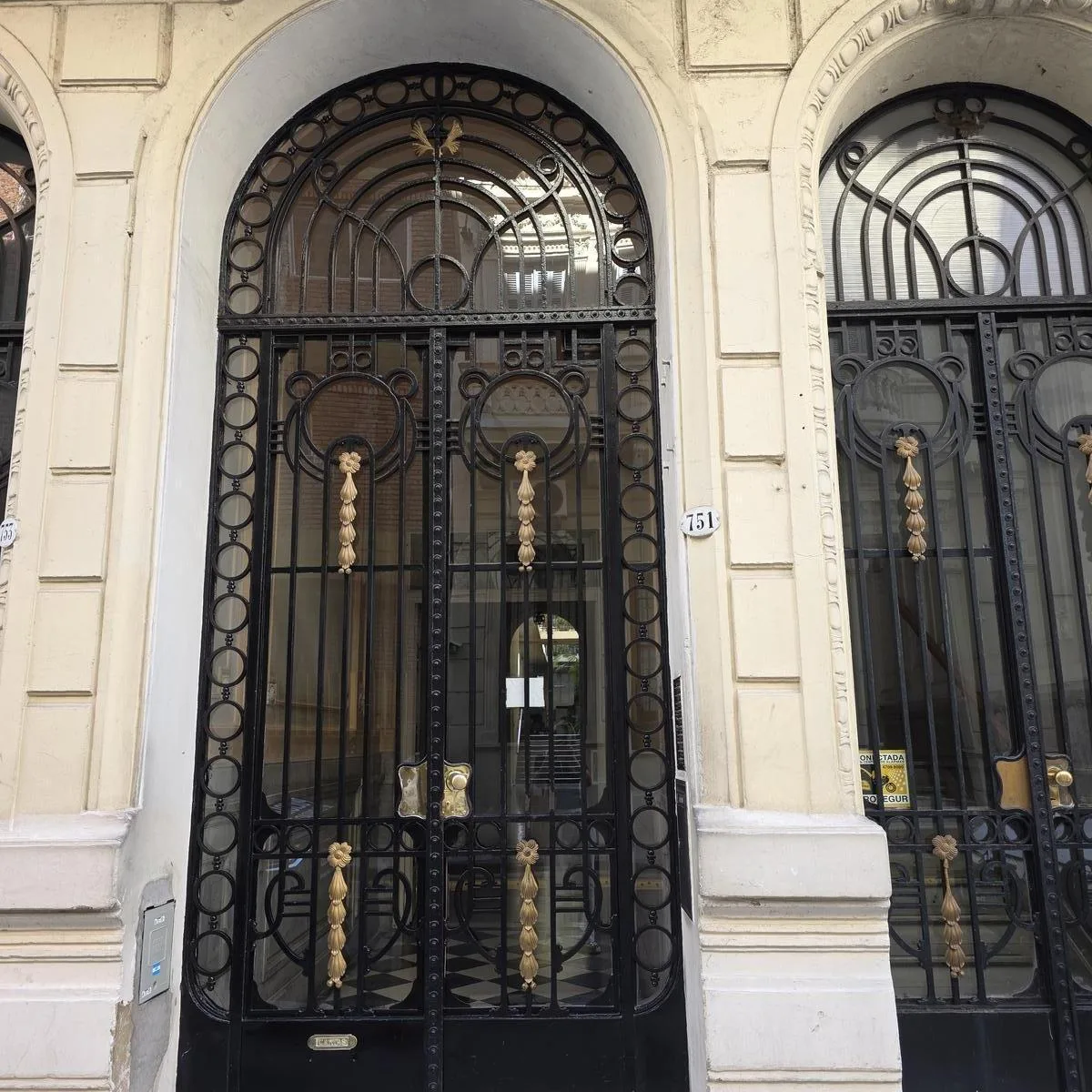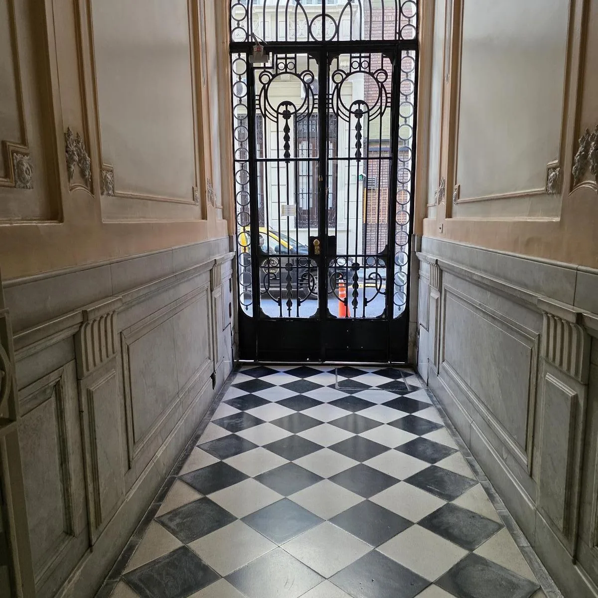 PH в Monserrat, 4 ambientes, на 1-м этаже без лифта. Окна во двор, с застеклённой галереей. В планировке 3 спальни, совмещённая гостиная и столовая, отдельная кухня и полноценная ванная. Есть чердак (guardilla). По данным объявления, Aysa включена в коммунальные платежи здания, животных не допускают, доступ к квартире описан как неудовлетворительный (no accesible).