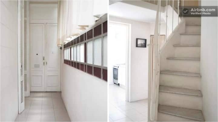 Лофт в Recoleta рассчитан на 6 человек. 3 спальни, основная — с ванной комнатой (en suite), есть рабочий стол. Квартира после недавнего ремонта с сохранением оригинальных элементов: двухсветное пространство, паркет, окна и витражи.
