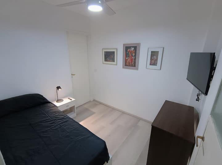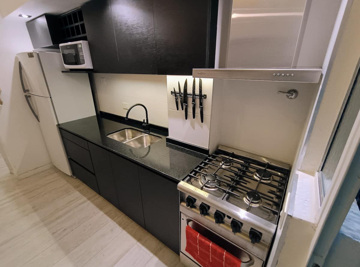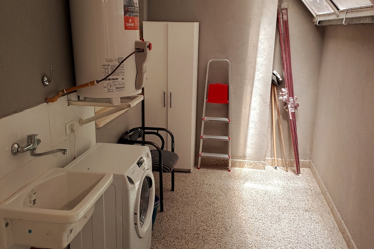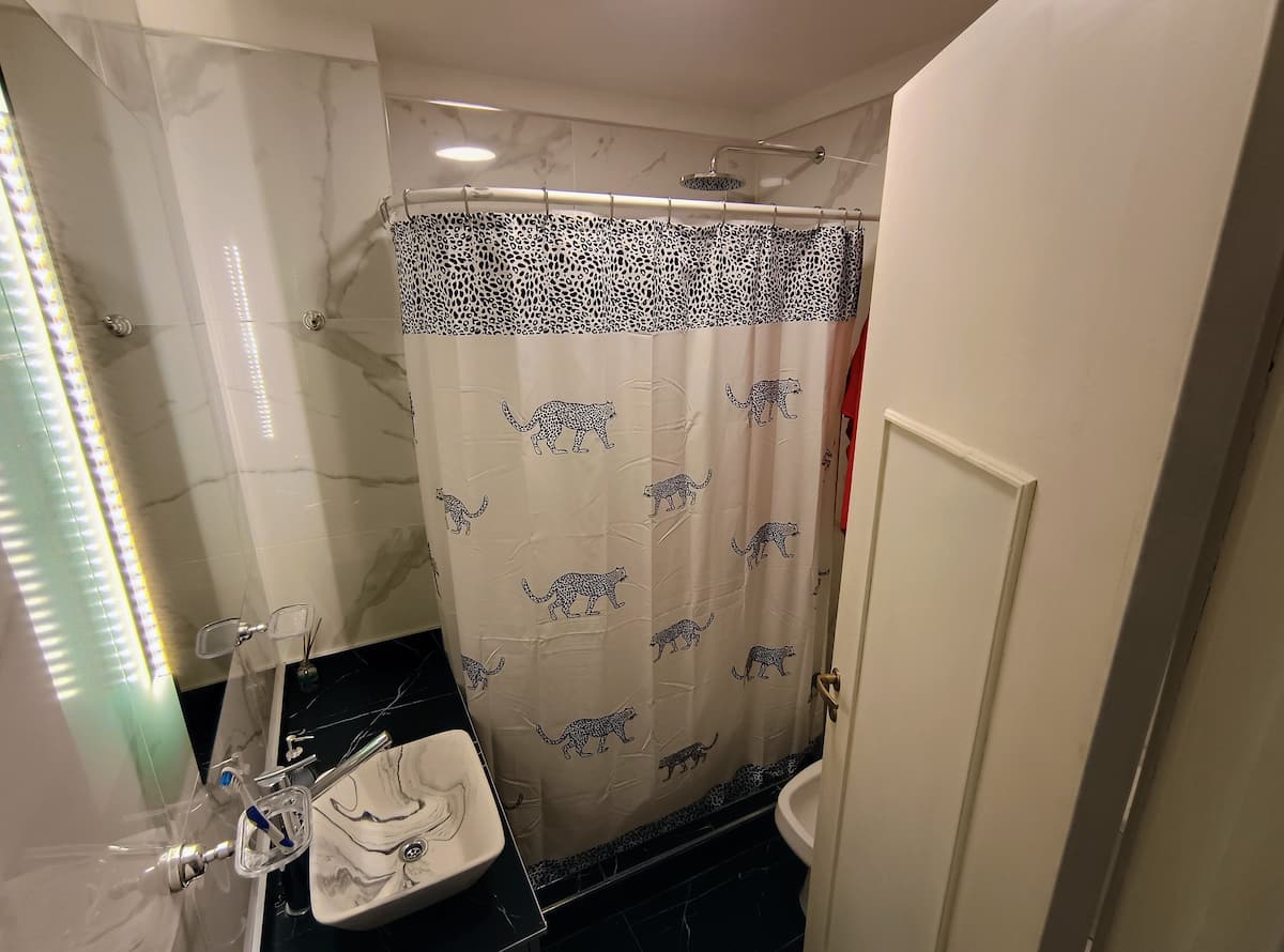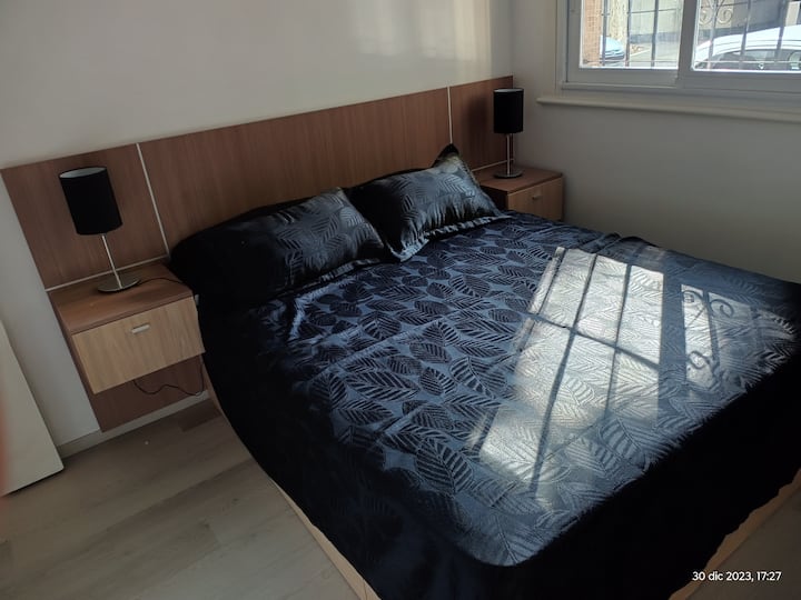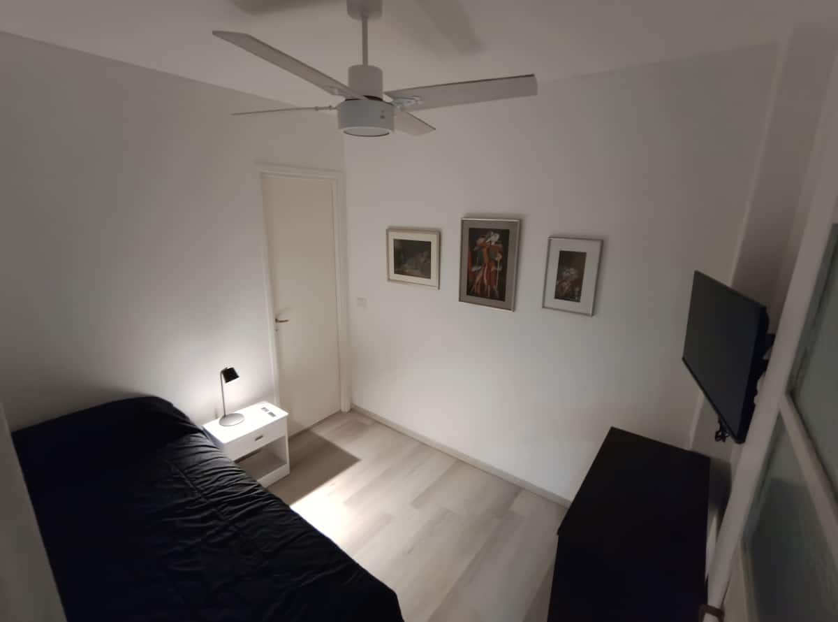 Квартира с 4 комнатами расположена на первом этаже 8-этажного здания после полной реконструкции. В гостиной установлен обеденный стол на 6 человек, телевизор с диагональю 43 дюйма, кресло и журнальный столик. В квартире 3 спальни: в главной спальне двуспальная кровать, в другой — двухъярусная кровать, в спальне в глубине помещения — односпальная кровать; во всех спальнях есть телевизор, в спальне в глубине есть ванная комната. Кухня оборудована для приготовления пищи, предусмотрена барная стойка