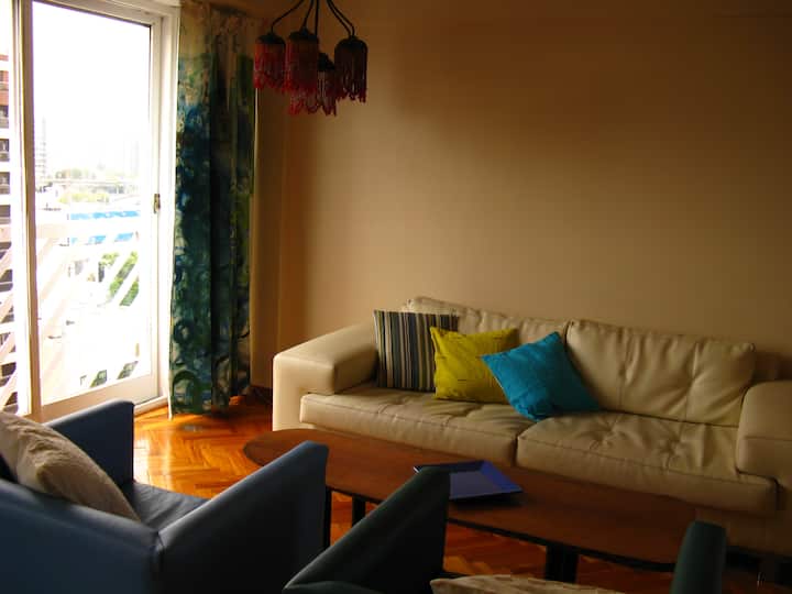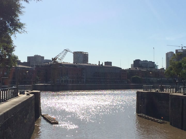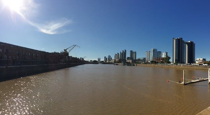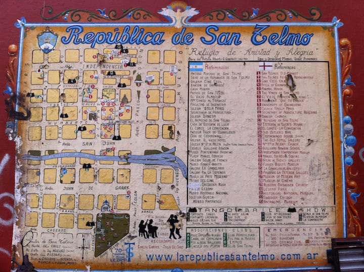 Квартира в Сан-Тельмо площадью 110 m² на 11-м этаже с окнами на городскую панораму. Три спальни, большая гостиная и зона столовой, одна ванная комната и два дополнительных WC. Квартира находится в 2 минутах пешком от Plaza Dorrego и примерно в 10 минутах пешком от Puerto Madero.