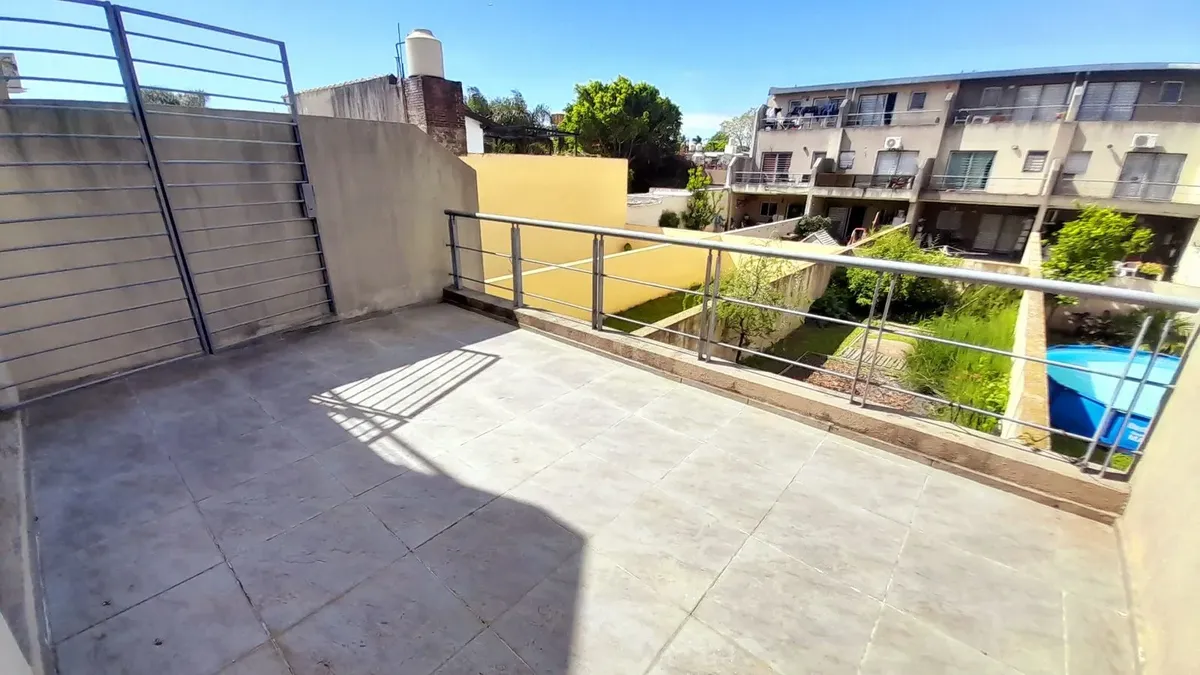 Двухуровневая квартира в Villa Adelina, 5 комнат: 3 спальни, центральное отопление (радиантная плита). На первом уровне предусмотрены двойное (закреплённое) парковочное место, просторная гостиная-столовая, туалет, интегрированная полностью оборудованная кухня с барной стойкой и выходом в галерею, а также сад 5 x 20 m². На втором уровне: холл, 3 спальни со встроенными шкафами, главная спальня с ванной в suite, гардеробной и выходом на балкон-террасу с видом во двор; ещё одна ванная с гидромассаже