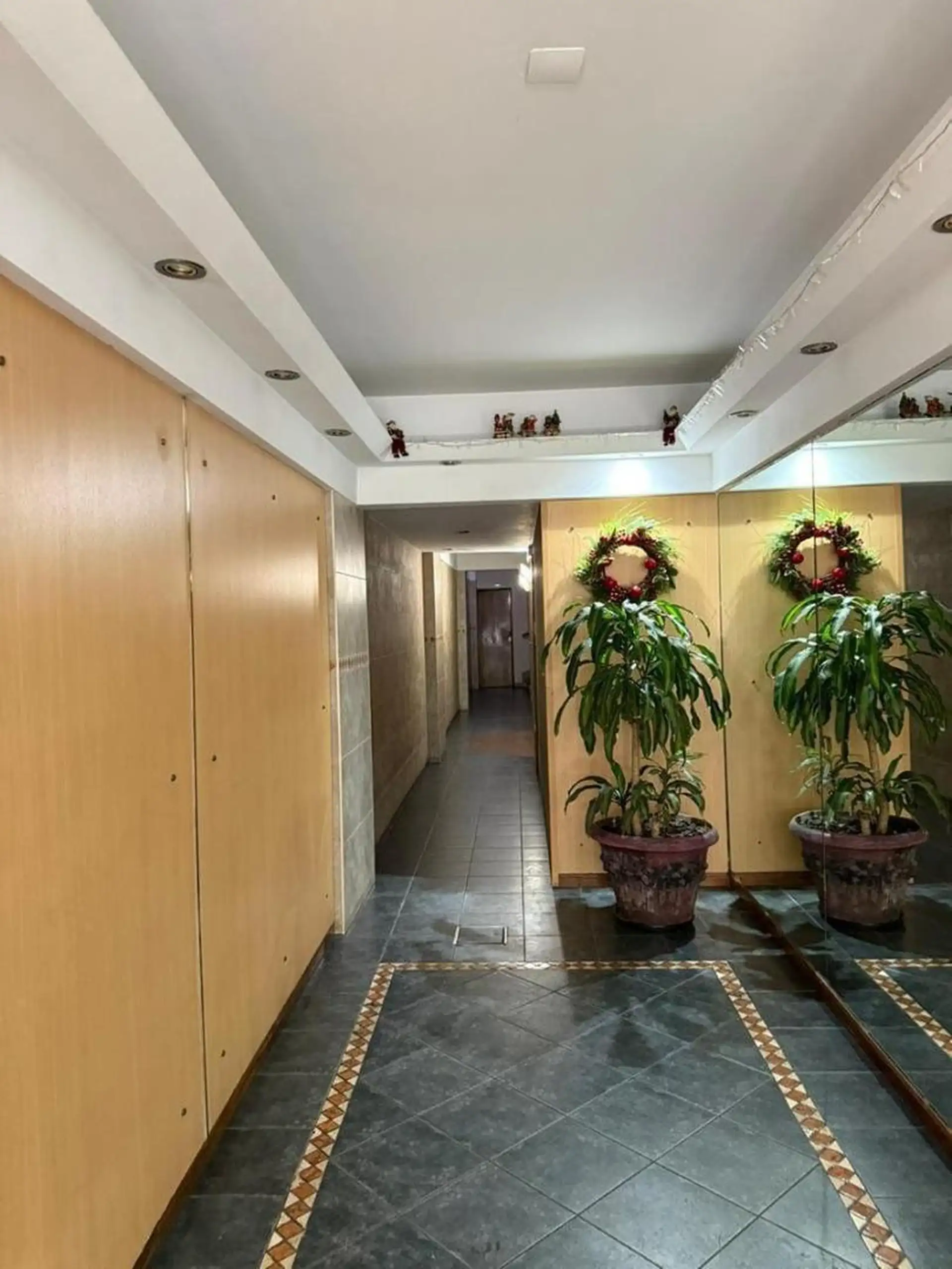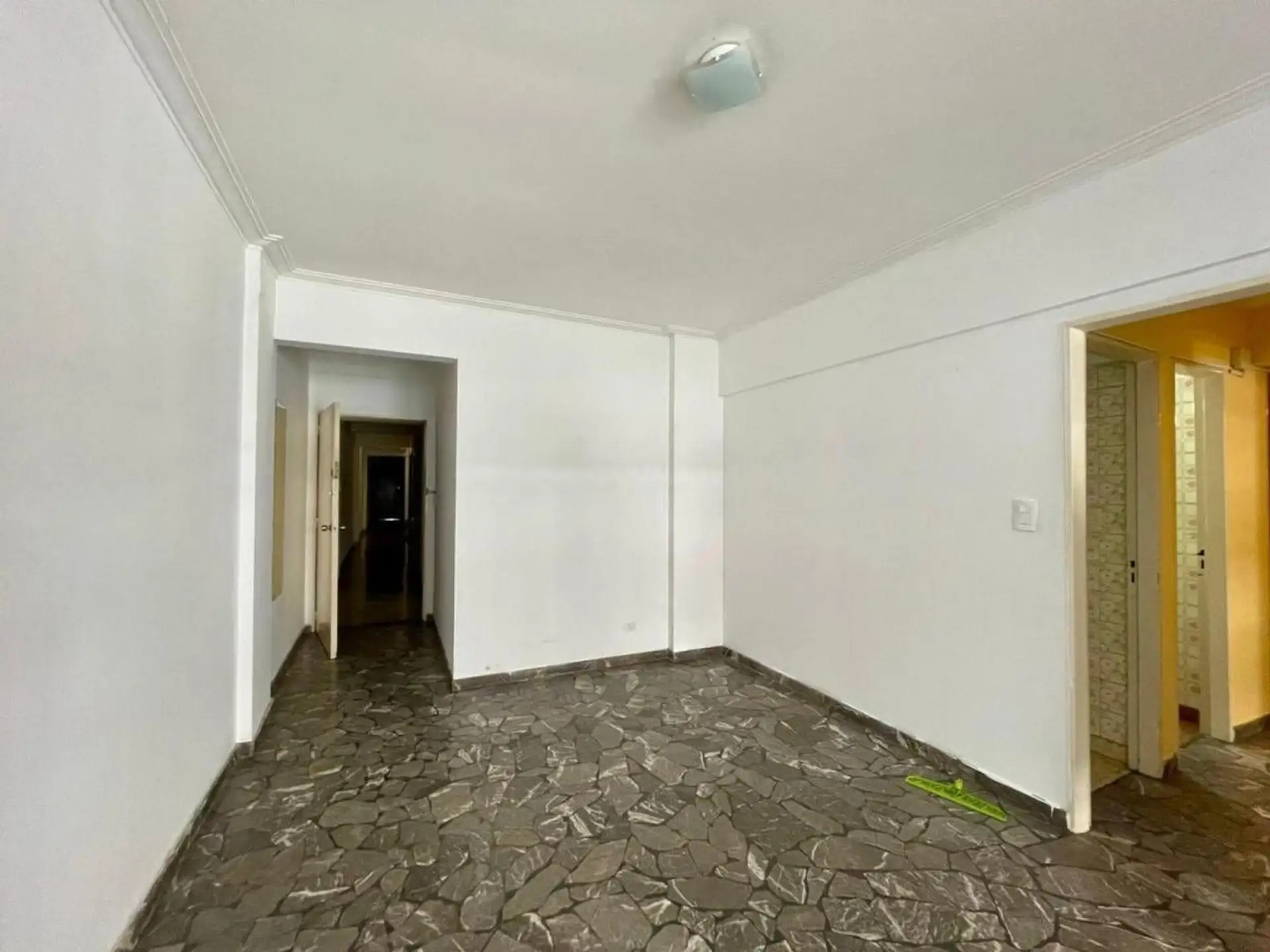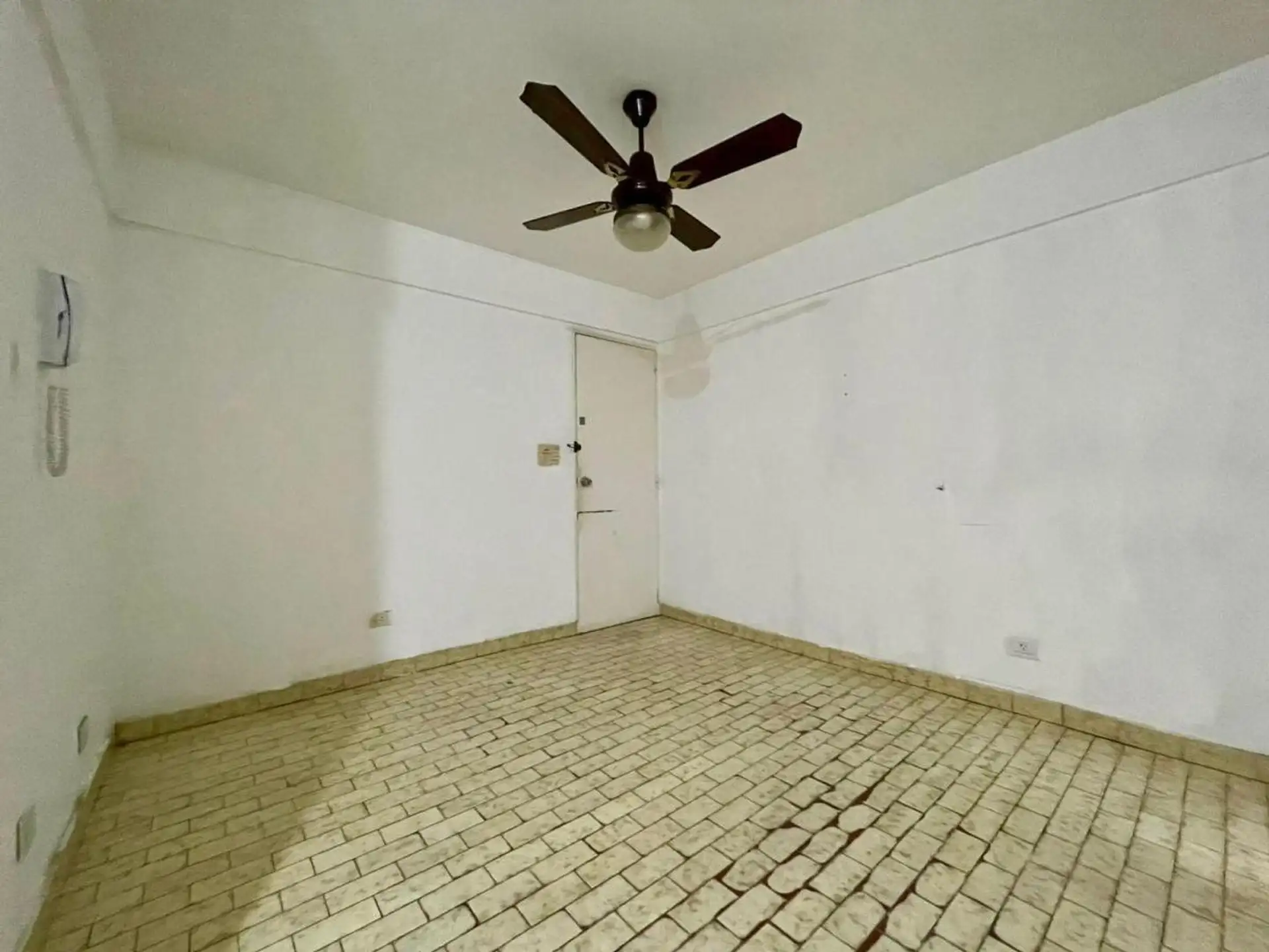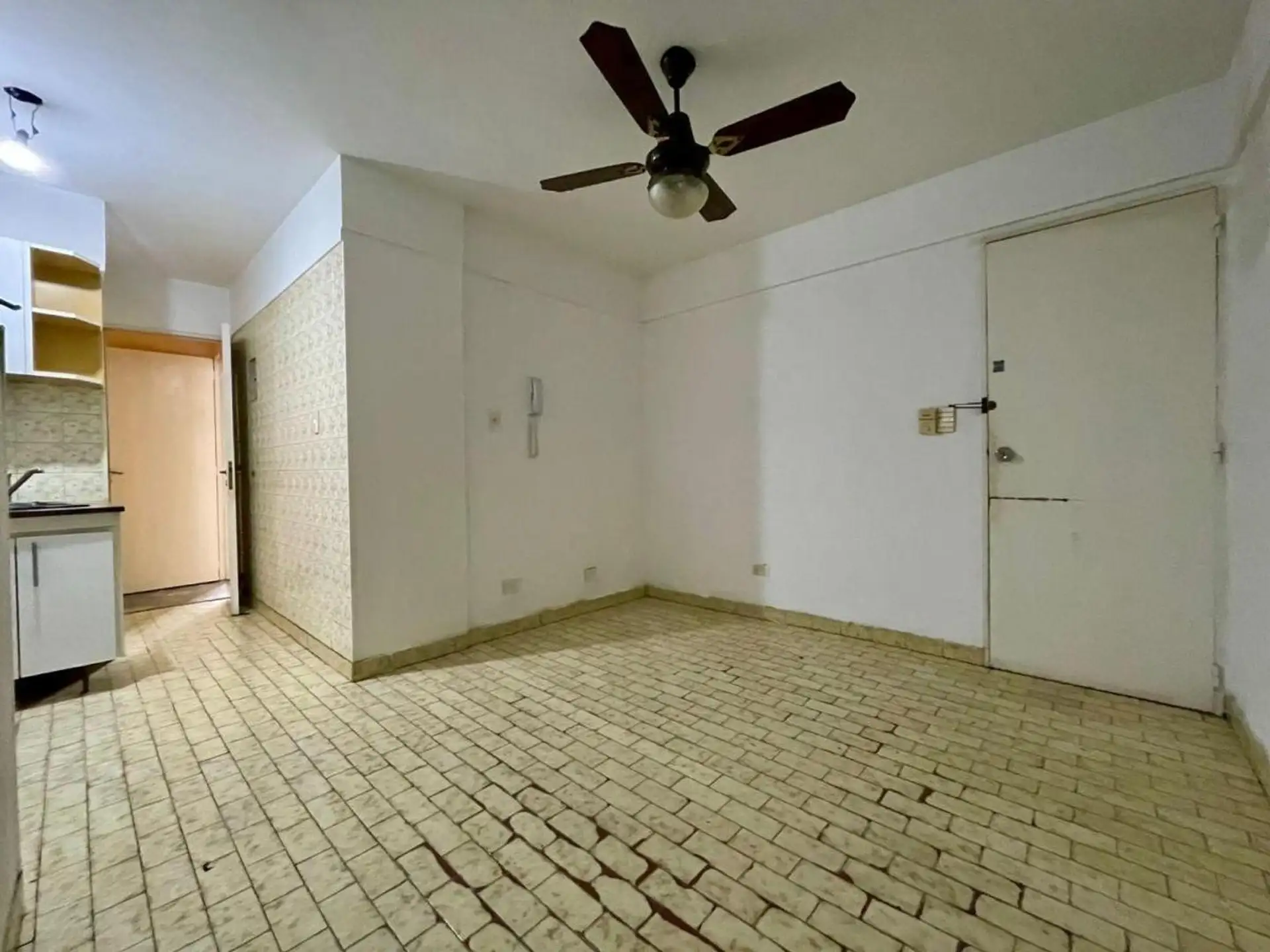 Квартира с 4 комнатами, 3 спальнями, площадью и составом помещений указана как 4 ambientes + dependencia, с закреплённым (fija) крытым парковочным местом. 3-й этаж, окна на улицу (al frente), с балконом (balcón corrido). Две входные группы: основная и служебная. В квартире есть гостиная-столовая с выходом на балкон, отдельная кухня с дневной столовой, 3 спальни со встроенными шкафами, полностью оборудованная ванная с естественной вентиляцией и туалет, а также просторная служебная комната (depend