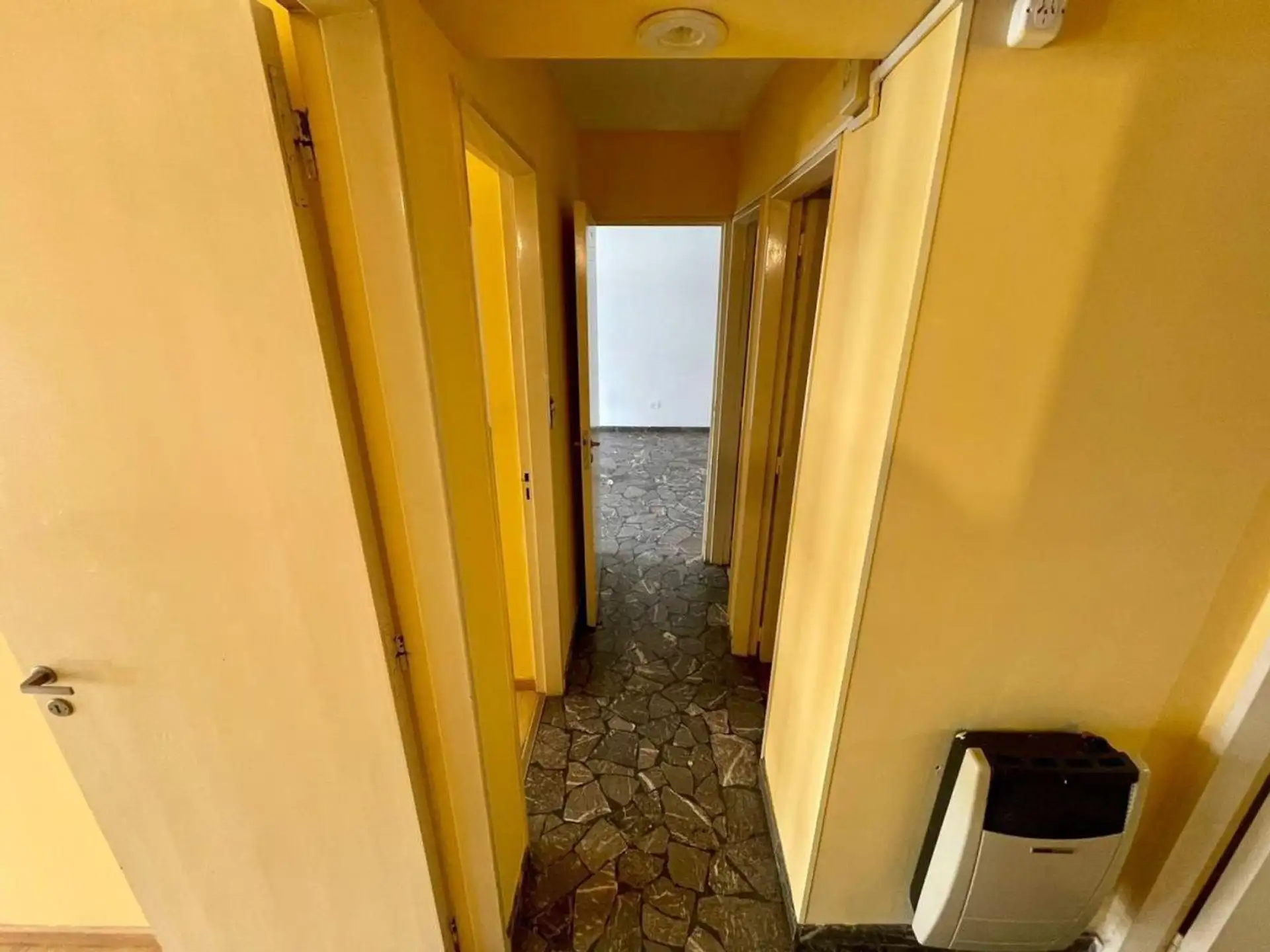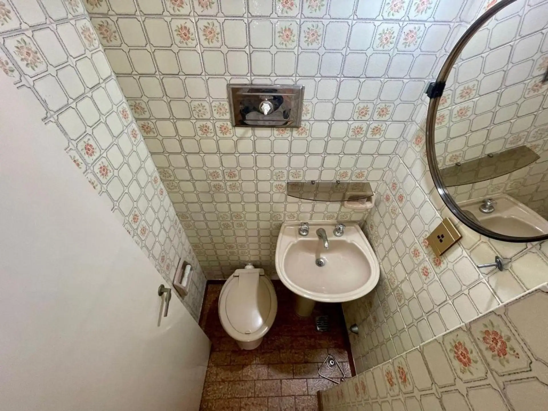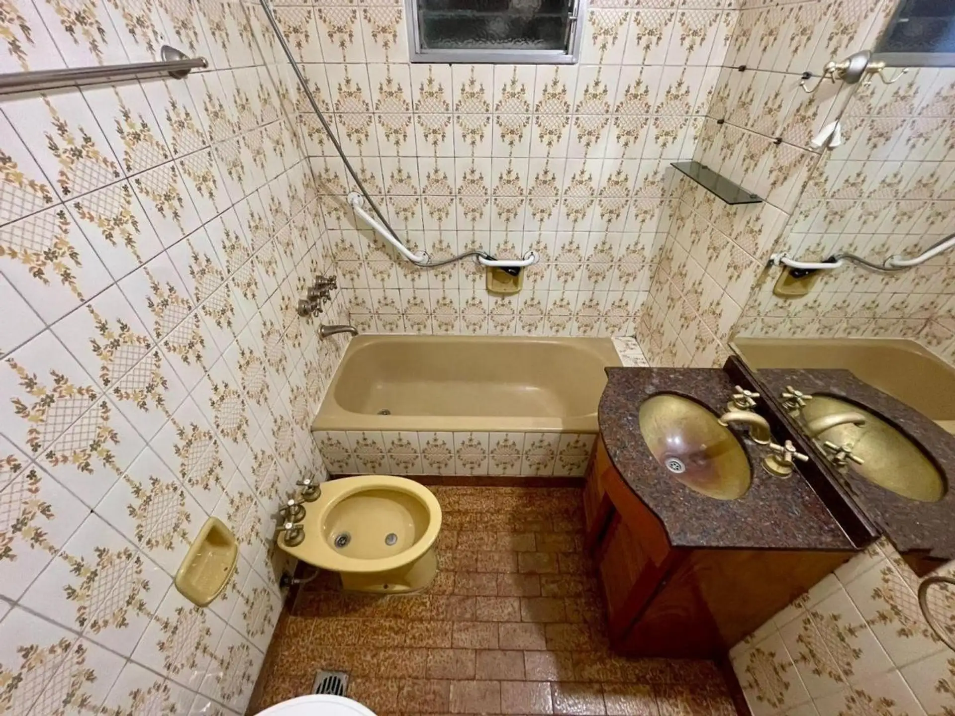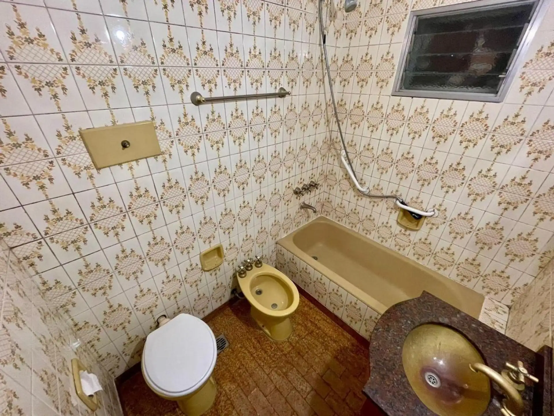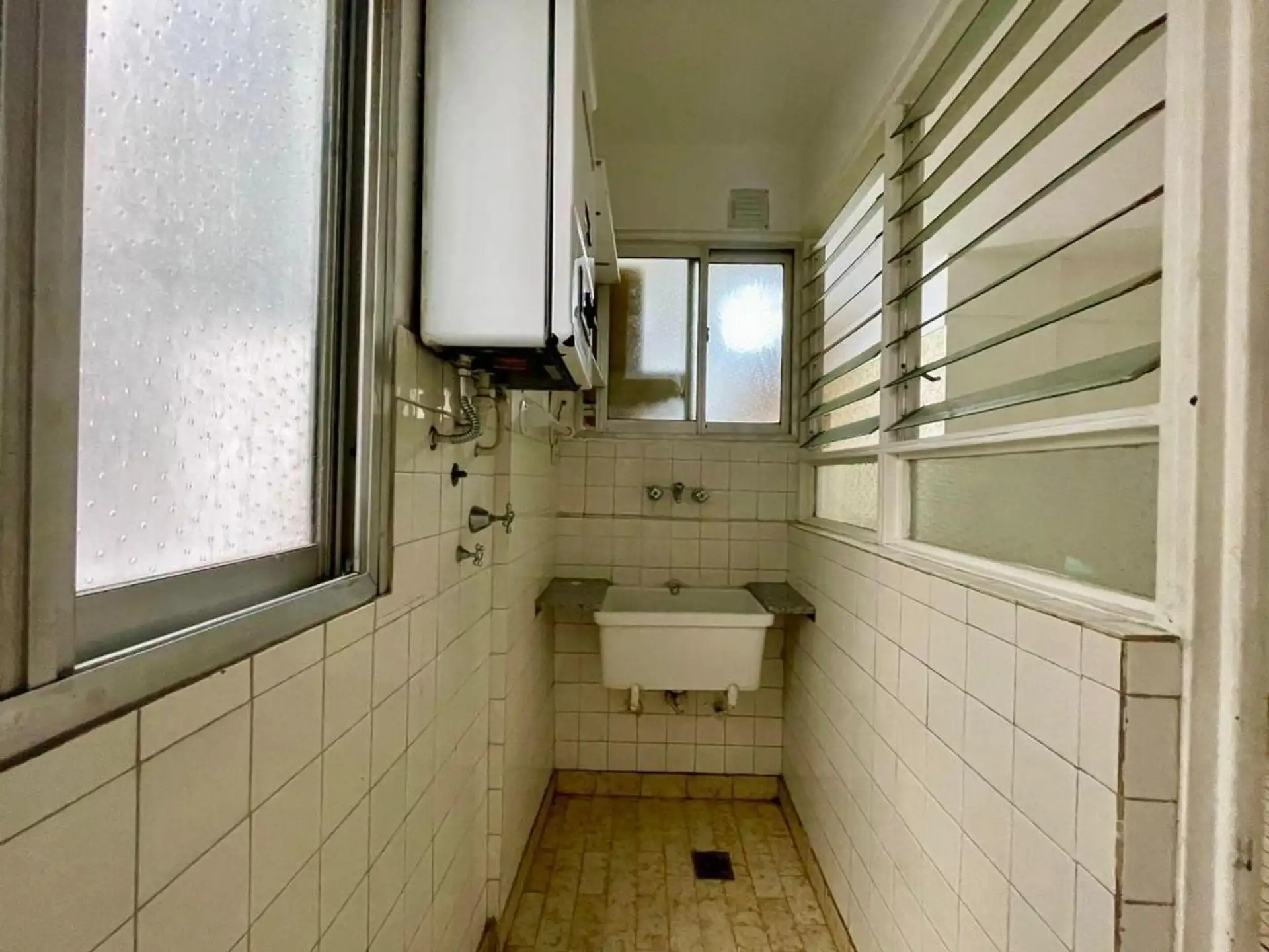 Квартира с 4 комнатами, 3 спальнями, площадью и составом помещений указана как 4 ambientes + dependencia, с закреплённым (fija) крытым парковочным местом. 3-й этаж, окна на улицу (al frente), с балконом (balcón corrido). Две входные группы: основная и служебная. В квартире есть гостиная-столовая с выходом на балкон, отдельная кухня с дневной столовой, 3 спальни со встроенными шкафами, полностью оборудованная ванная с естественной вентиляцией и туалет, а также просторная служебная комната (depend