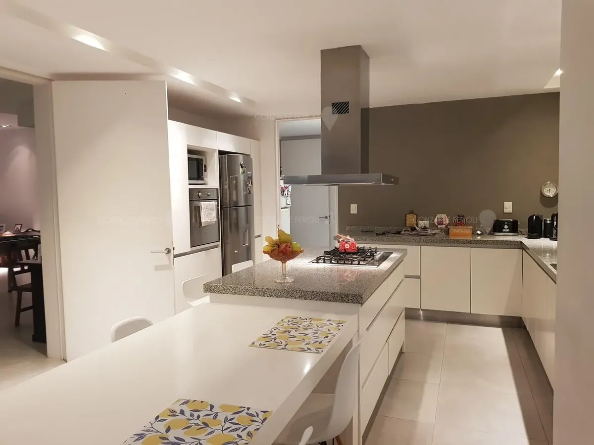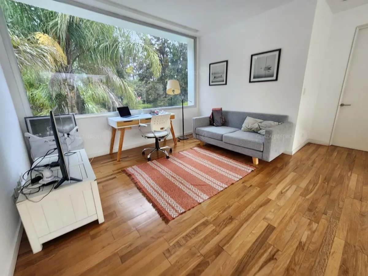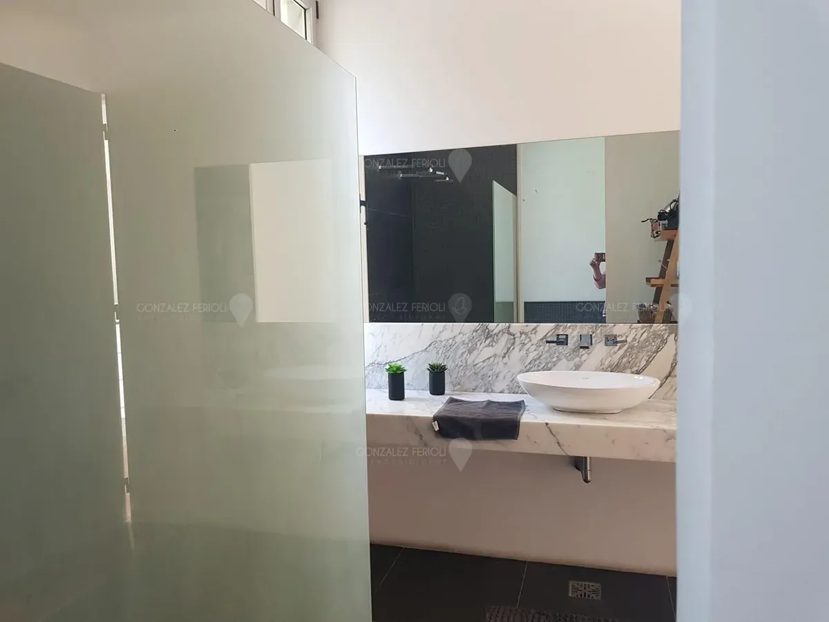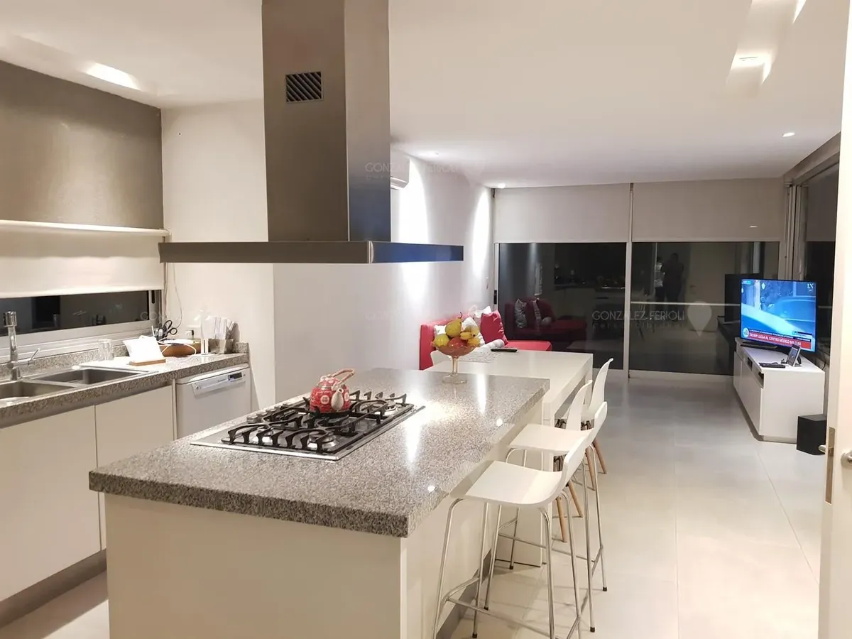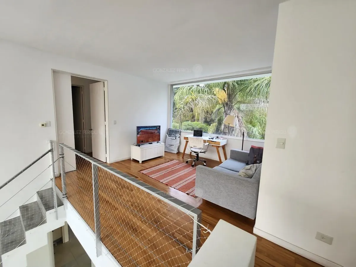 Современный дом рационалистического стиля на двух этажах в El Encuentro, General Pacheco. На первом этаже: гостиная-столовая с камином и большими окнами с видом на сад, гостевой туалет, просторная кухня с дневным обеденным местом, служебная комната с ванной, отдельная прачечная. Из гостиной выход на большую крытую галерею с зоной гриля, в доме есть паркованый сад с бассейном. На втором этаже расположены 3 спальни: главная с ванной комнатой и гардеробной, две дополнительные спальни, общая ванная