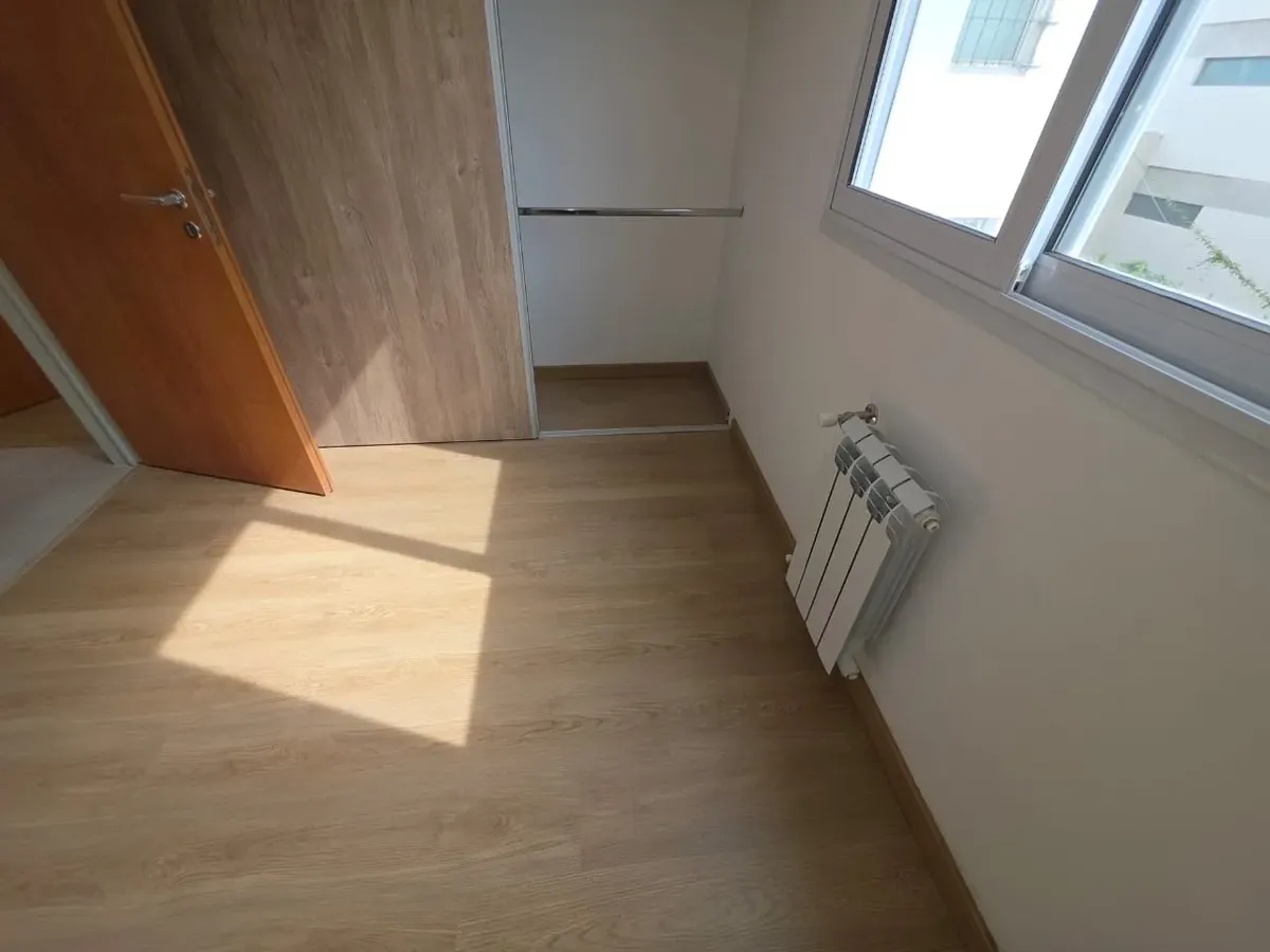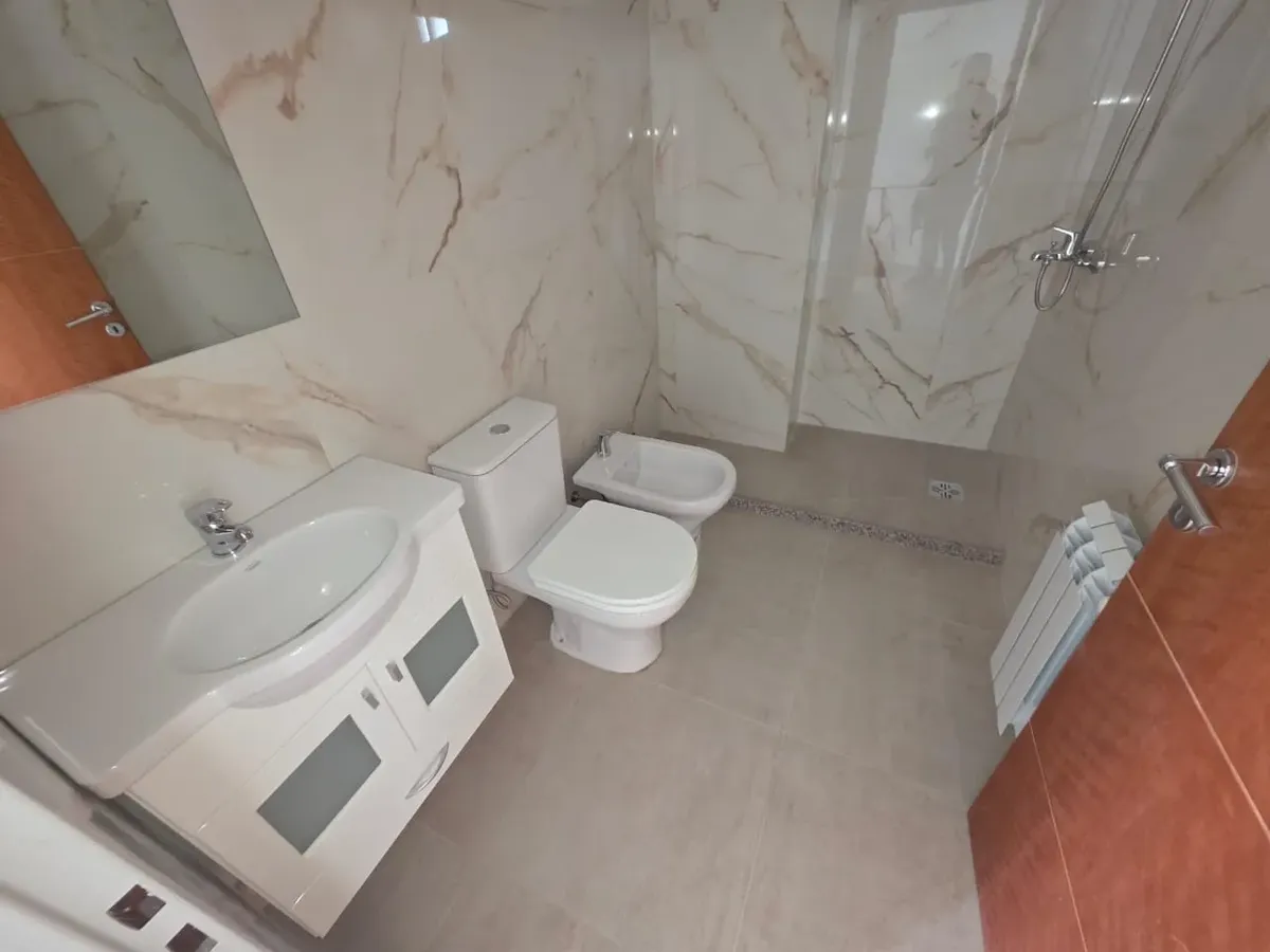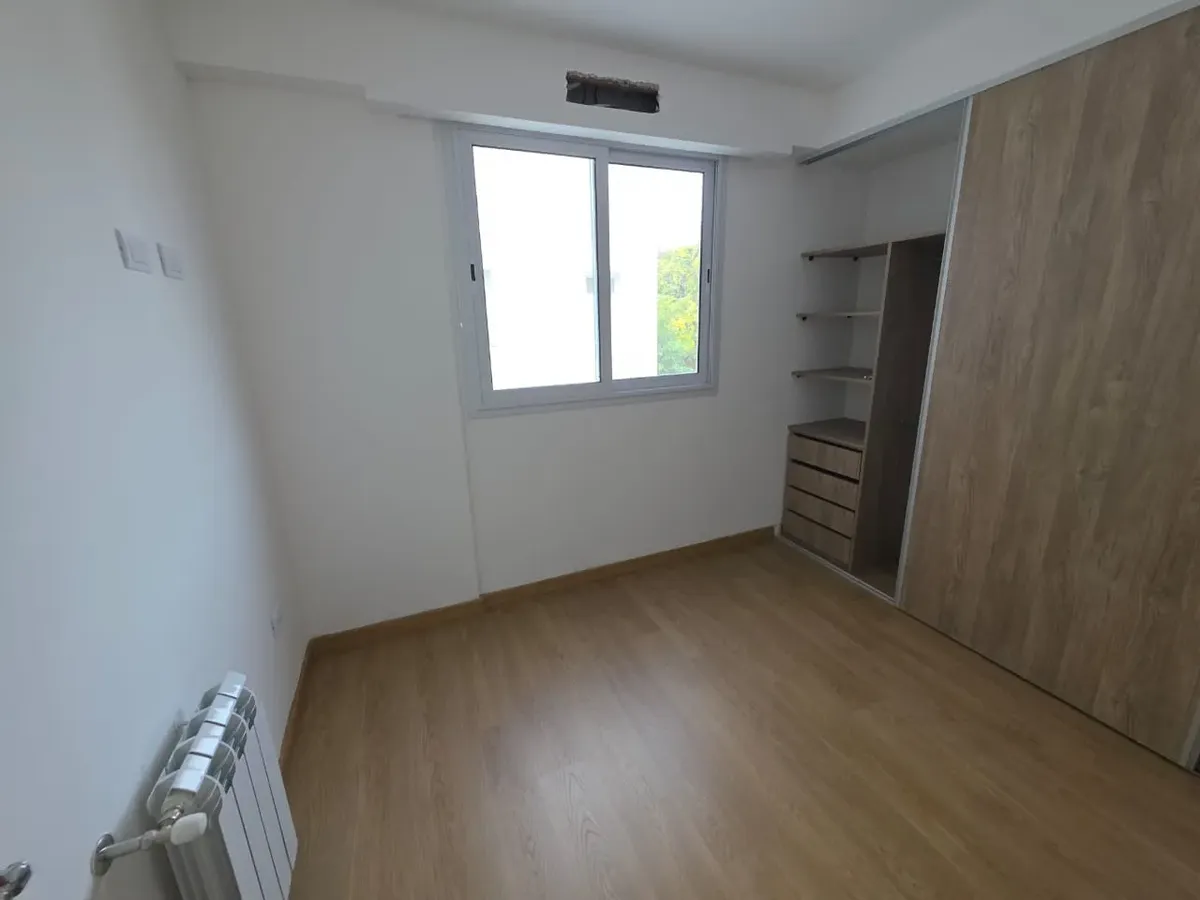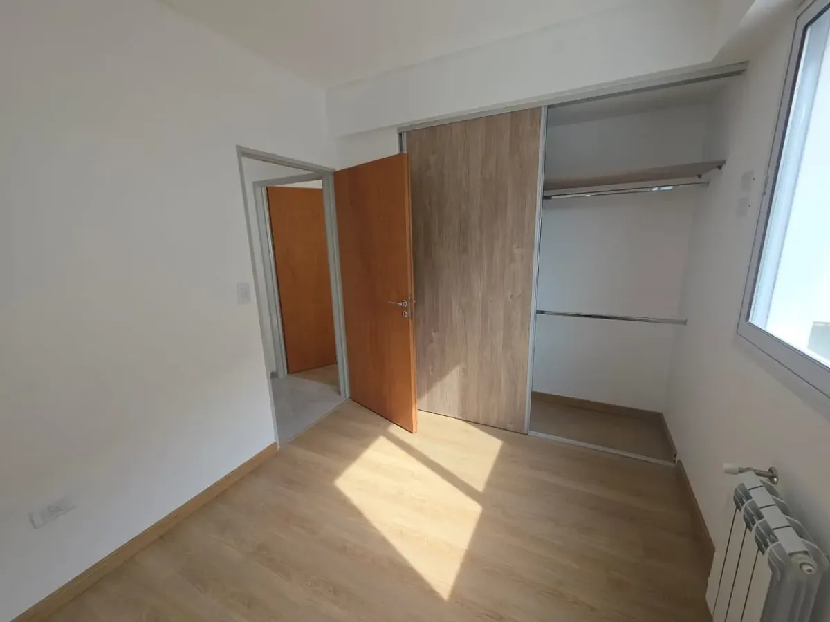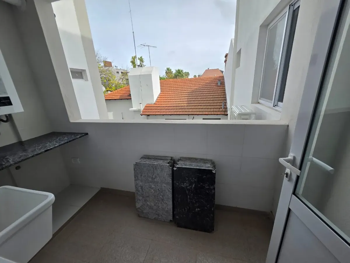 Новая квартира в Villa Devoto в 5 кварталах от Plaza, с окнами на улицу. Площадь в описании не указана. В квартире 3 спальни с встроенными шкафами; главная спальня — с ванной комнатой и гардеробной. Есть отдельная обеденная кухня с мебелью, кондиционер (холод/тепло) в каждой спальне, балкон в зоне living comedor. Отопление радиаторами от котла, есть крытая прачечная после кухни. В цену не указаны коммунальные платежи здания; их размер уточняется по мере заселения. Договор на 2 года, обновление р