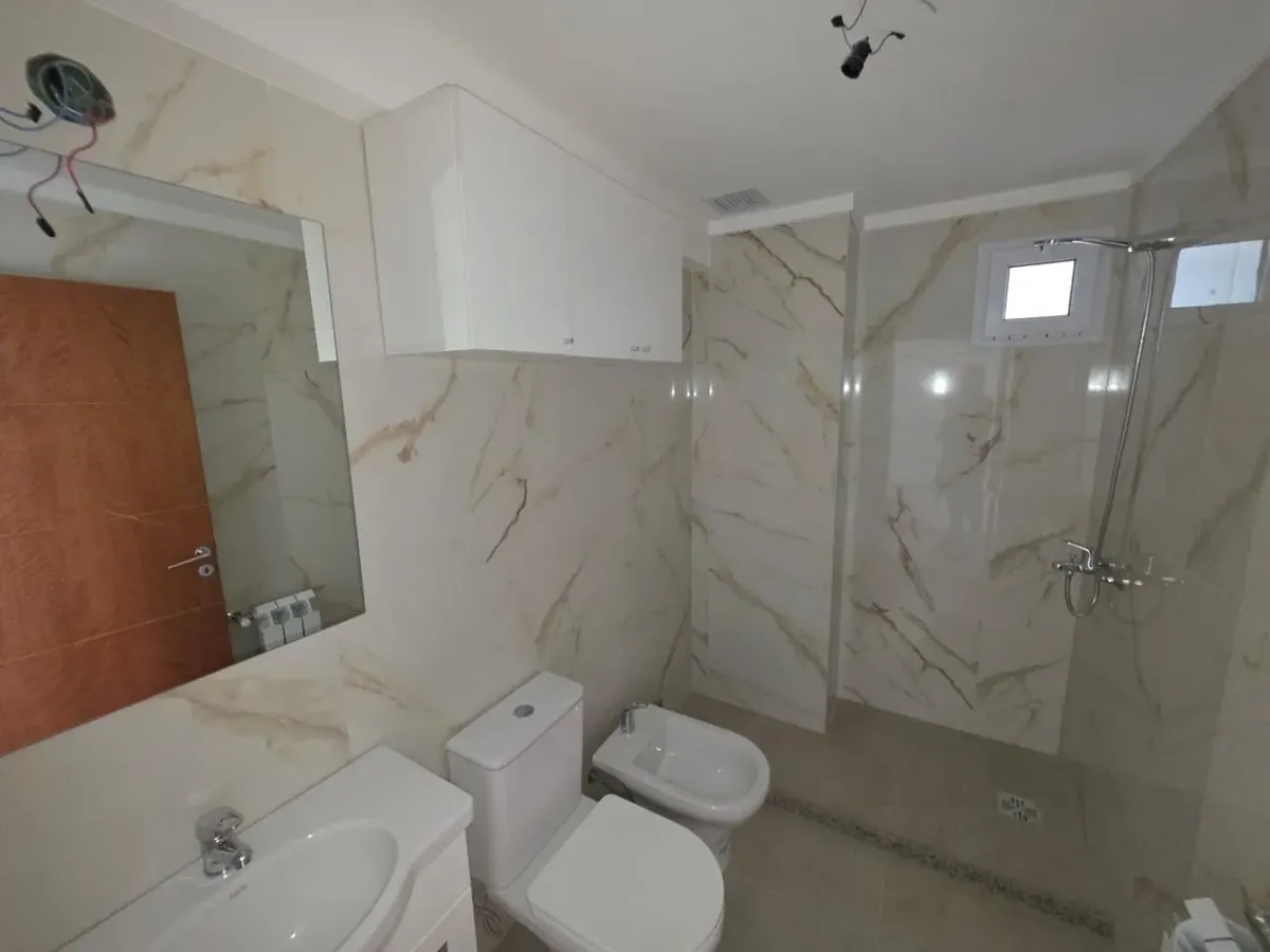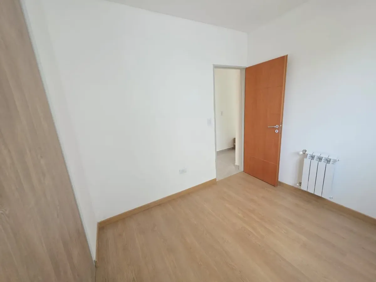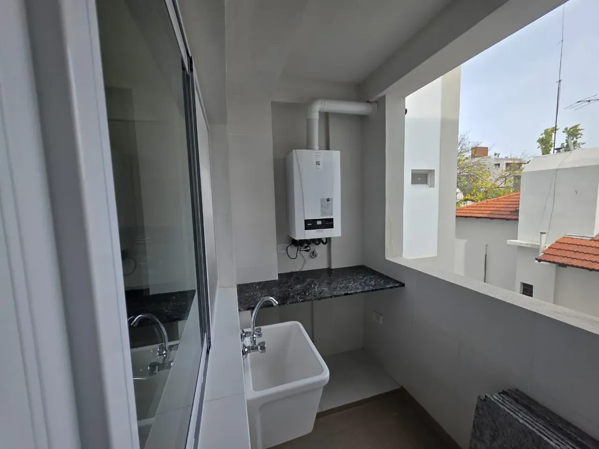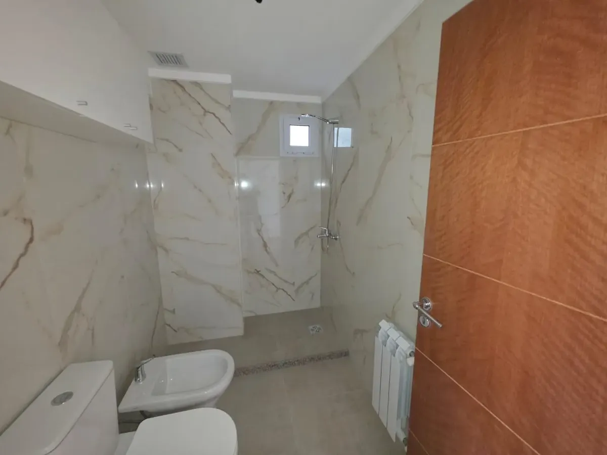 Новая квартира в Villa Devoto в 5 кварталах от Plaza, с окнами на улицу. Площадь в описании не указана. В квартире 3 спальни с встроенными шкафами; главная спальня — с ванной комнатой и гардеробной. Есть отдельная обеденная кухня с мебелью, кондиционер (холод/тепло) в каждой спальне, балкон в зоне living comedor. Отопление радиаторами от котла, есть крытая прачечная после кухни. В цену не указаны коммунальные платежи здания; их размер уточняется по мере заселения. Договор на 2 года, обновление р