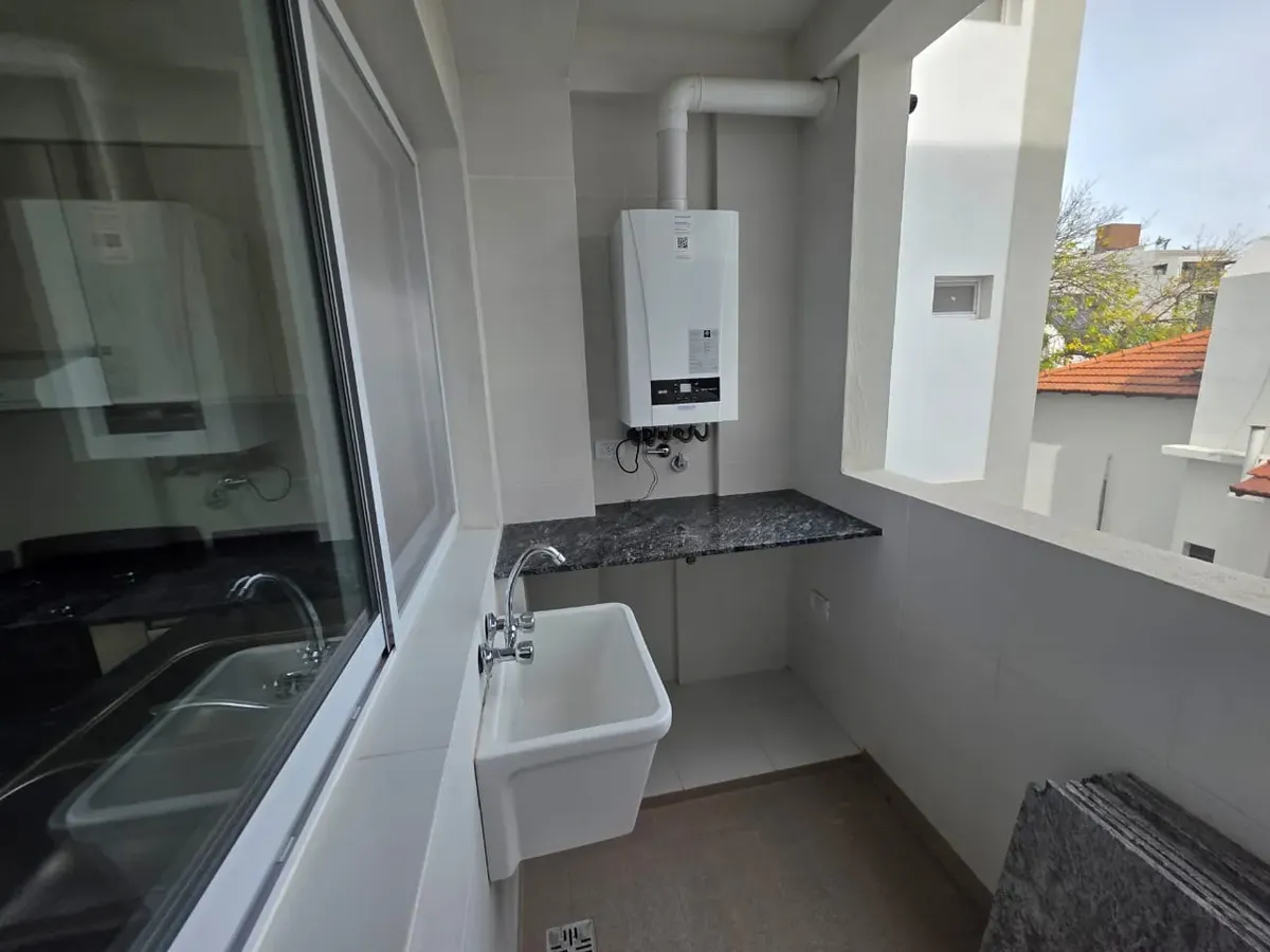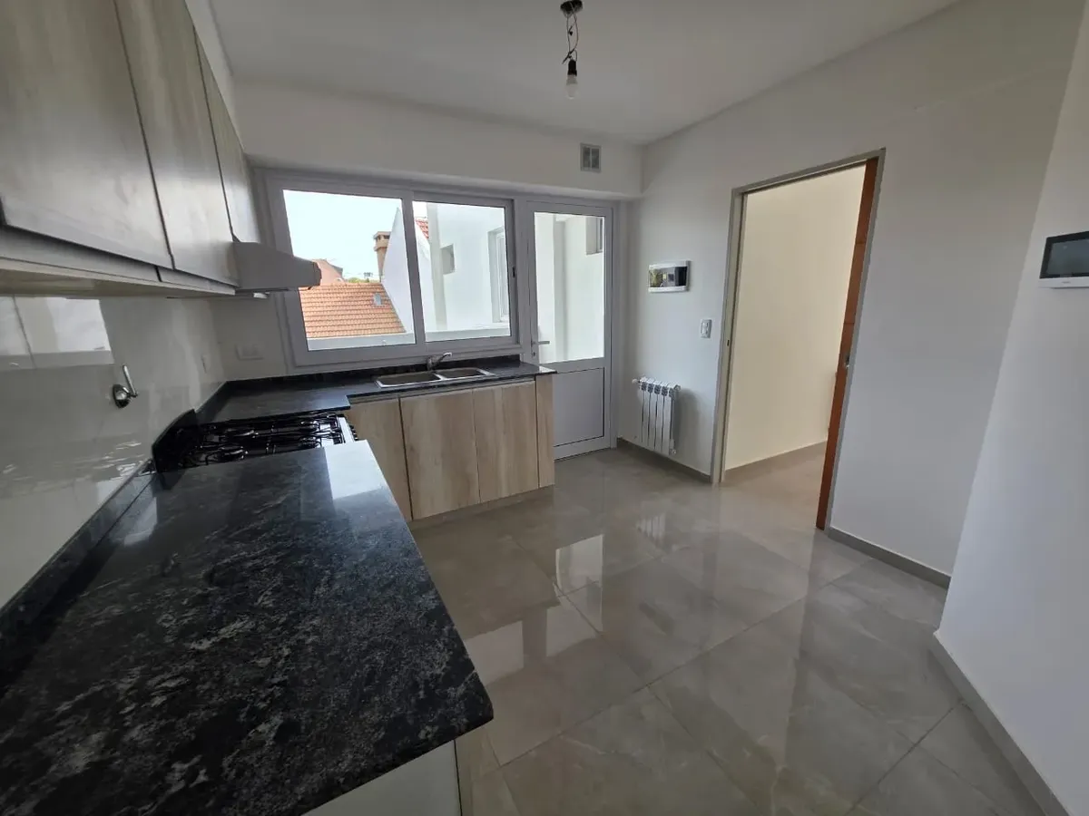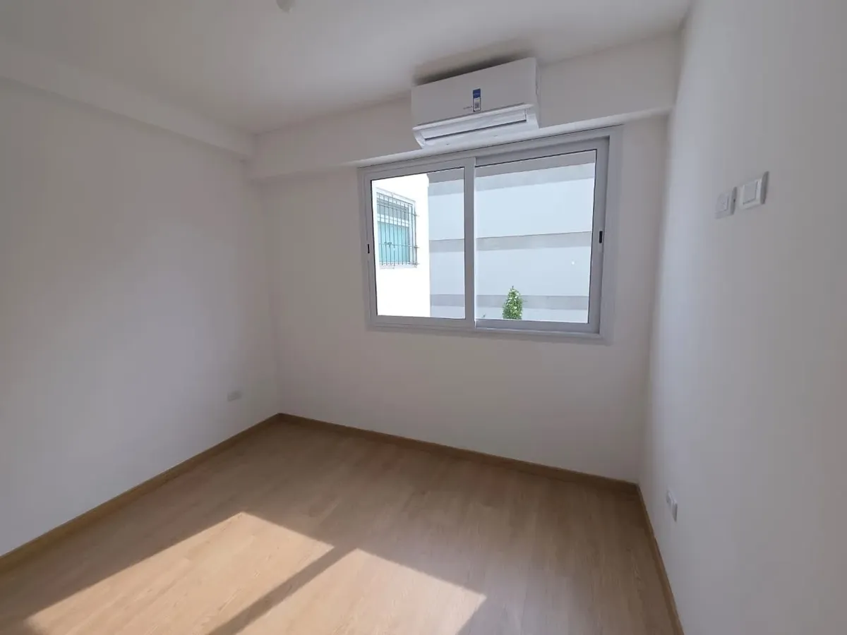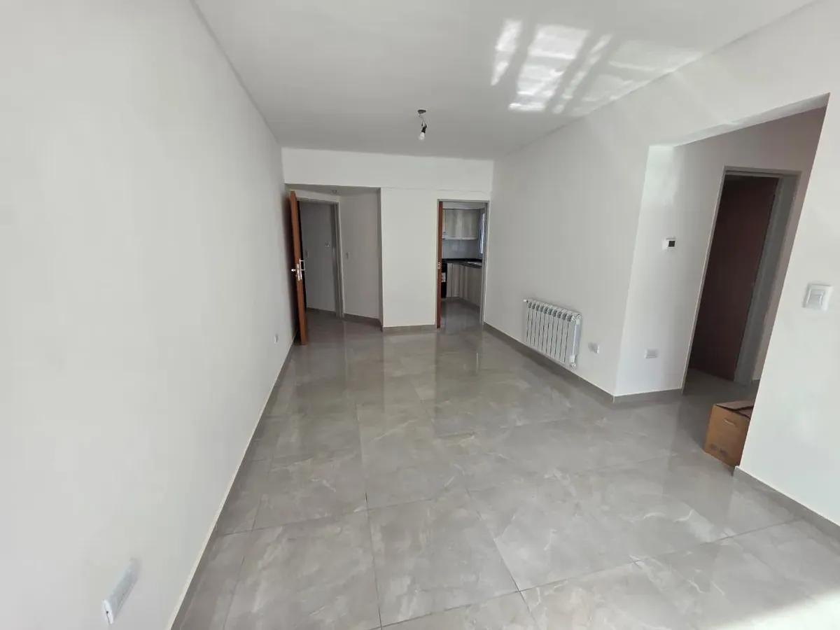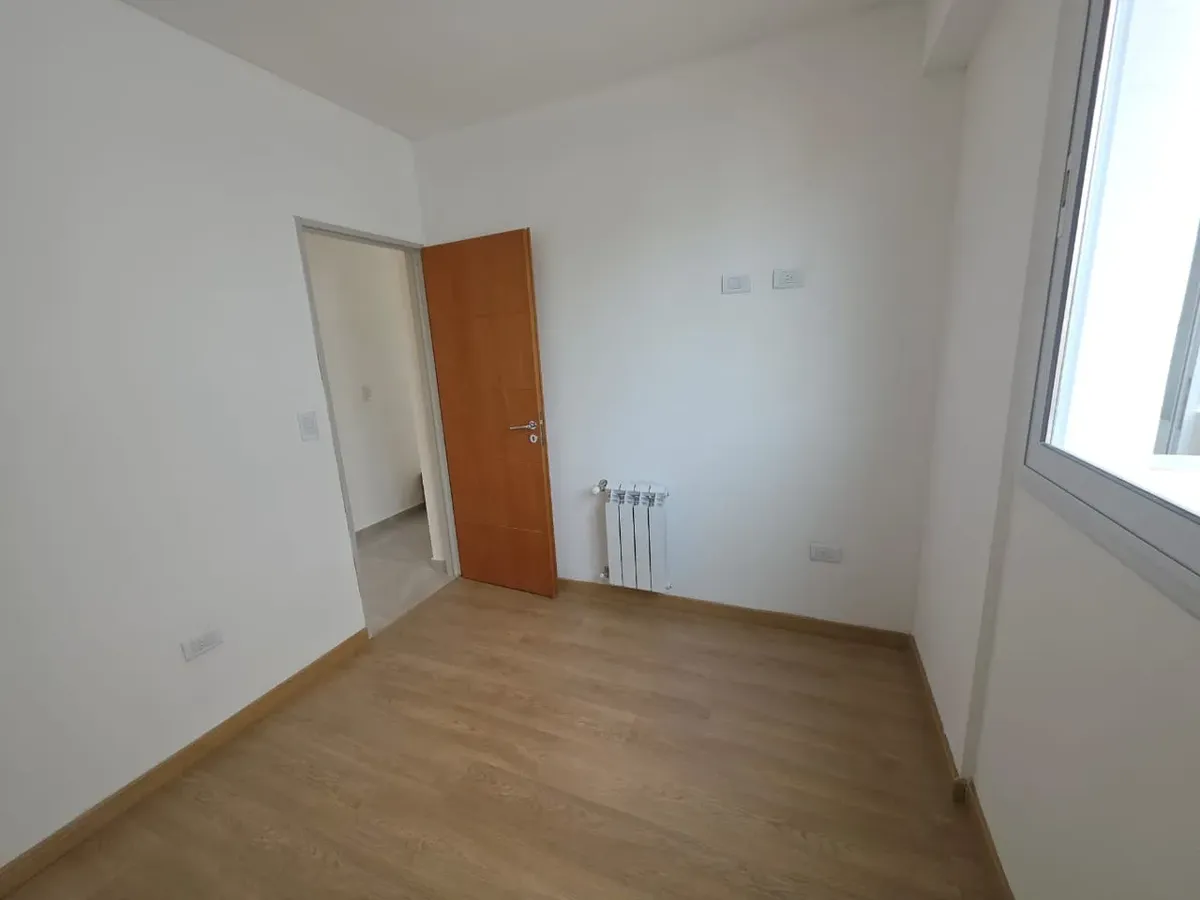 Новая квартира в Villa Devoto в 5 кварталах от Plaza, с окнами на улицу. Площадь в описании не указана. В квартире 3 спальни с встроенными шкафами; главная спальня — с ванной комнатой и гардеробной. Есть отдельная обеденная кухня с мебелью, кондиционер (холод/тепло) в каждой спальне, балкон в зоне living comedor. Отопление радиаторами от котла, есть крытая прачечная после кухни. В цену не указаны коммунальные платежи здания; их размер уточняется по мере заселения. Договор на 2 года, обновление р