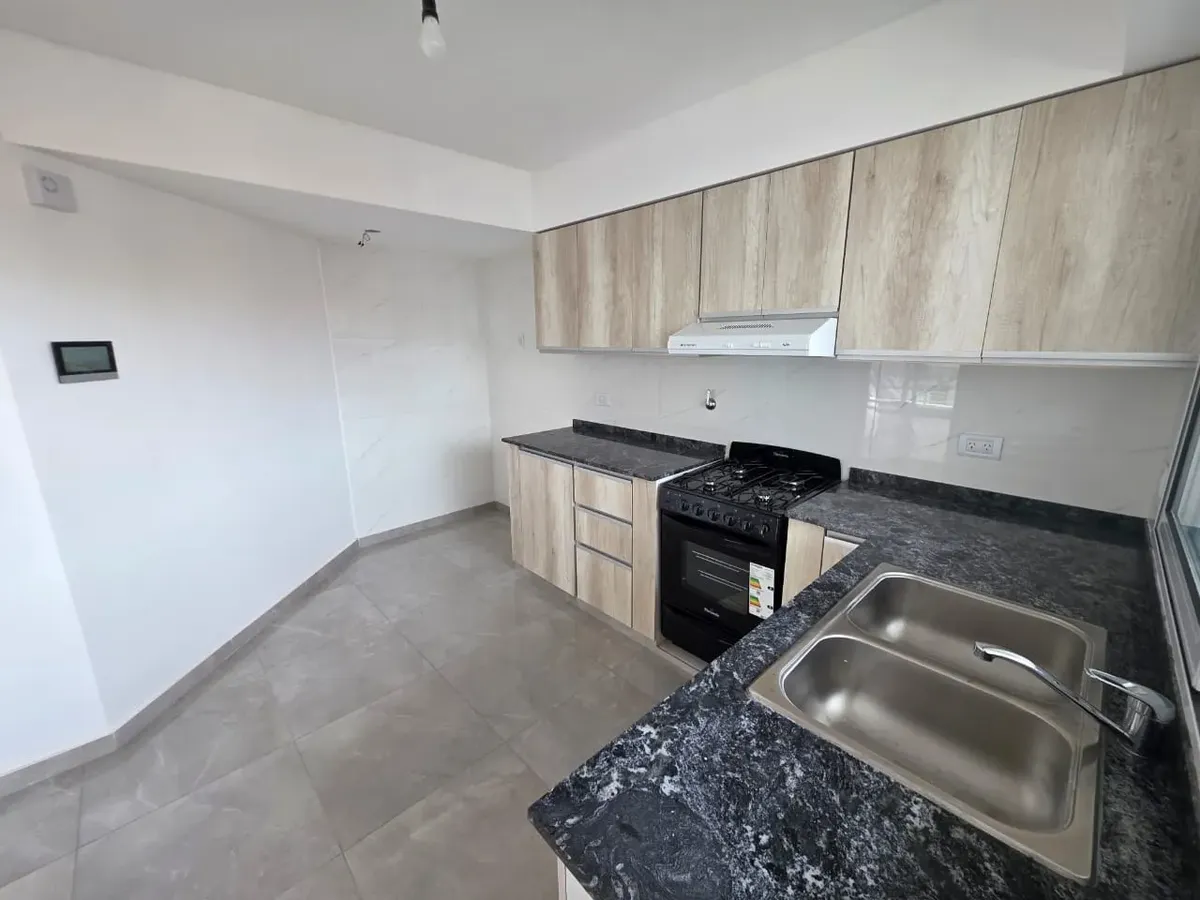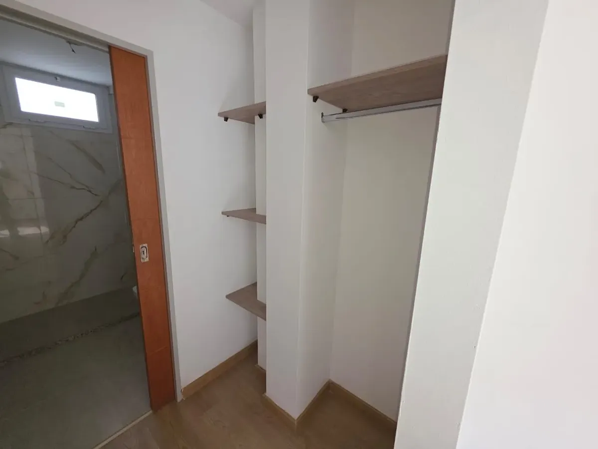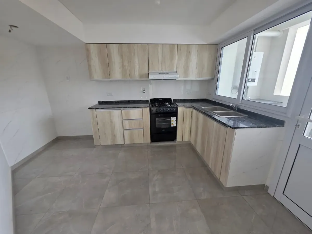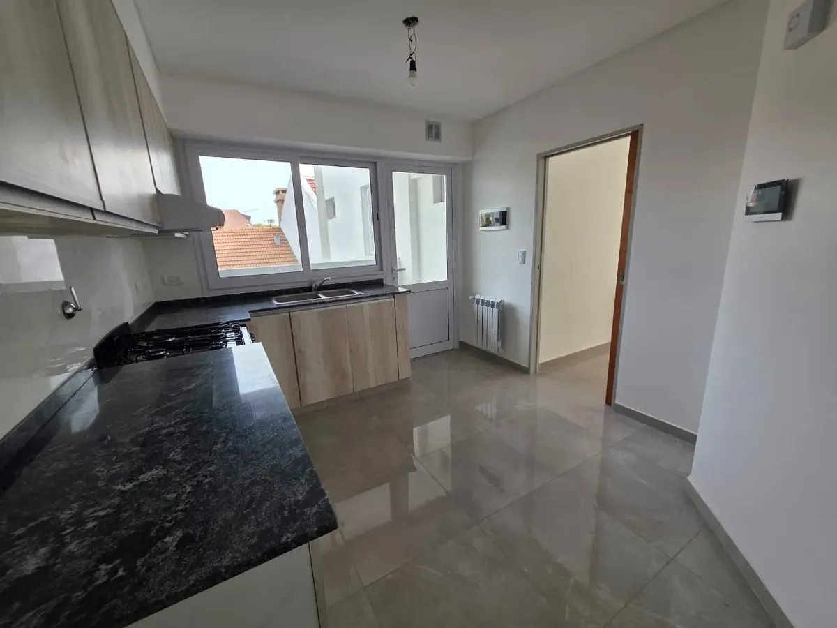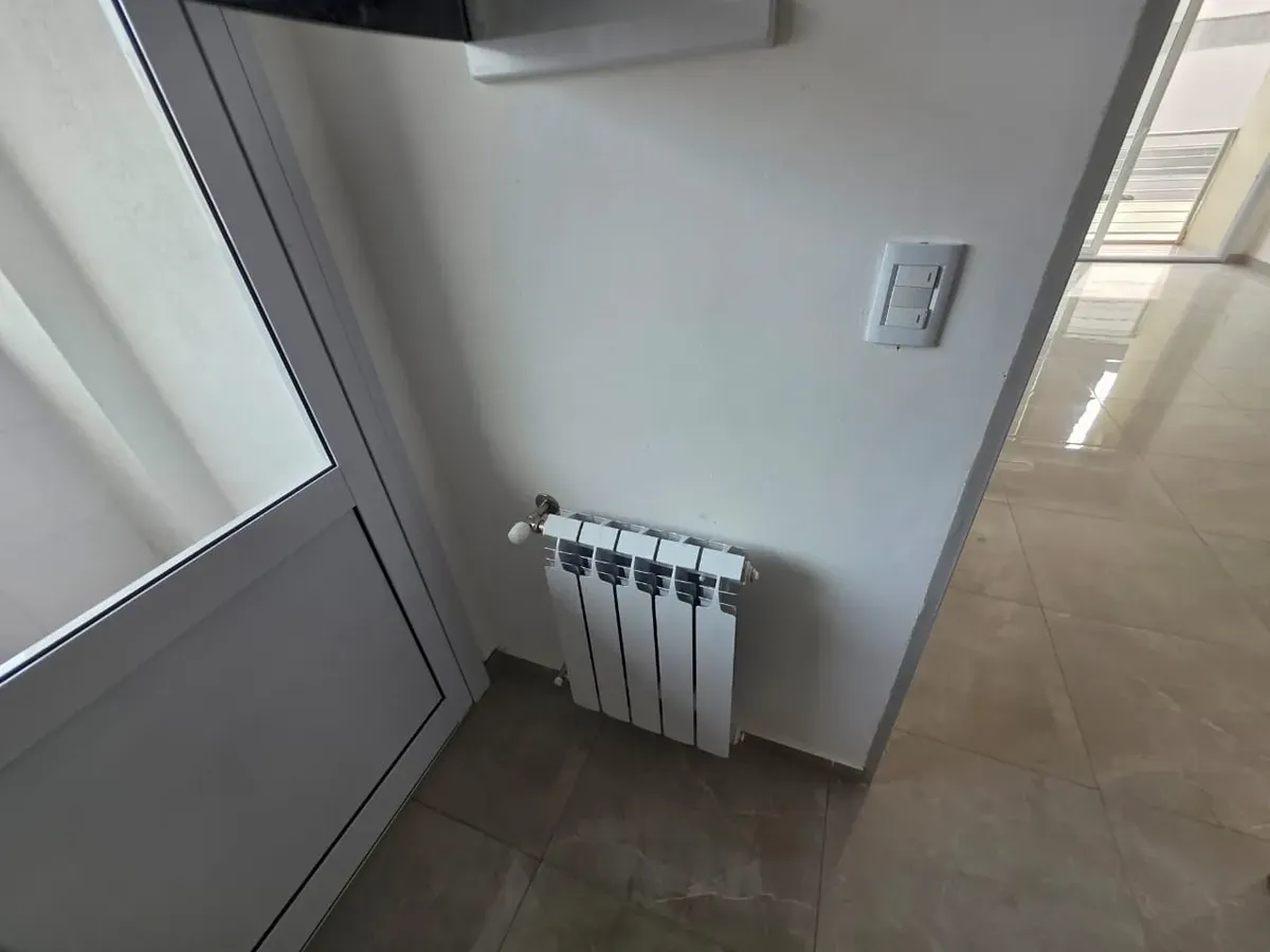Новая квартира в Villa Devoto в 5 кварталах от Plaza, с окнами на улицу. Площадь в описании не указана. В квартире 3 спальни с встроенными шкафами; главная спальня — с ванной комнатой и гардеробной. Есть отдельная обеденная кухня с мебелью, кондиционер (холод/тепло) в каждой спальне, балкон в зоне living comedor. Отопление радиаторами от котла, есть крытая прачечная после кухни. В цену не указаны коммунальные платежи здания; их размер уточняется по мере заселения. Договор на 2 года, обновление р