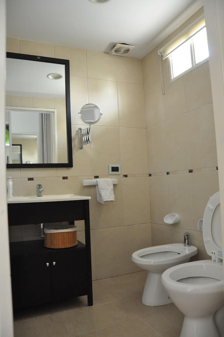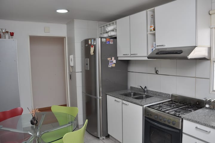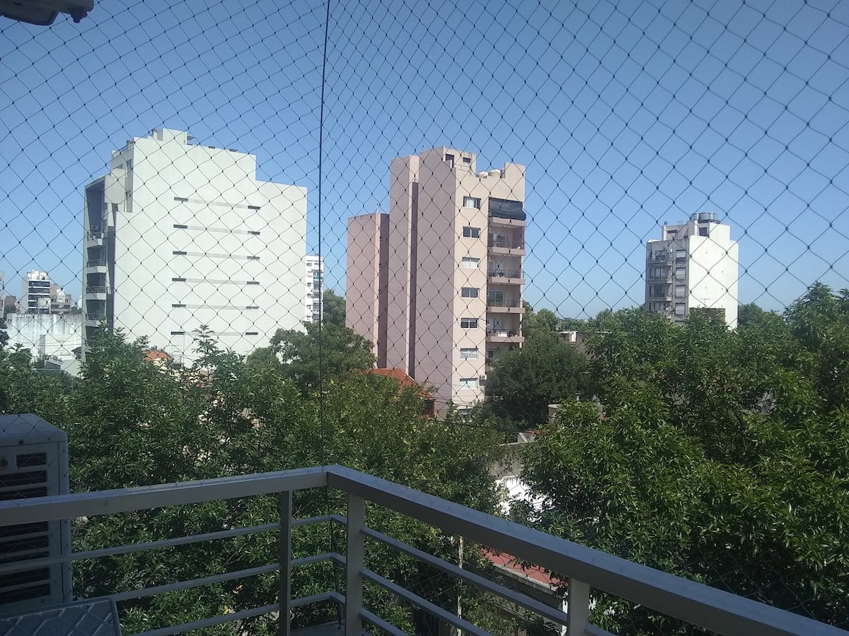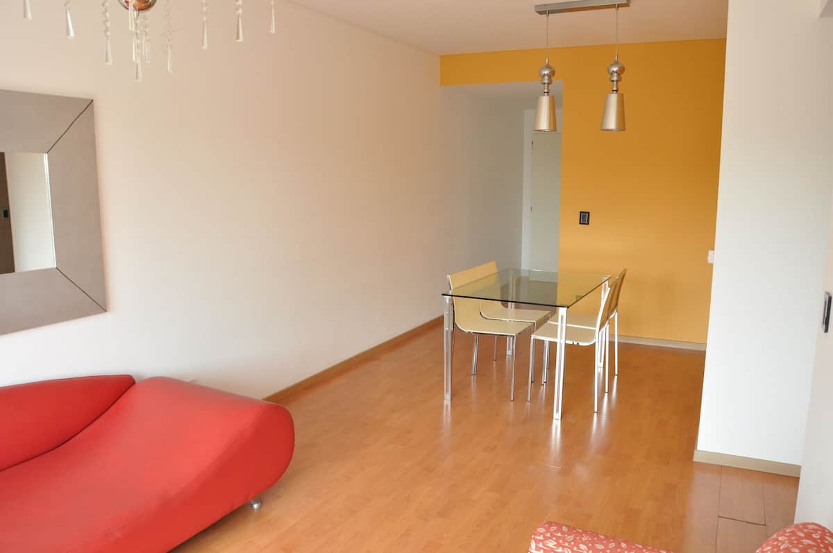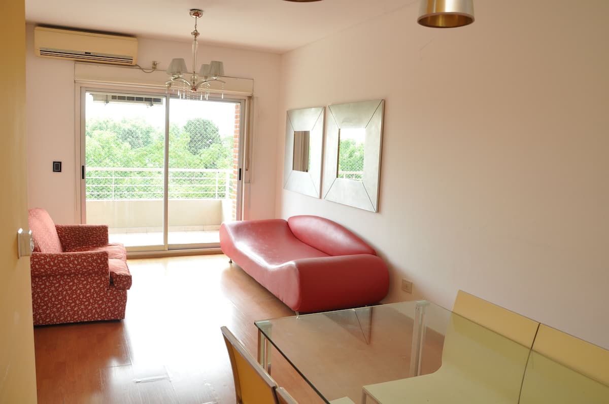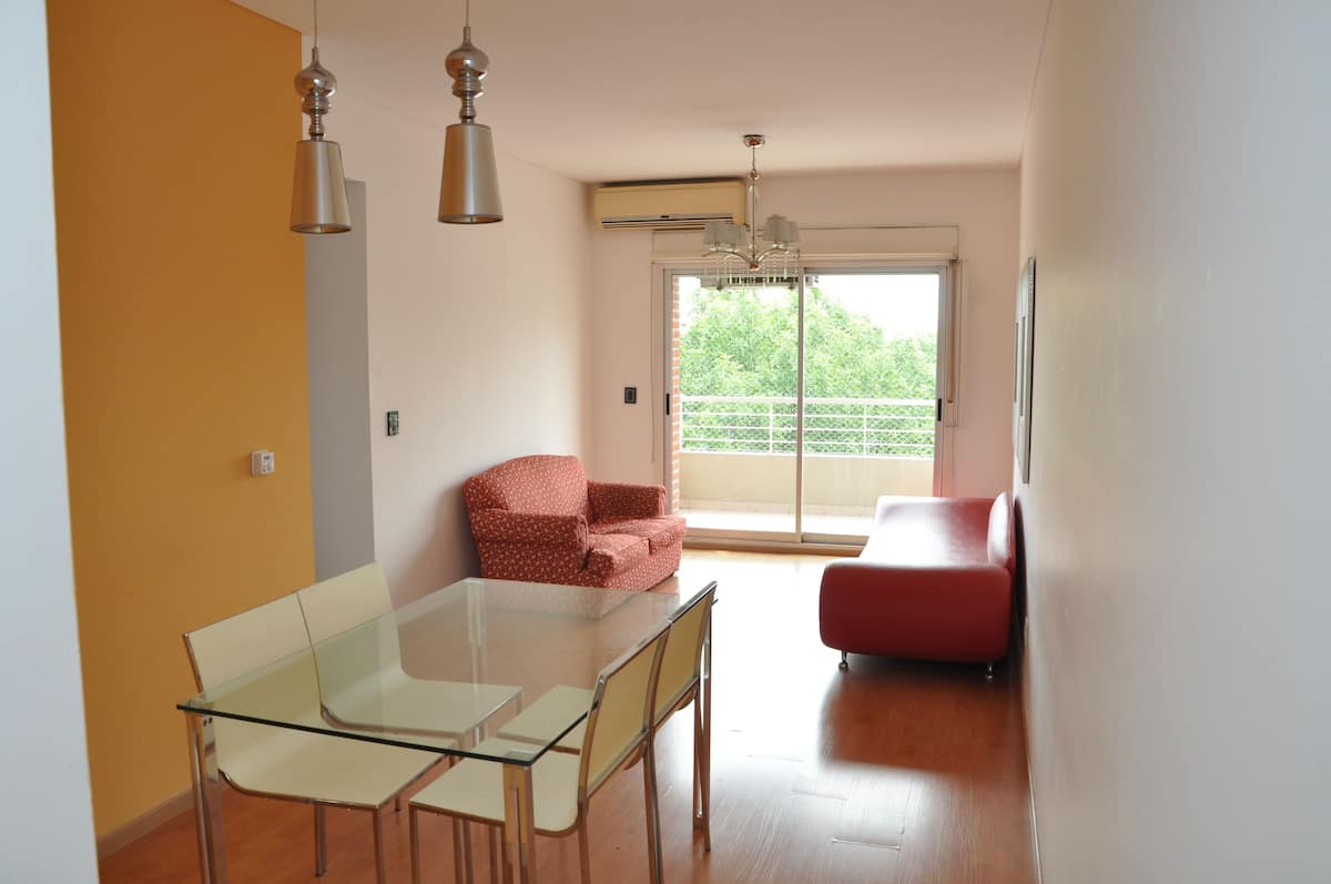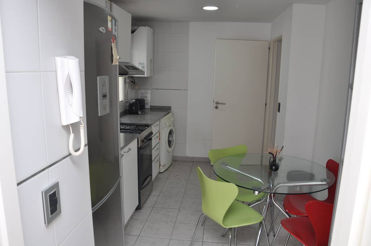 Квартира площадью 120 m² в Villa Pueyrredón, 5 комнат на время пребывания. В планировке: гостиная с выходом на балкон, кухня с двойным входом, спальня с двуспальной кроватью и ванной комнатой, спальня с двумя кроватями и спальня с односпальной кроватью, а также ещё одна ванная комната. В квартире предусмотрены регулируемый радиантный обогрев и стиральная машина для индивидуального пользования. Въезд и выезд гибкие; при заезде и выезде в интервале 22:00–06:00 взимается дополнительная плата. Вход
