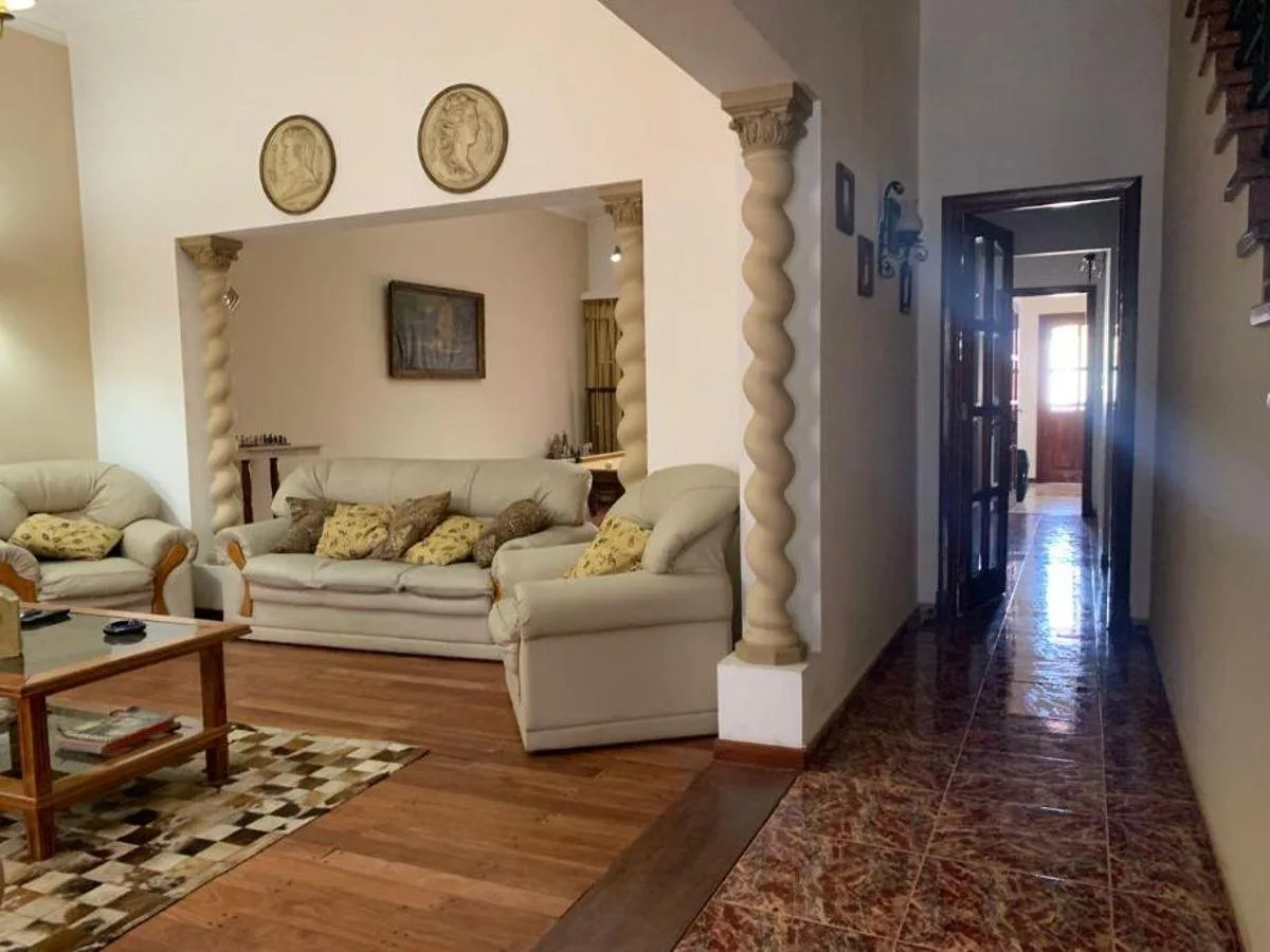 Дом на 2 уровня на Av. Mitre с передним садом. На первом этаже: (закреплённое) парковочное место на 2 авто (garage pasante), большая гостиная с окнами на улицу, игровая комната, оборудованная кухня-столовая, ванная комната, спальня на первом этаже с видом во внутренний двор, зимний сад, двор с бассейном, крытая прачечная и служебный санузел. На втором уровне: распределительный холл, 3 спальни с деревянным покрытием пола и встроенными шкафами (в одном из них предусмотрена гардеробная), а также зо