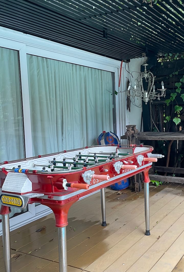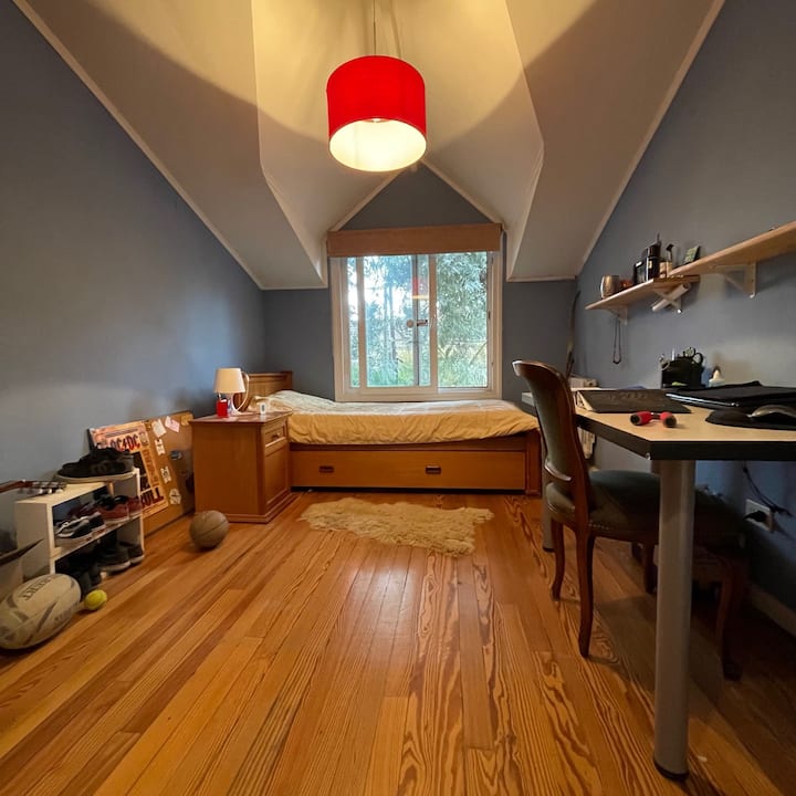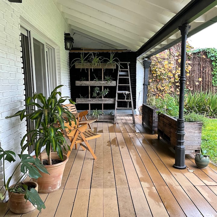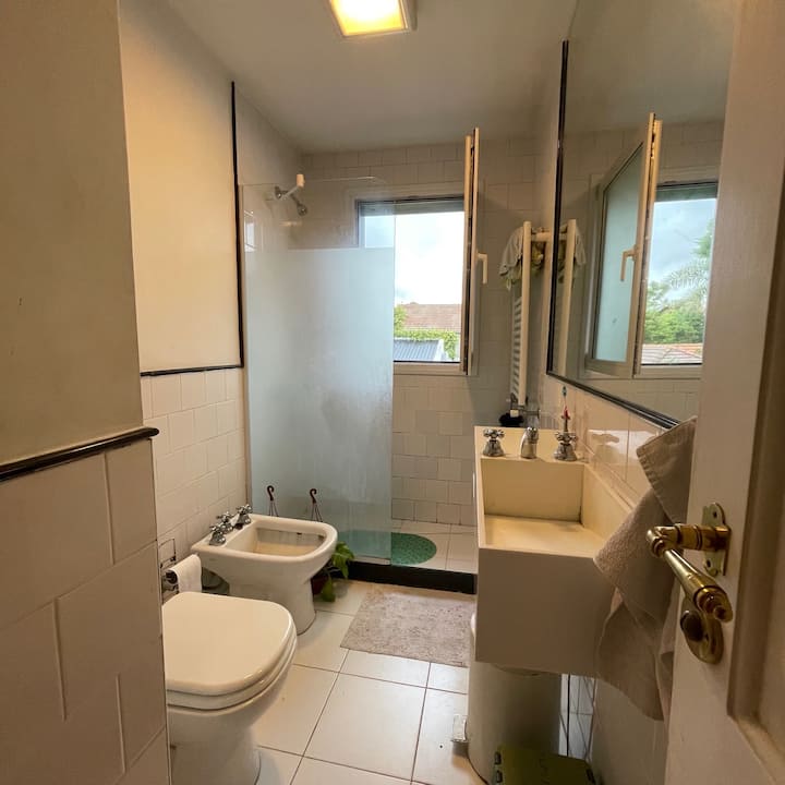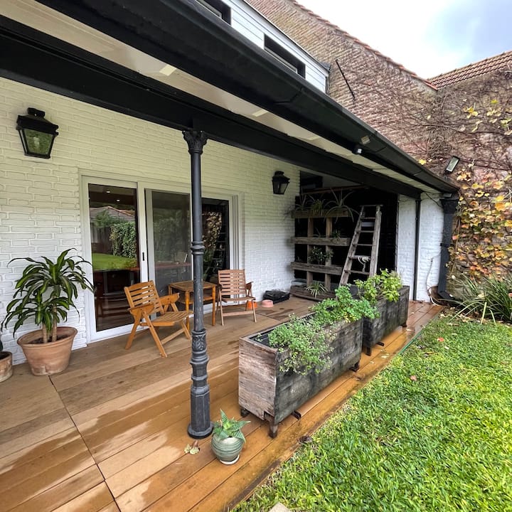 Квартира с 4 спальнями в Beccar, 2 уровня. Планировка включает гостиную, столовую, зону рабочего кабинета и библиотеку; комнаты сообщаются, кухня объединена с общей зоной. Окна со стеклопакетами, предусмотрено центральное отопление от электрического котла и радиаторы водяного отопления. В комплексе есть 2 санузла, один из них — в спальне с ванной комнатой, а также кондиционер в отдельной комнате; есть потолочные вентиляторы и система хранения с гардеробной. На территории предусмотрены сад, 2 кры