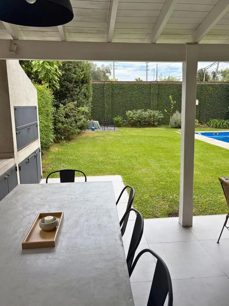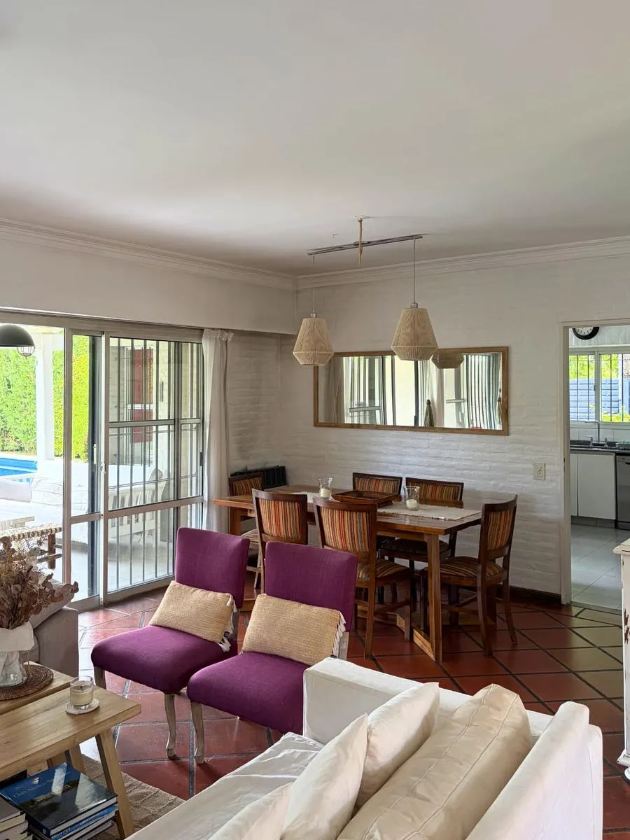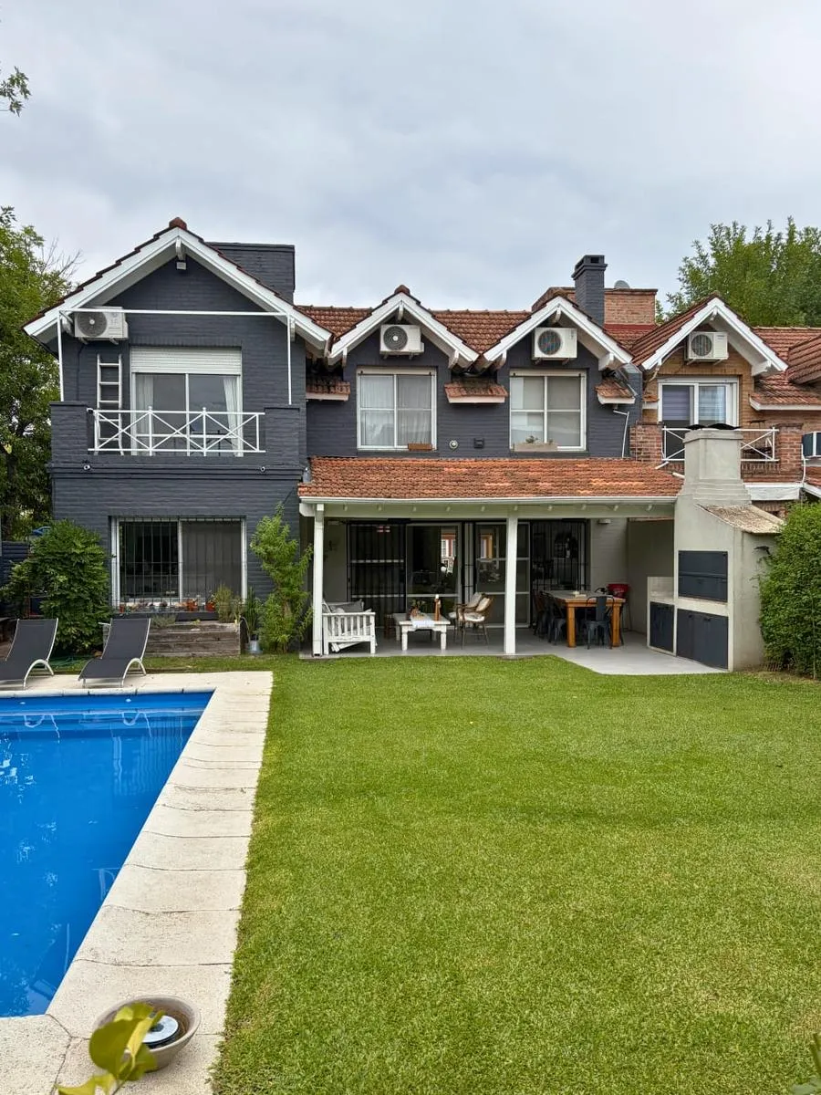 Дом в barrio El Portal в Beccar. Гостиная с обеденной зоной имеет выход в галерею и камин. В доме туалет, кухня с обеденной зоной, прачечная и помещения для обслуживающего персонала. Главная suite с ванной и встроенными шкафами; ещё 3 спальни с отдельной ванной. Есть сад с бассейном.