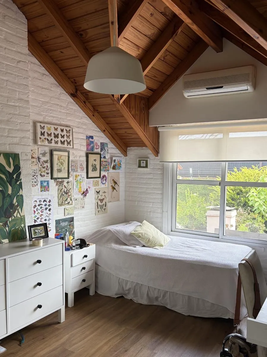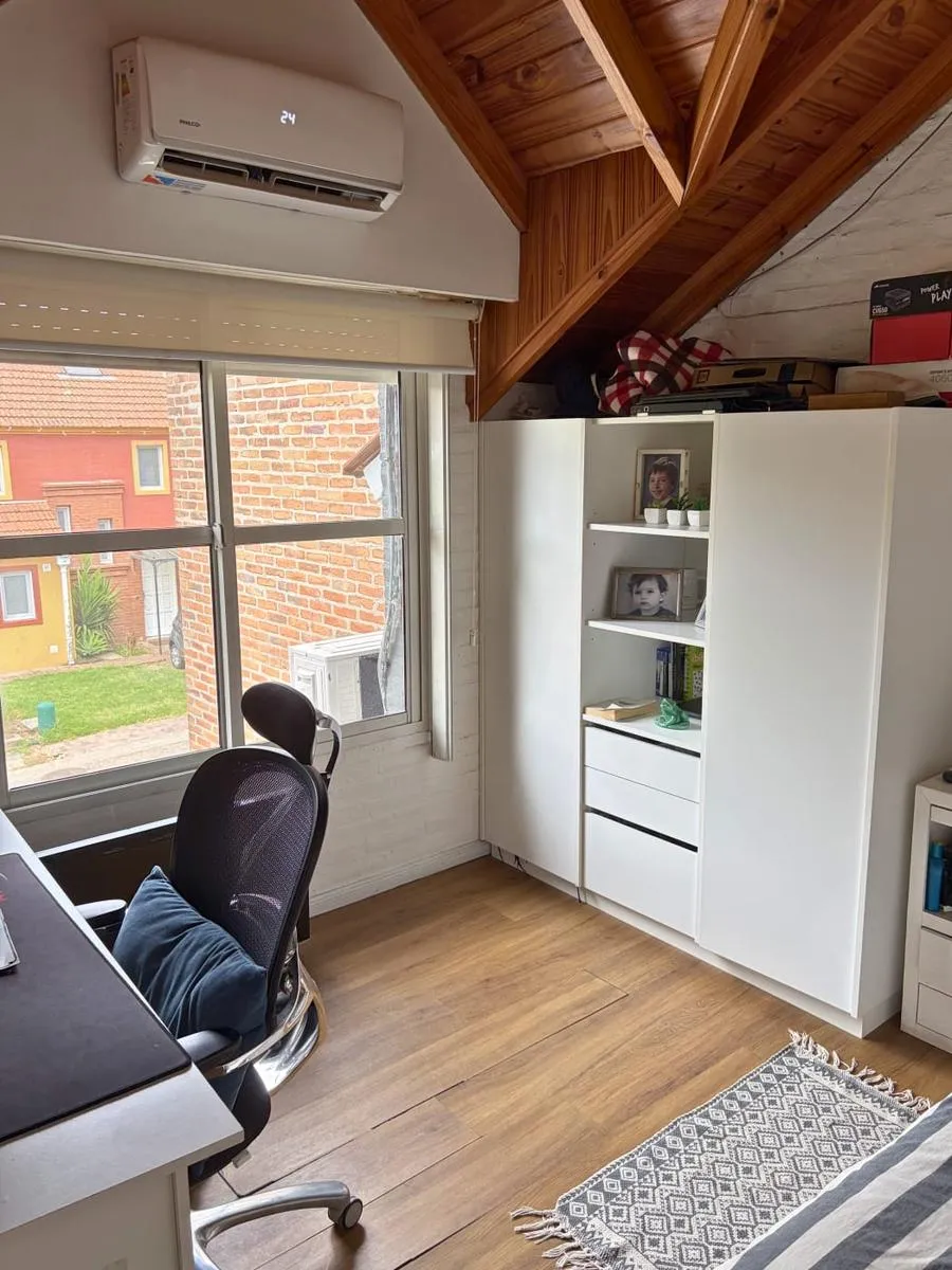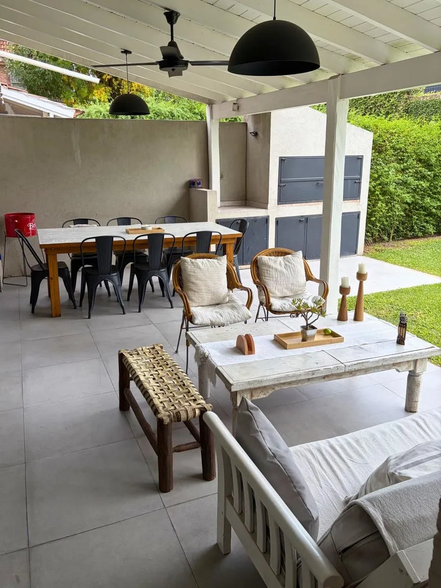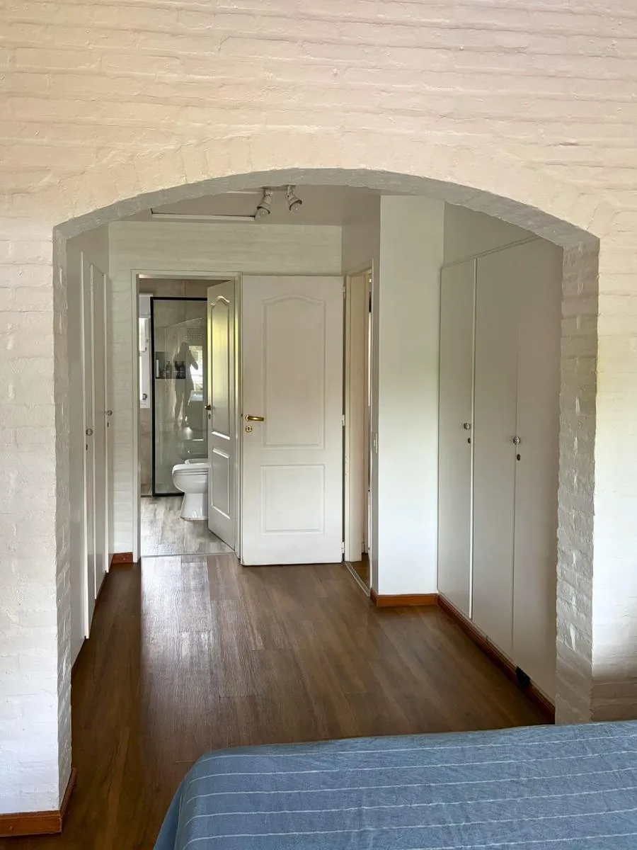 Дом в barrio El Portal в Beccar. Гостиная с обеденной зоной имеет выход в галерею и камин. В доме туалет, кухня с обеденной зоной, прачечная и помещения для обслуживающего персонала. Главная suite с ванной и встроенными шкафами; ещё 3 спальни с отдельной ванной. Есть сад с бассейном.