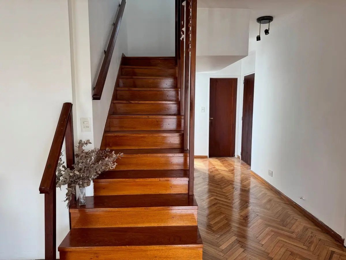 Двухуровневая квартира в Belgrano, расположена на улице Ciudad de la Paz, рядом с Av. Cabildo и Av. Juramento. Первый уровень включает большую гостиную-столовую с выходом на длинный балкон, гостевой туалет, спальню или кабинет под лестницей, а также кухню с местом для хранения и зоной для ежедневных приемов пищи. Второй уровень: 3 спальни и 1 полностью оборудованная ванная комната. Отопление осуществляется через газовый камин-печь и кондиционеры, горячая вода через водонагреватель типа calefón.
