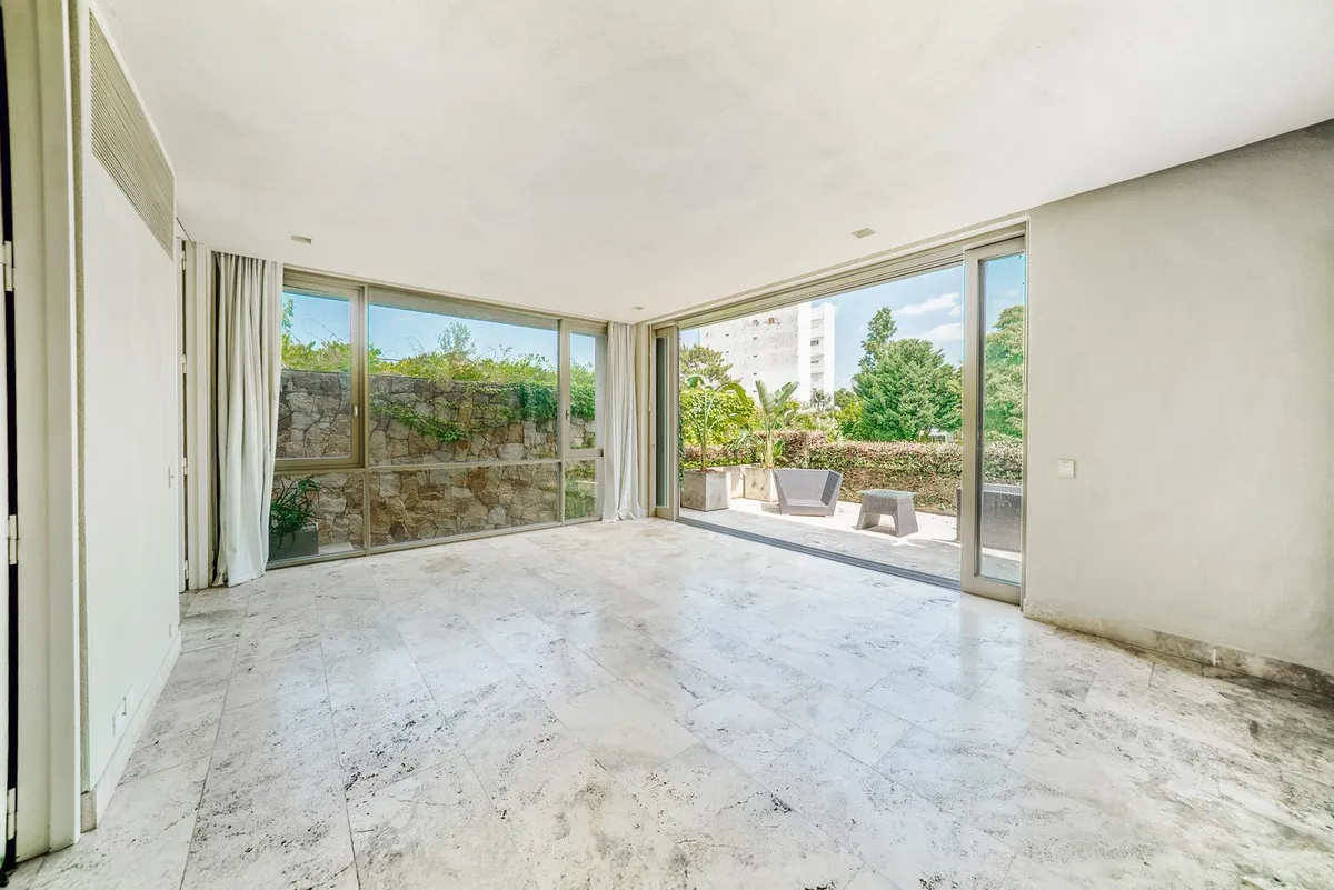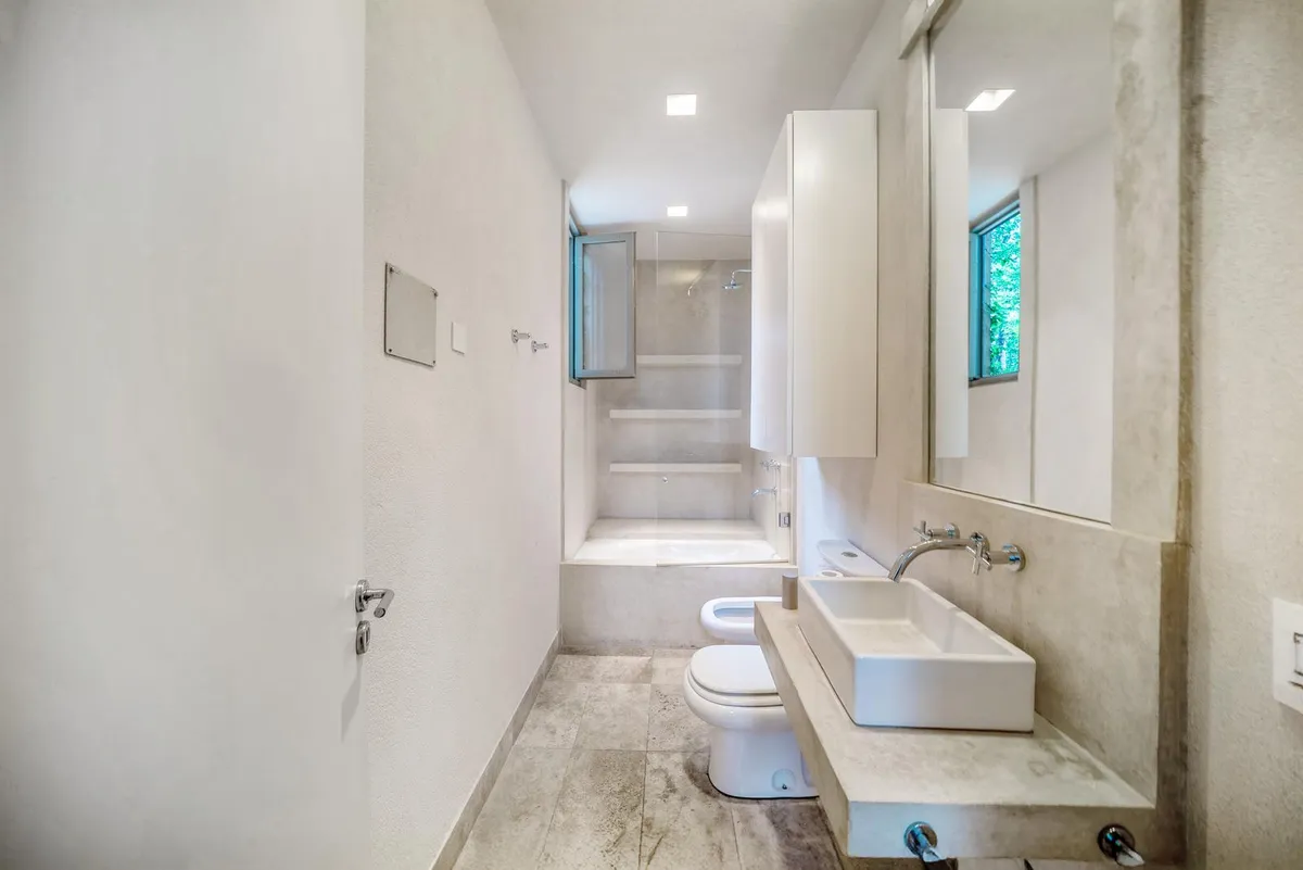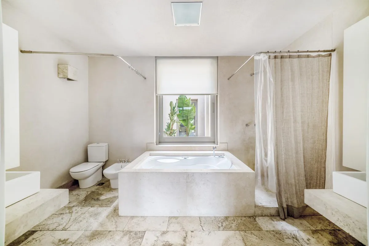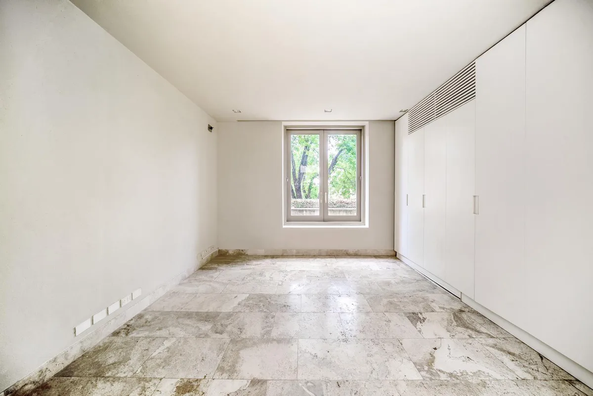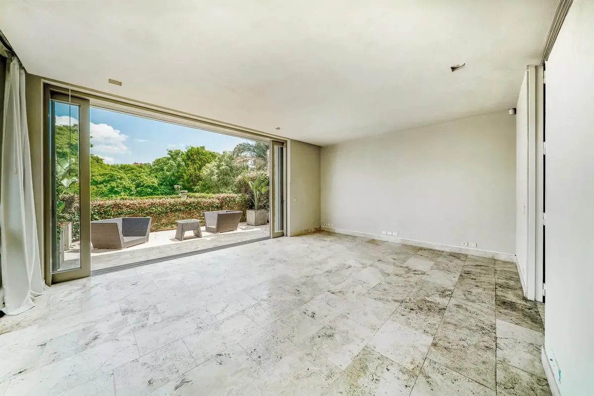 Квартира в формате casa (3 уровня) в Belgrano: 4 спальни, 5 ванных комнат и гостевой санузел, общая площадь 735 m² (507 m² крытых и 227 m² открытых). Ориентация на север. На первом этаже предусмотрено место для 2 автомобилей, входной холл и туалет, большая гостиная-столовая с камином и окнами в сторону сада и бассейна, отдельная столовая и кухня с островом; также есть прямой доступ к винному погребу в цокольном уровне, крытая галерея, озеленённый сад, отапливаемый бассейн и зона гриля. На втором