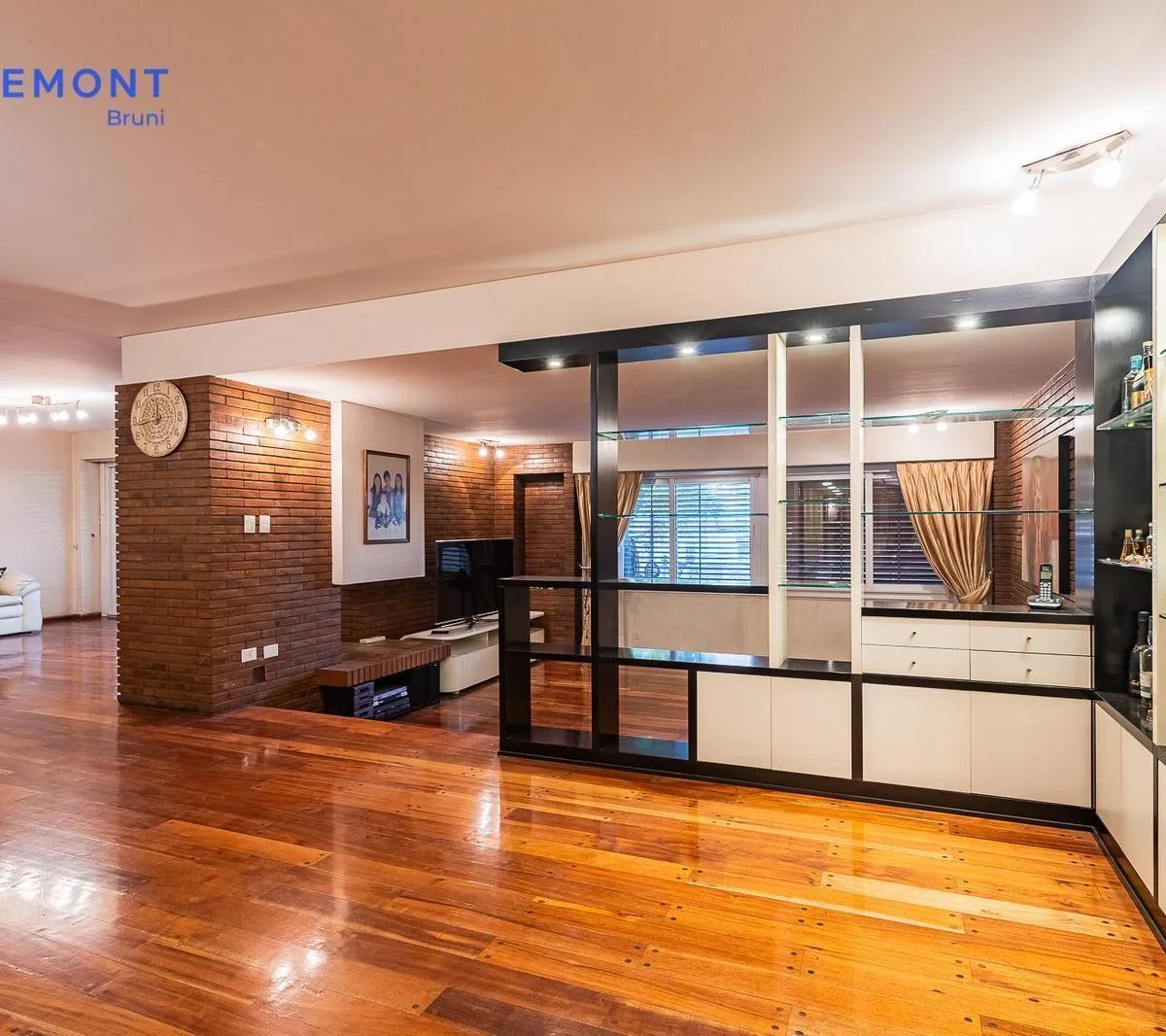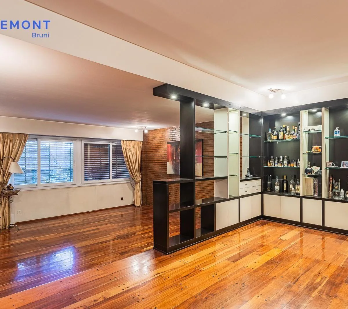 Квартира площадью 283 m² в Caballito, с 4 спальнями и общей планировкой на 6 комнат. Включает просторную гостиную и столовую, гостевой туалет с гардеробом, отдельную кухню-столовую и основную спальню с гардеробной и выходом на балкон на двор (balcón del contrafrente). Ещё 3 спальни с гардеробом, полноценная ванная, зона playroom, отдельная прачечная и служебная комната. Есть гидромассаж и сауна, кондиционирование во всех помещениях, окна с жалюзи. Балконы выходят на улицу и во внутренний двор кв