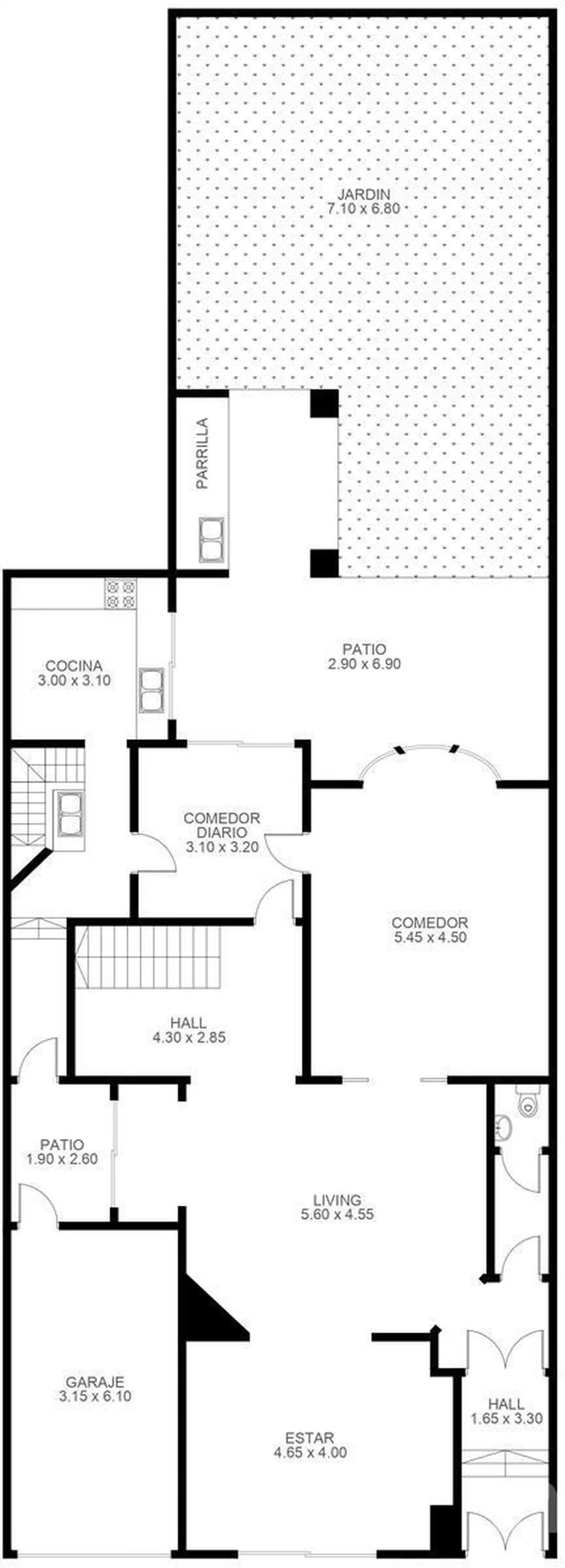 Дом в стиле Tudor в Caballito, построенный фирмами Petersen, Thiele y Cruz. Полы из дуба, pinotea и гранитных мозаик, с витражами, лепниной и оригинальными столярными элементами. Центральное отопление с котлом и бойлерами; частично после ремонта (санузлы, кухня и спальни). На первом этаже: приёмный холл, гостиная, столовая, зона с камином, гостевой туалет, кухня с обеденной зоной, галерея, сад с зоной гриля и барбекю, гараж, служебный вход и подвал. На втором: приватная зона, 4 спальни со встрое